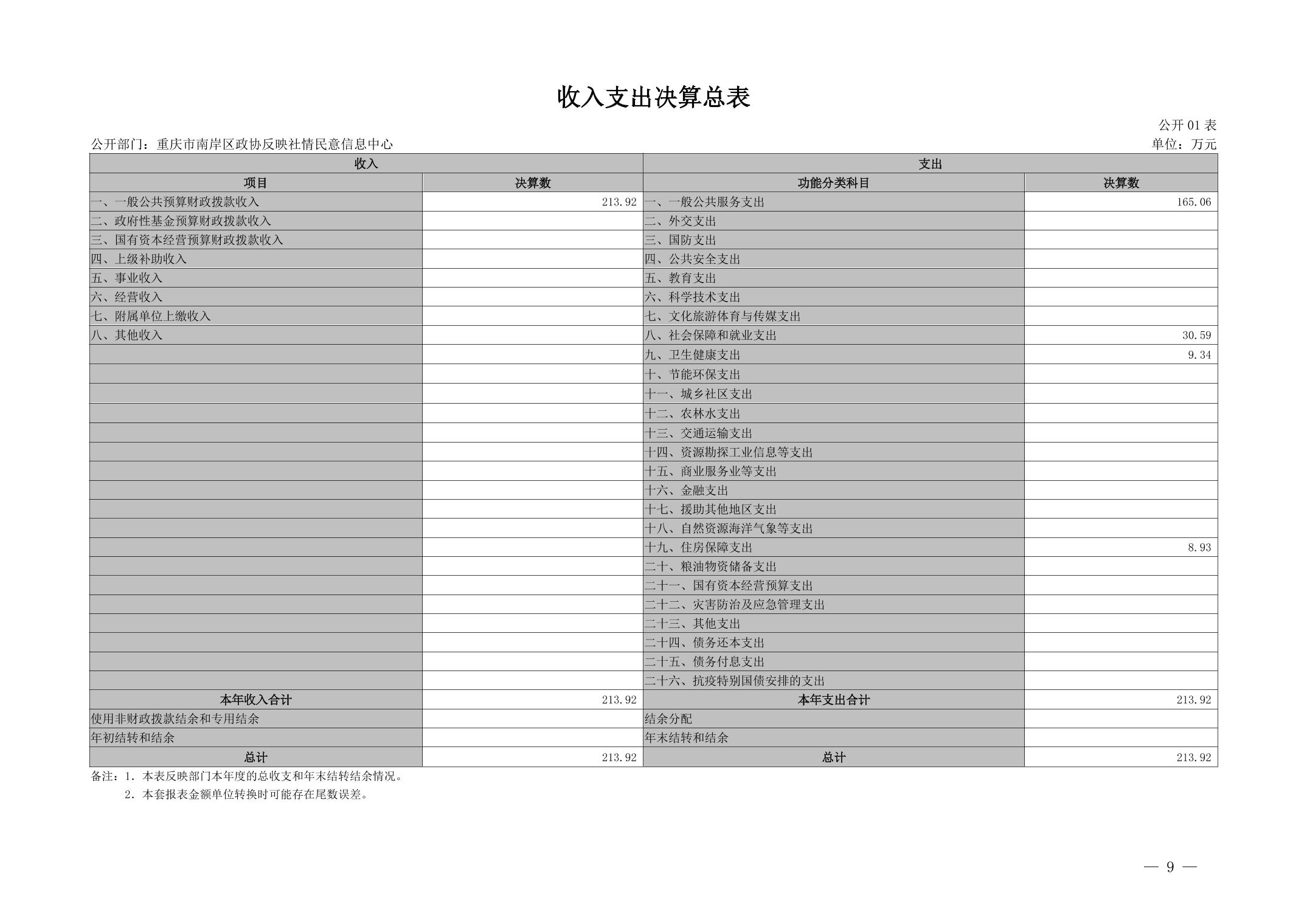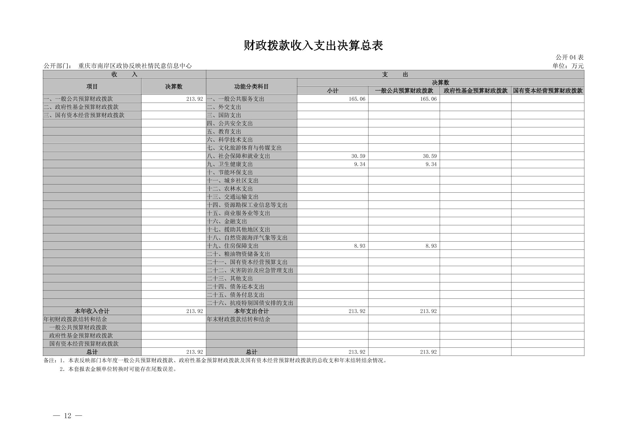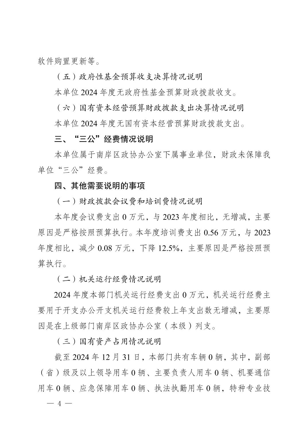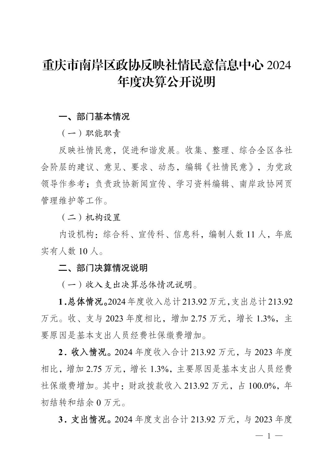 重庆市南岸区政协反映社情民意信息中心2024年度决算公开说明