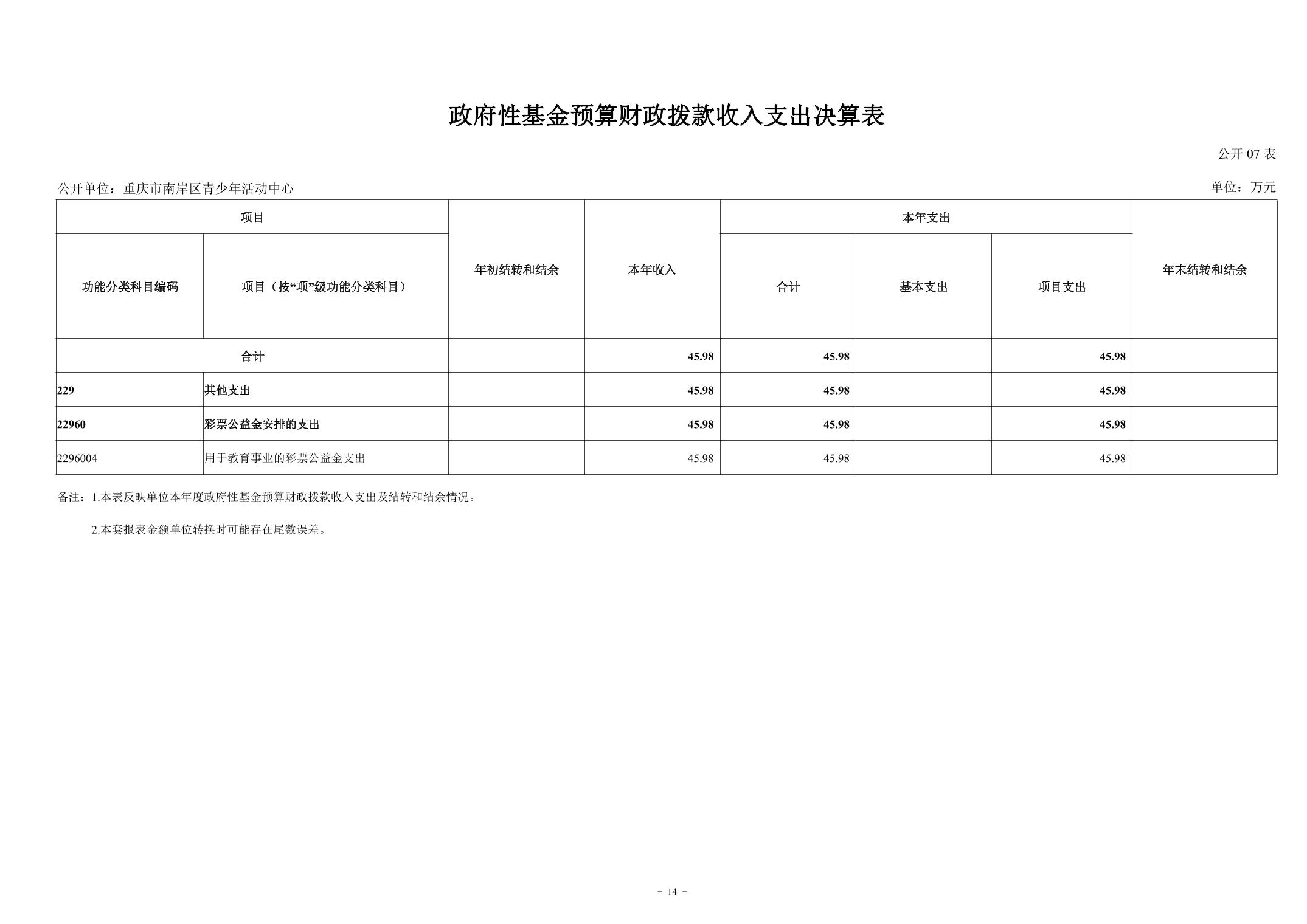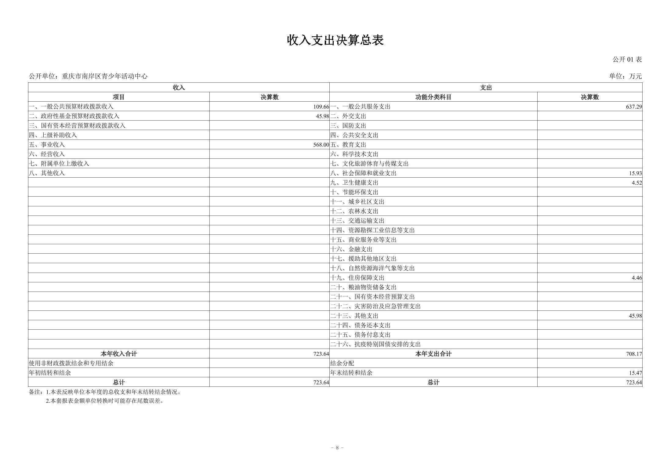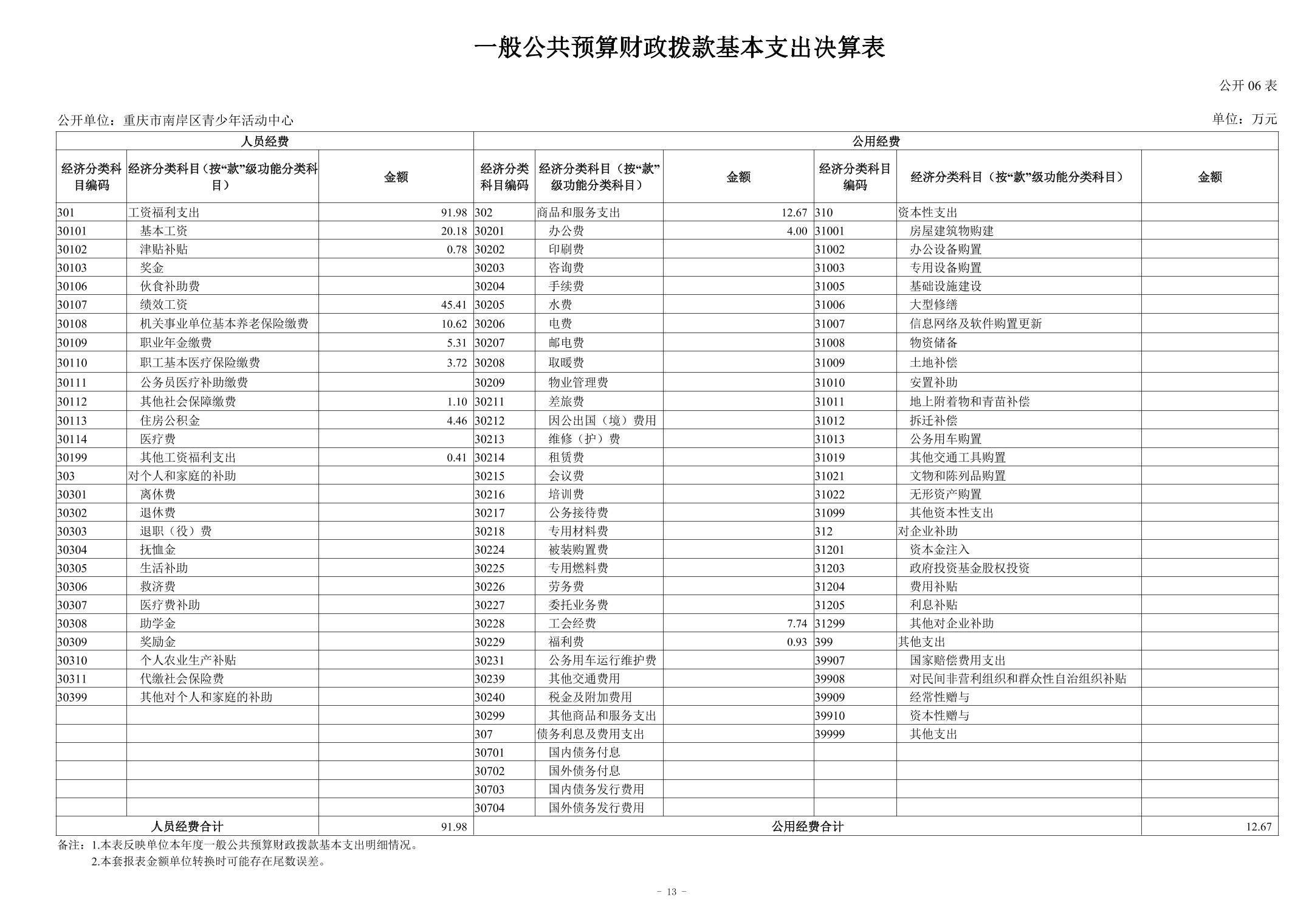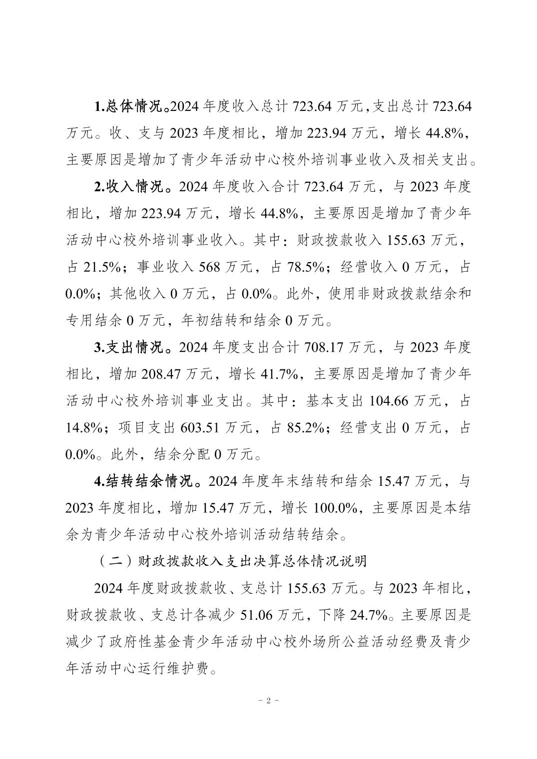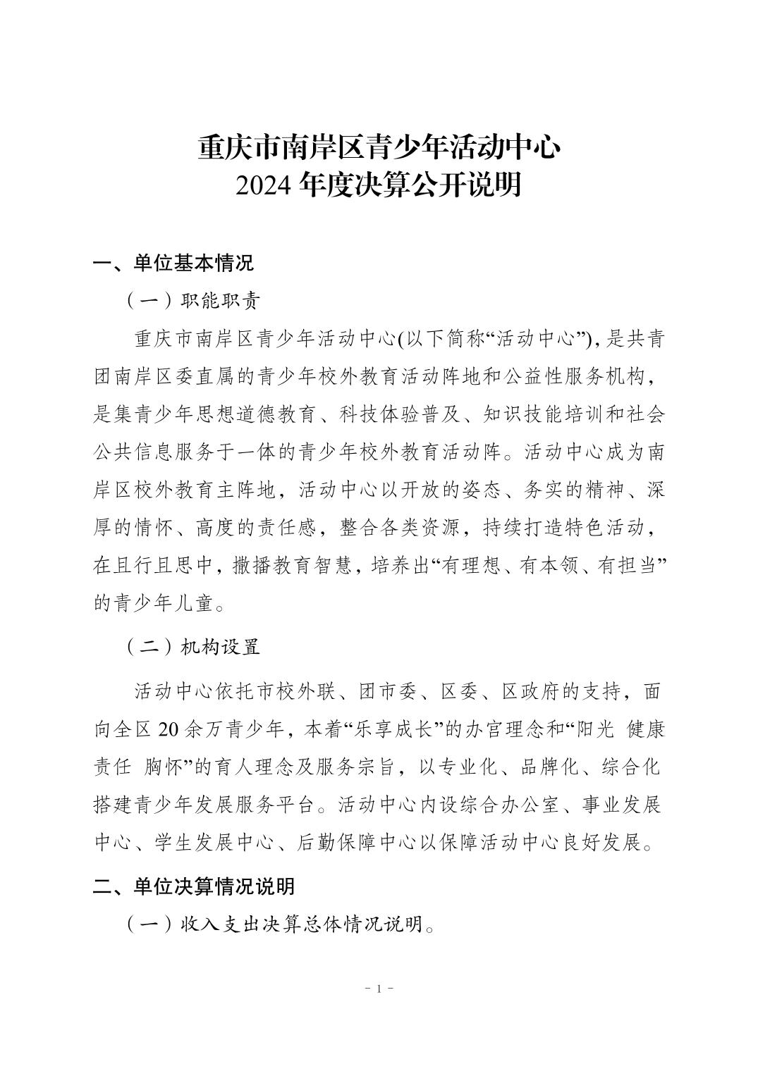 重庆市南岸区青少年活动中心2024年度决算公开说明