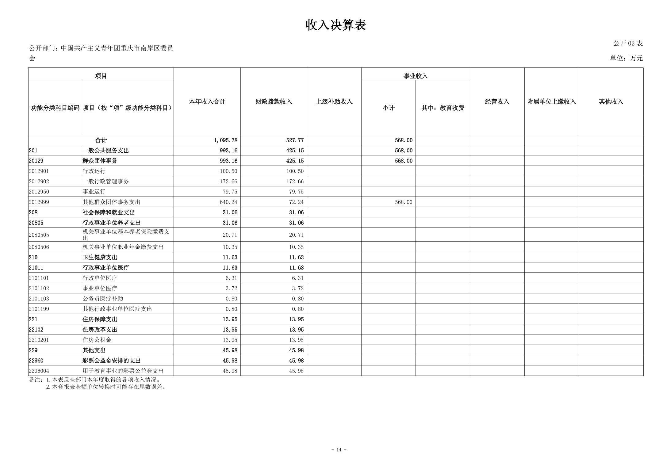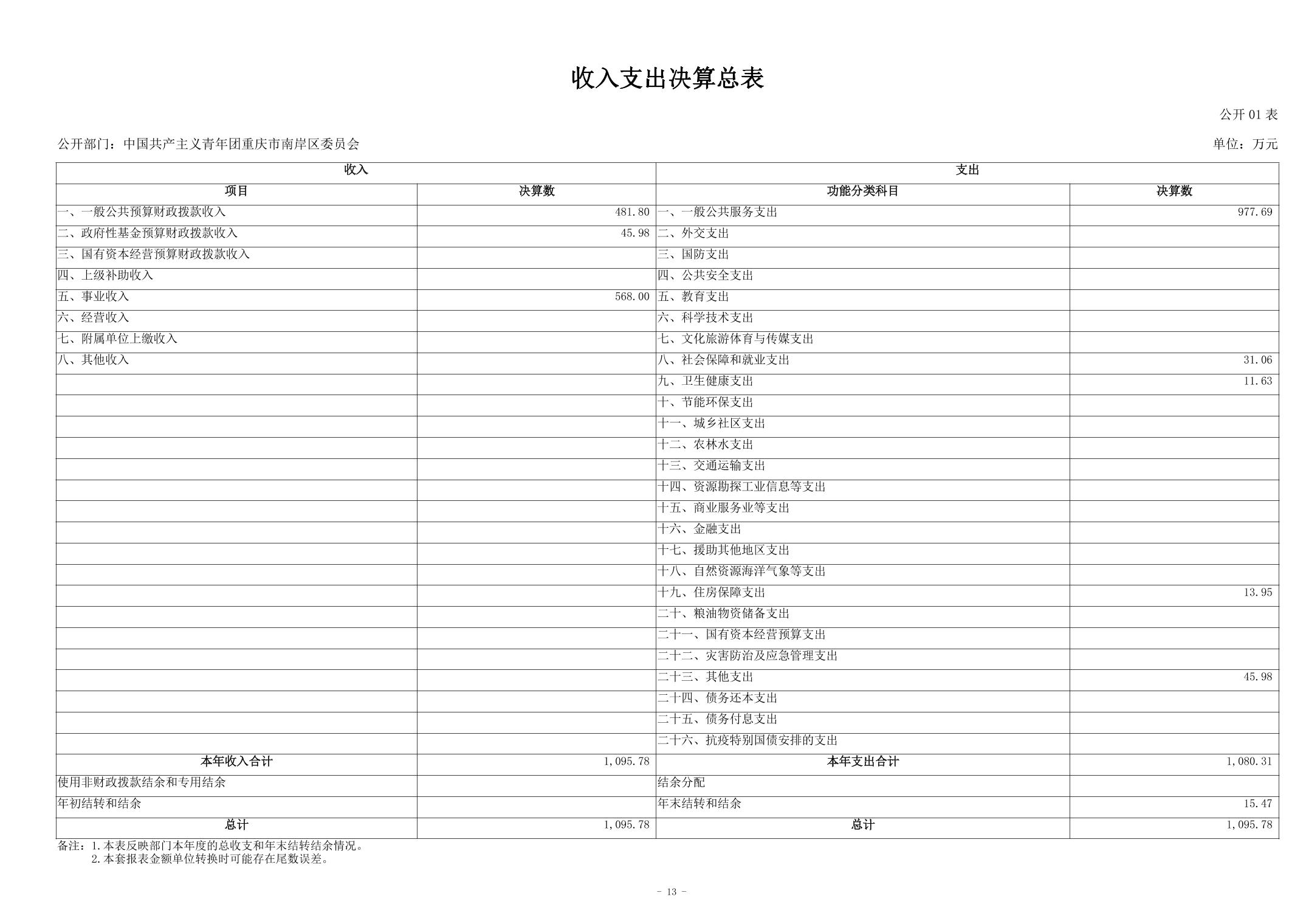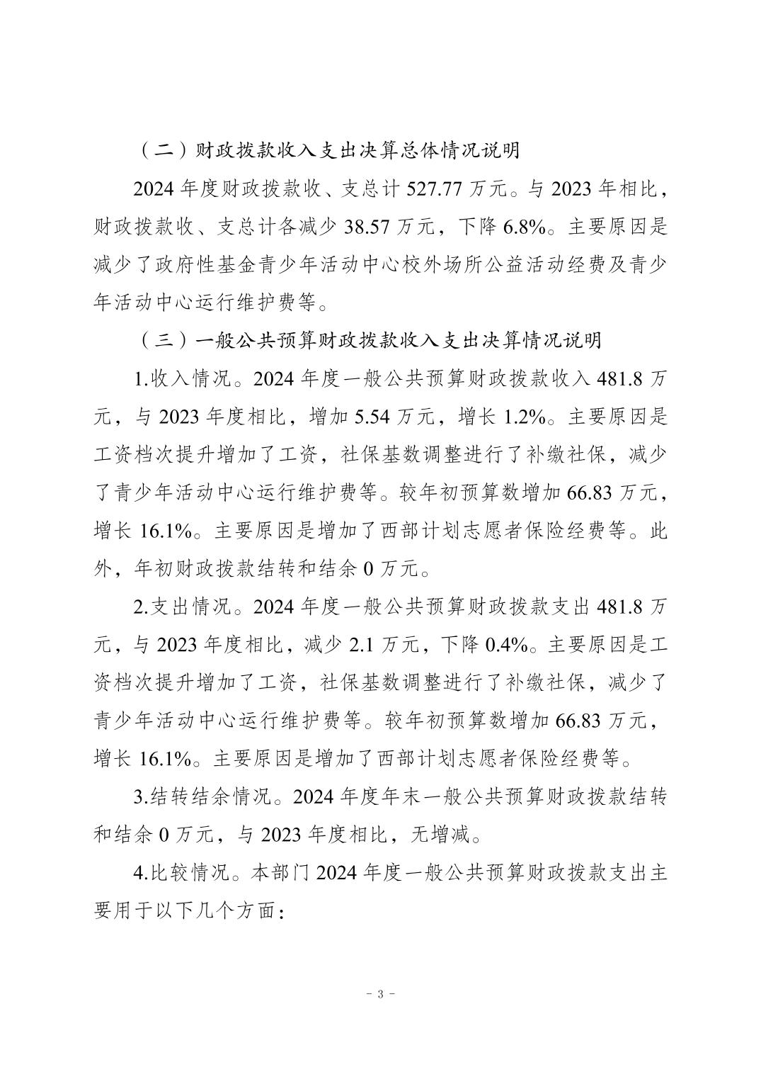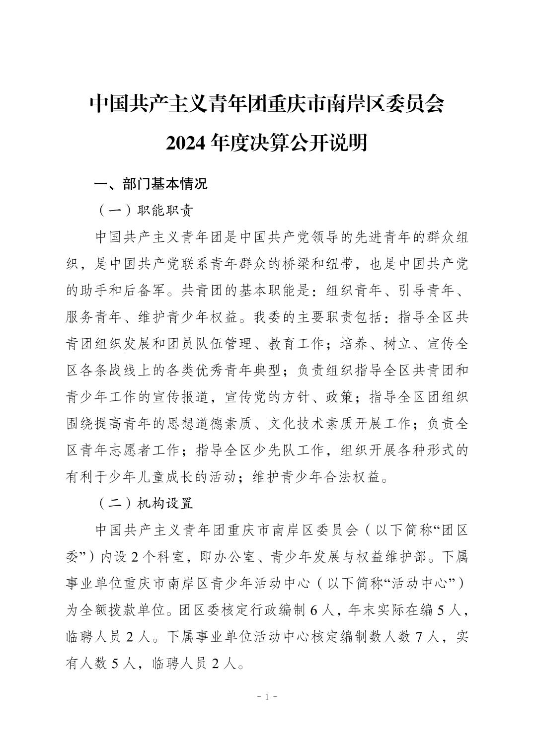 中国共产主义青年团重庆市南岸区委员会2024年度决算公开说明