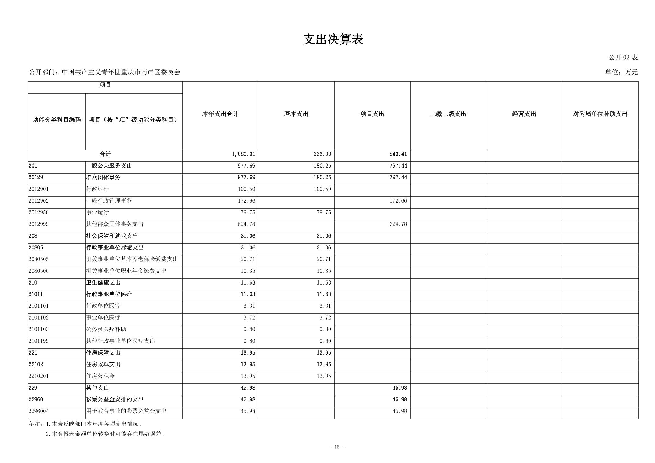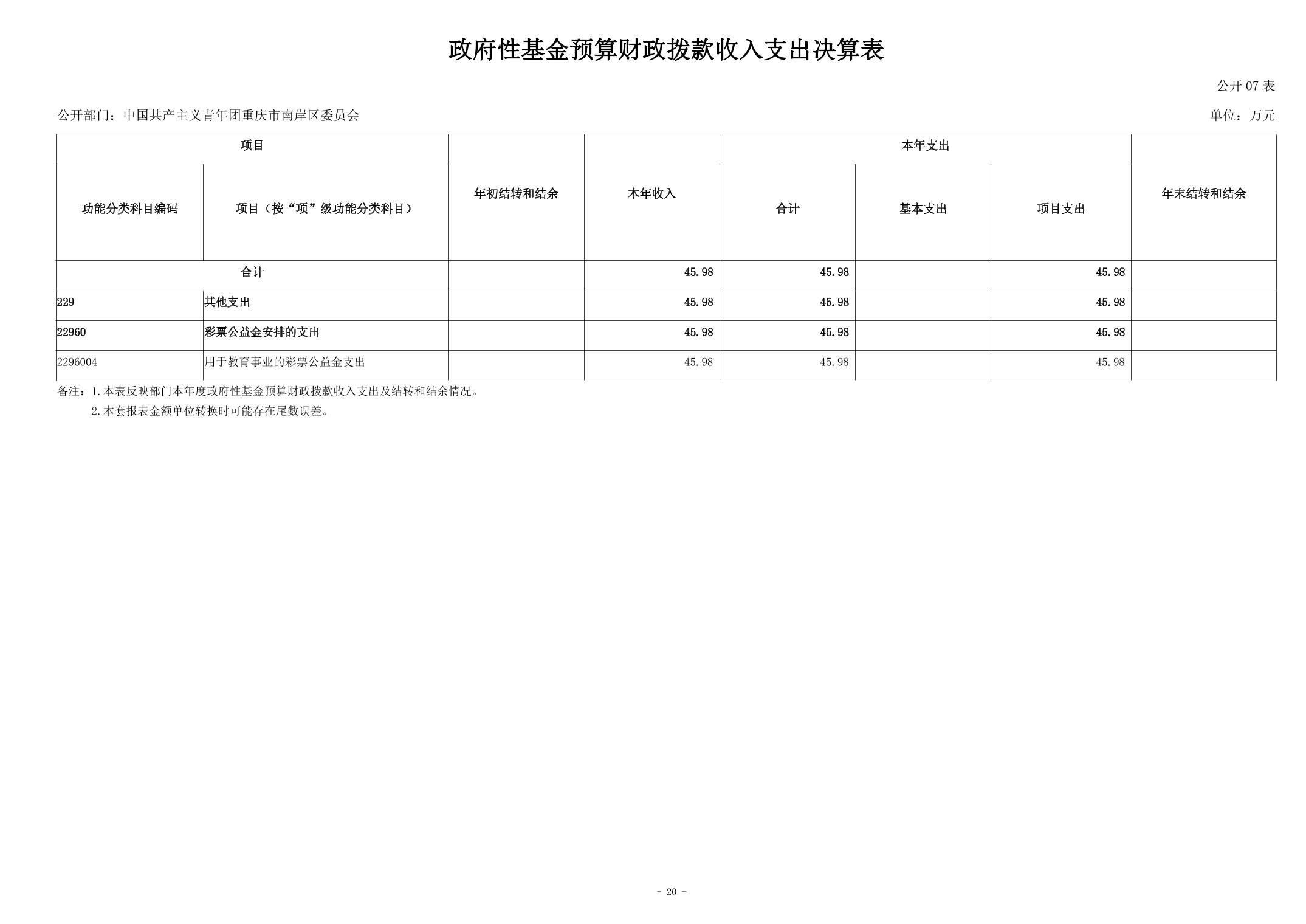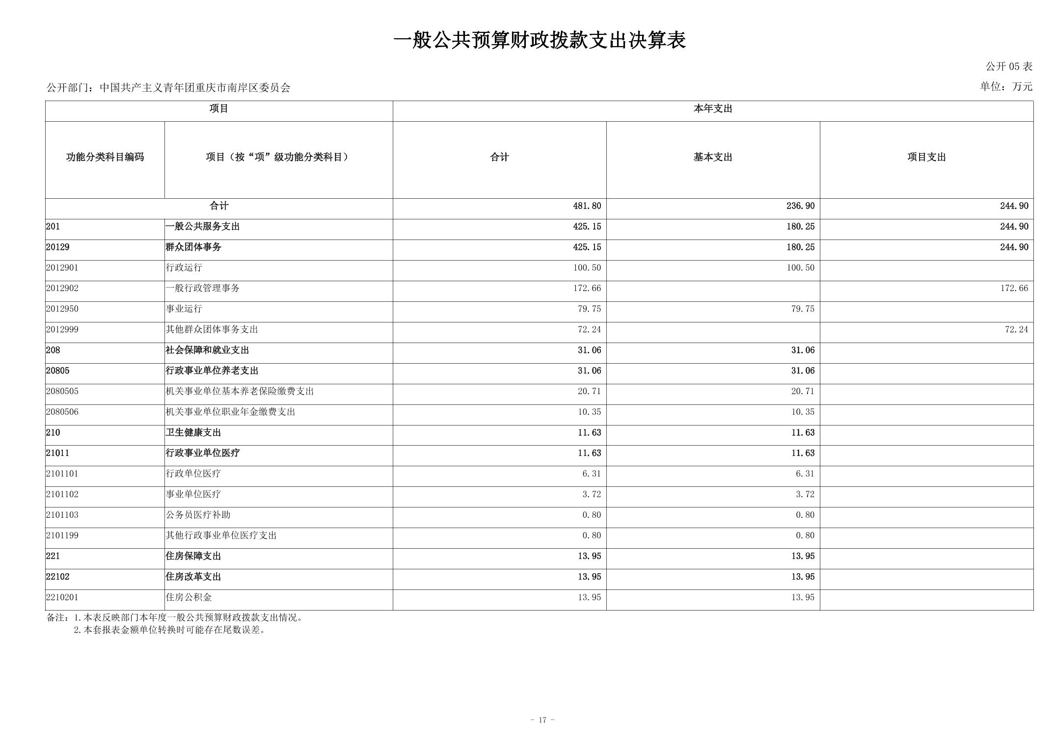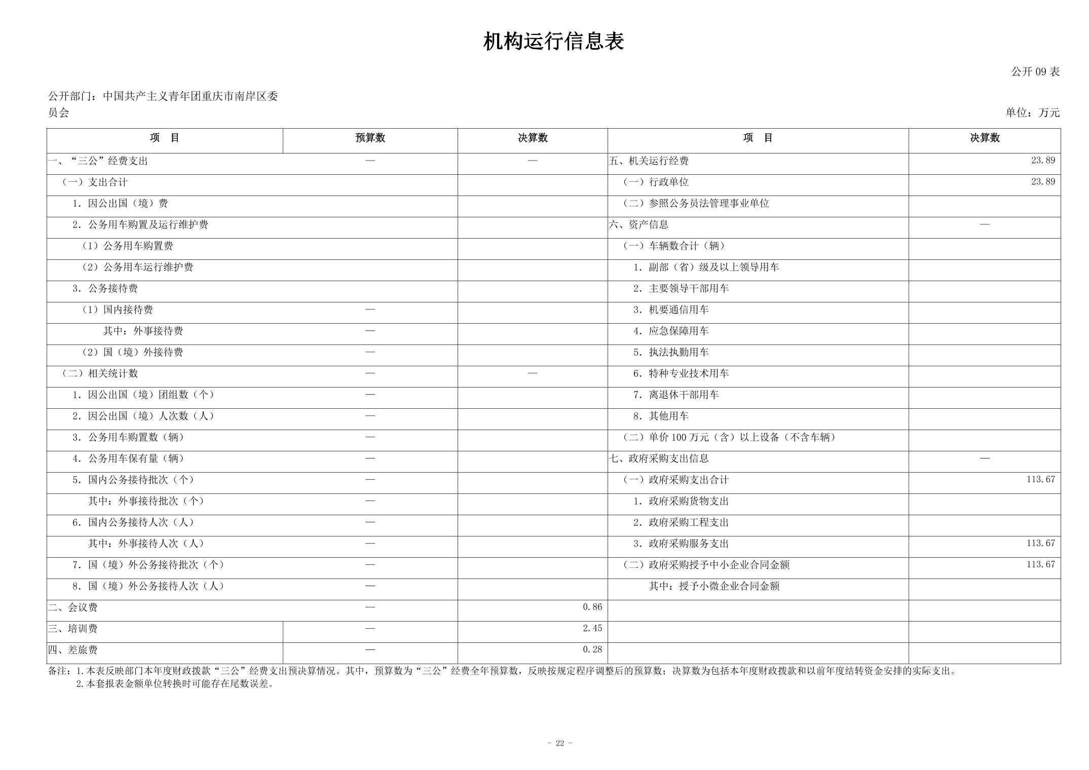 中国共产主义青年团重庆市南岸区委员会2024年度决算公开说明
