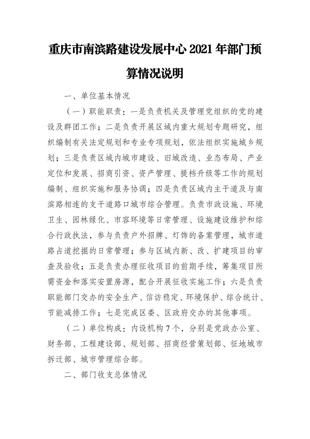 重庆市南滨路建设发展中心2021年部门预算情况说明