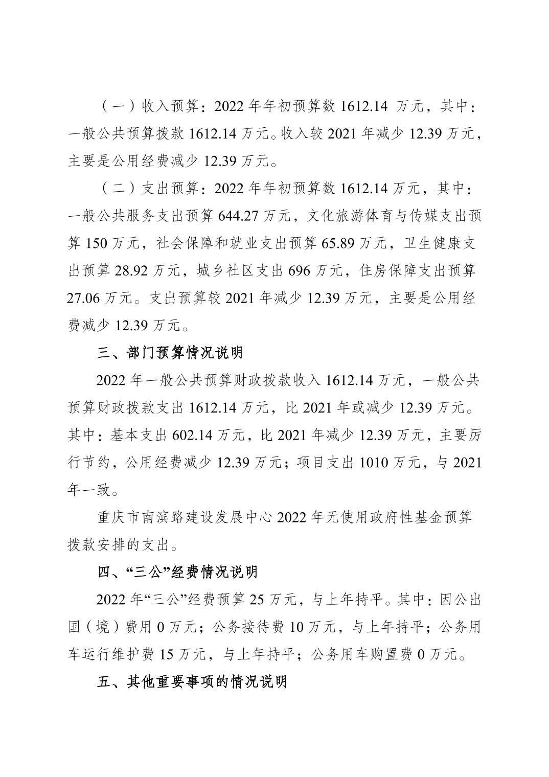 重庆市南滨路建设发展中心2022年部门预算情况说明