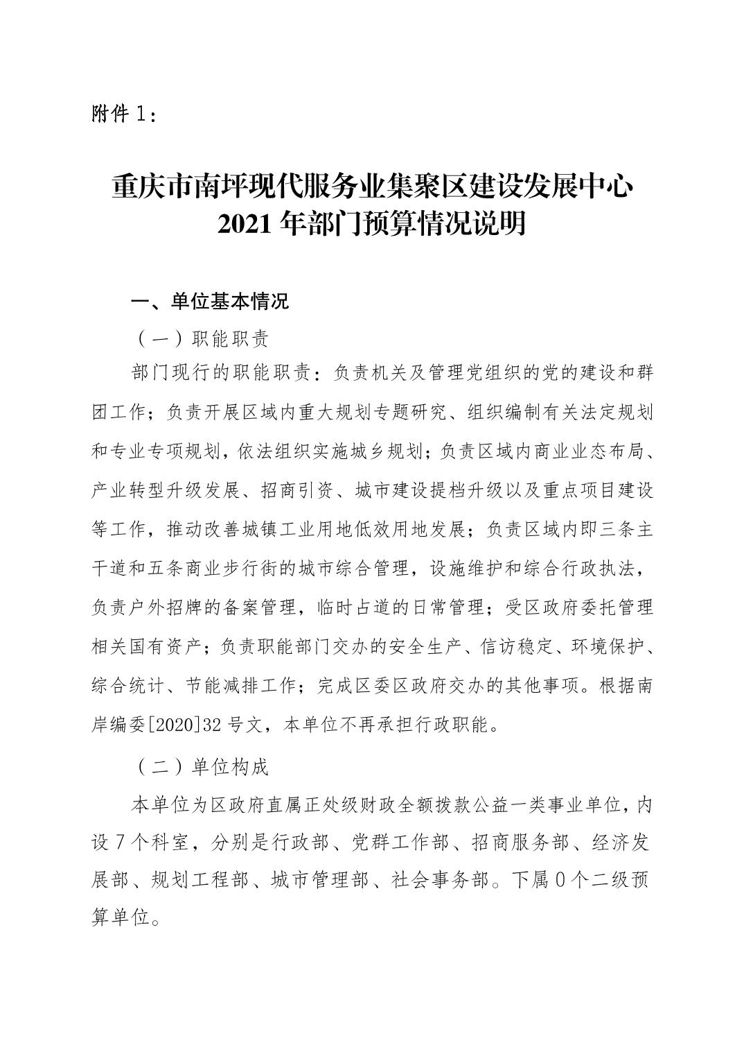 重庆市南坪现代服务业集聚区建设发展中心2021年部门预算情况说明