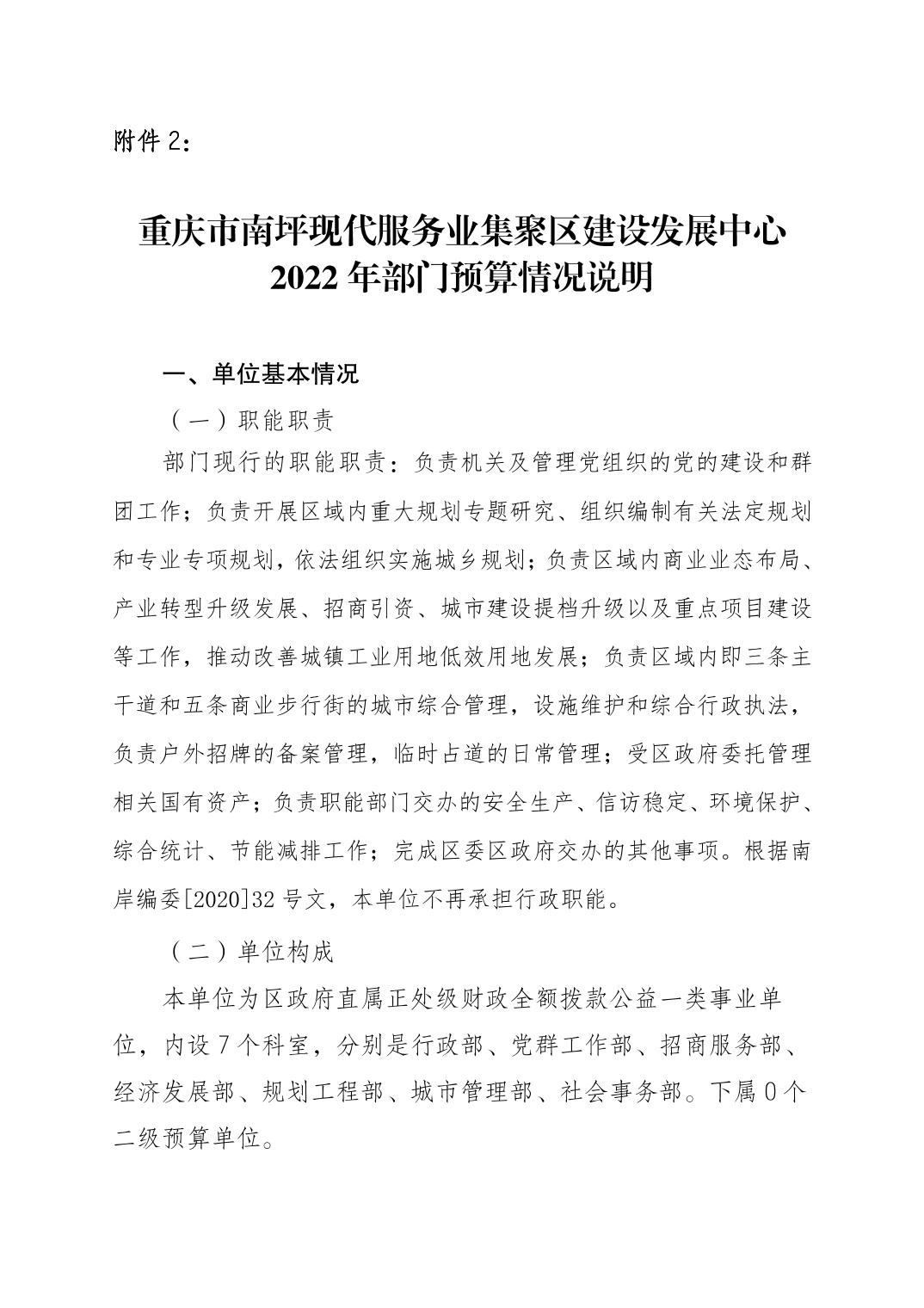 重庆市南坪现代服务业集聚区建设发展中心2022年部门预算情况说明