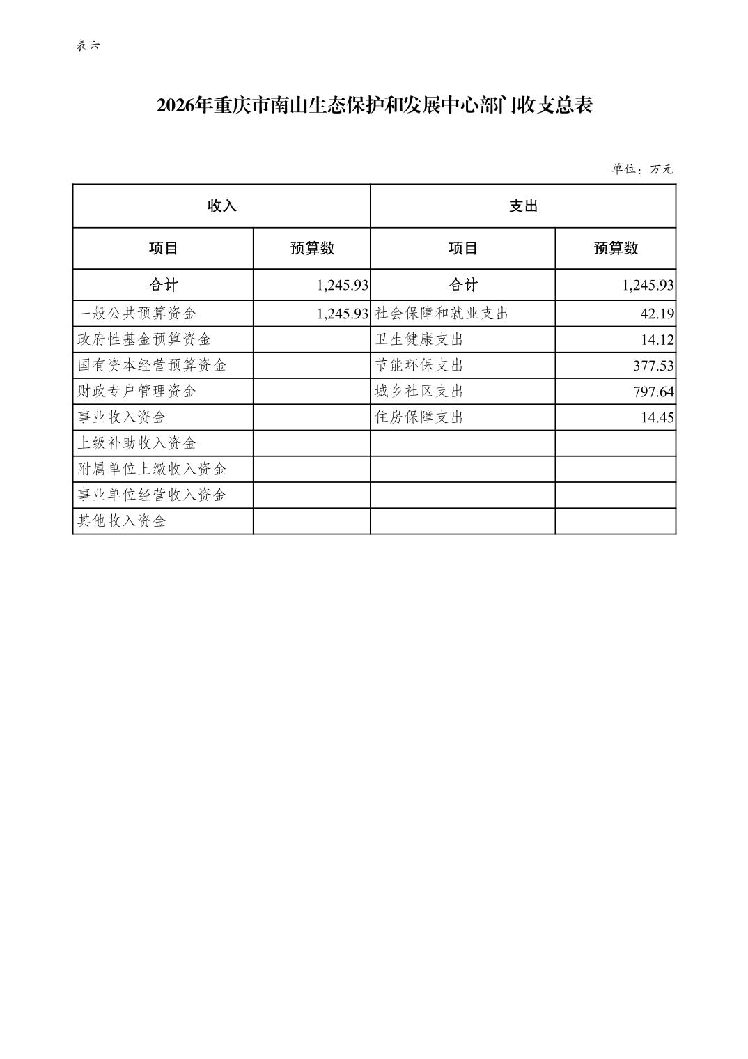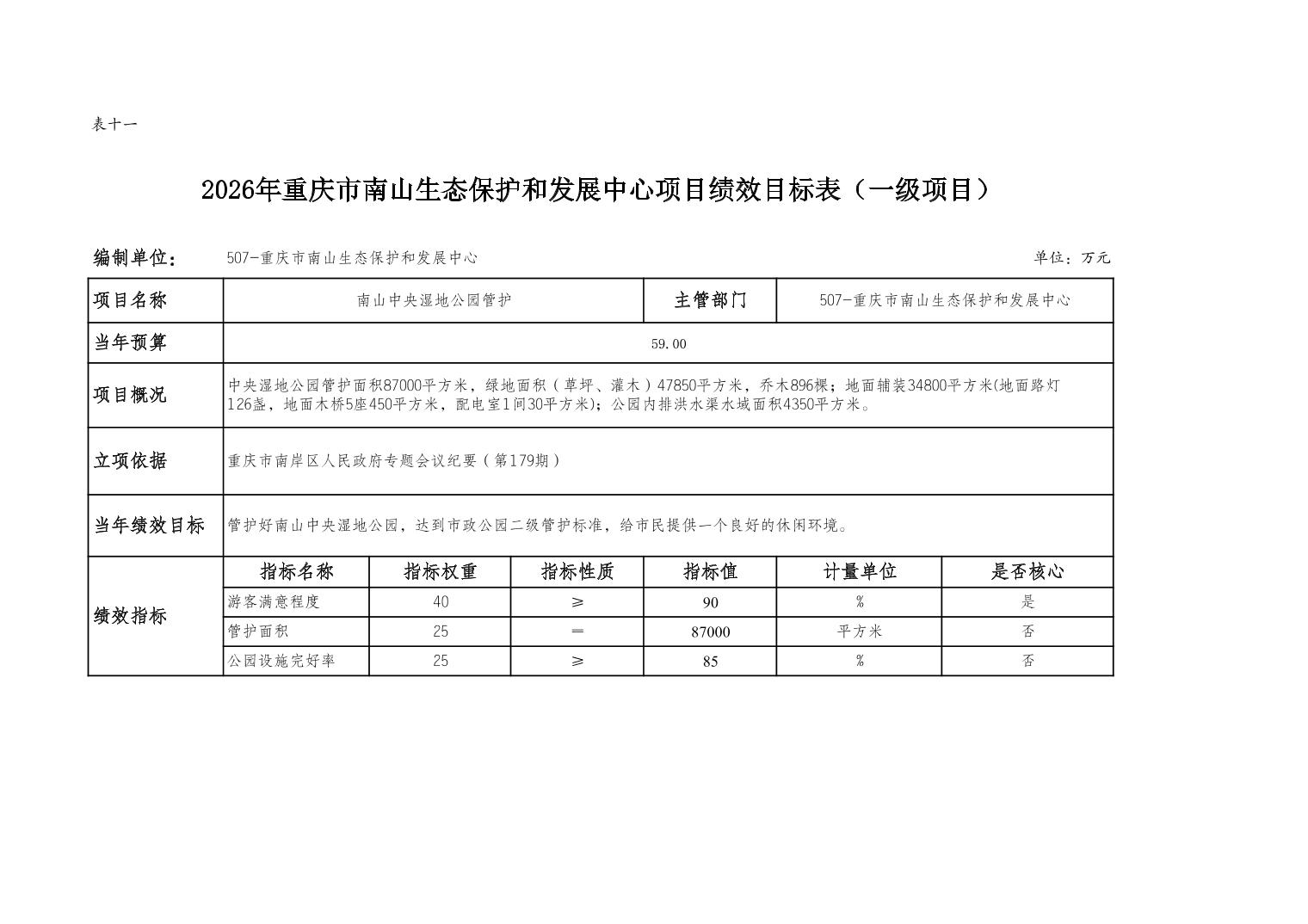 重庆市南山生态保护和发展中心2026年部门预算情况说明