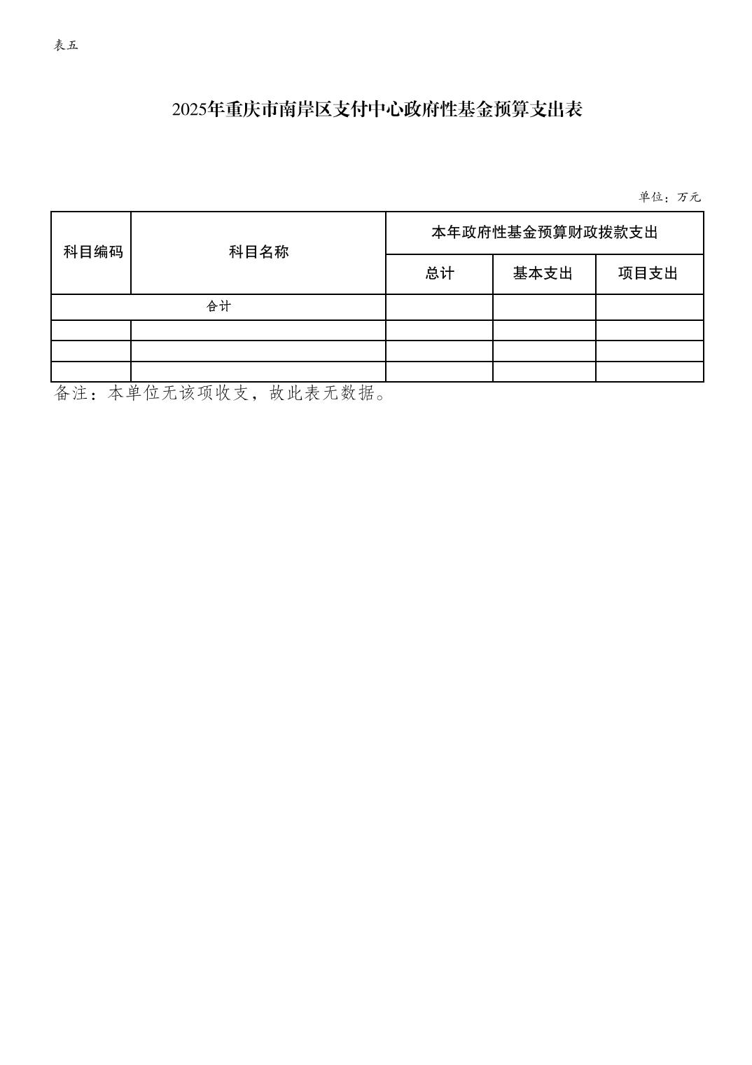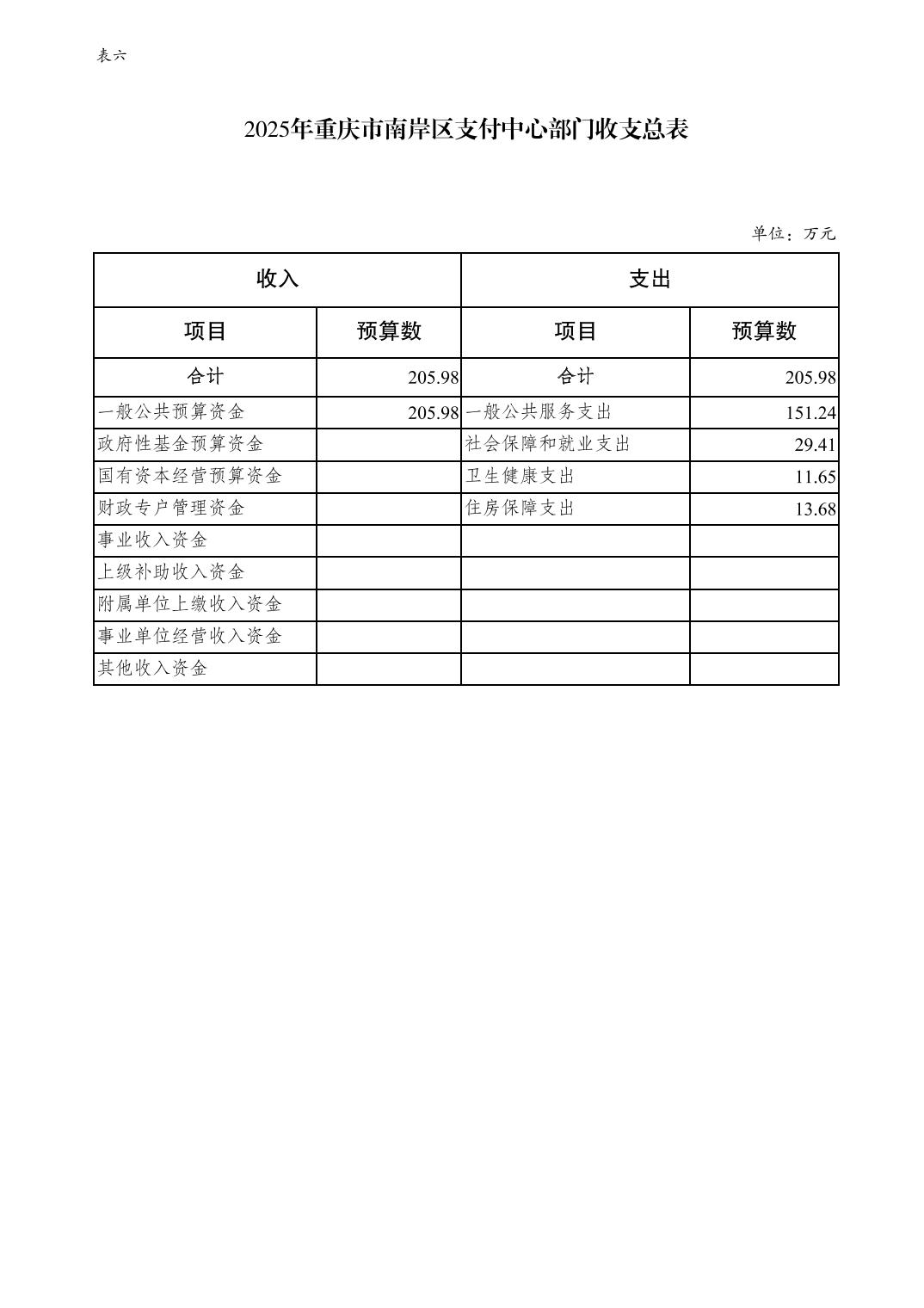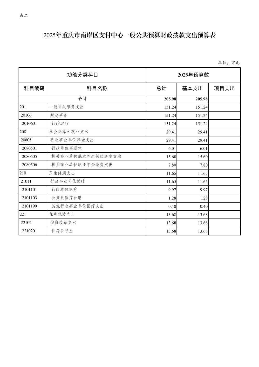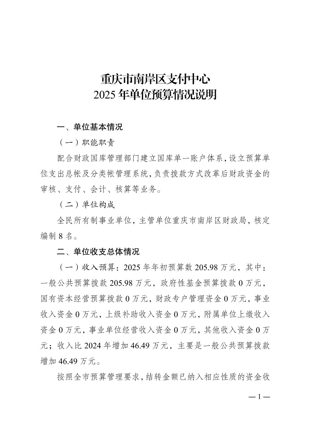 重庆市南岸区支付中心 2025 年单位预算情况说明