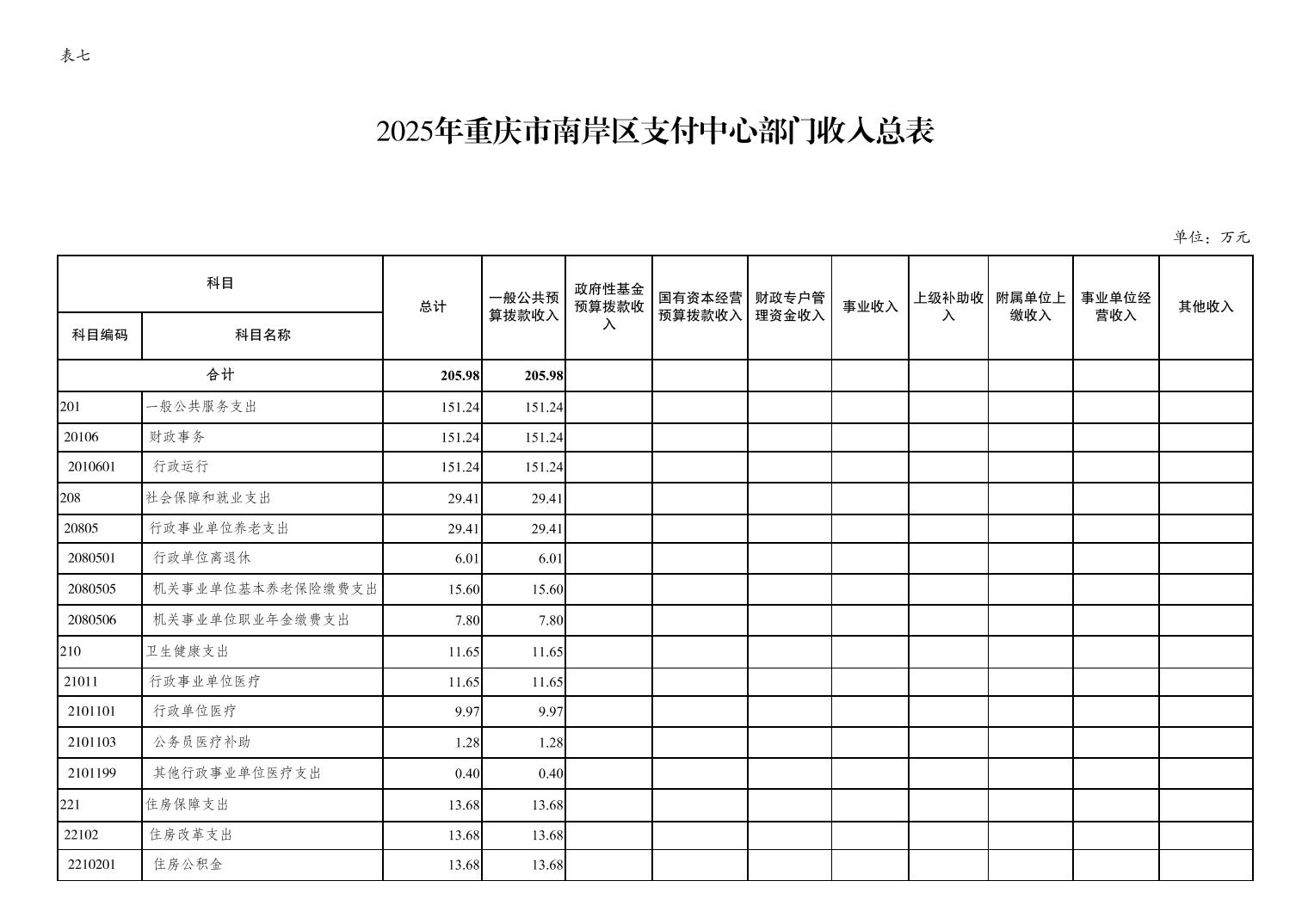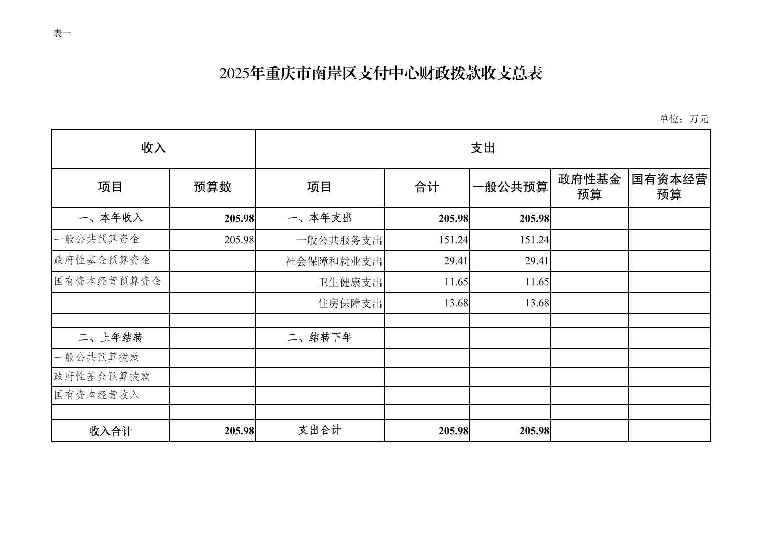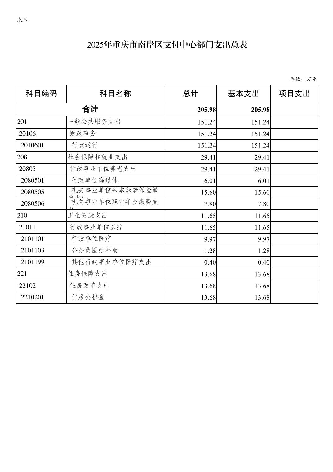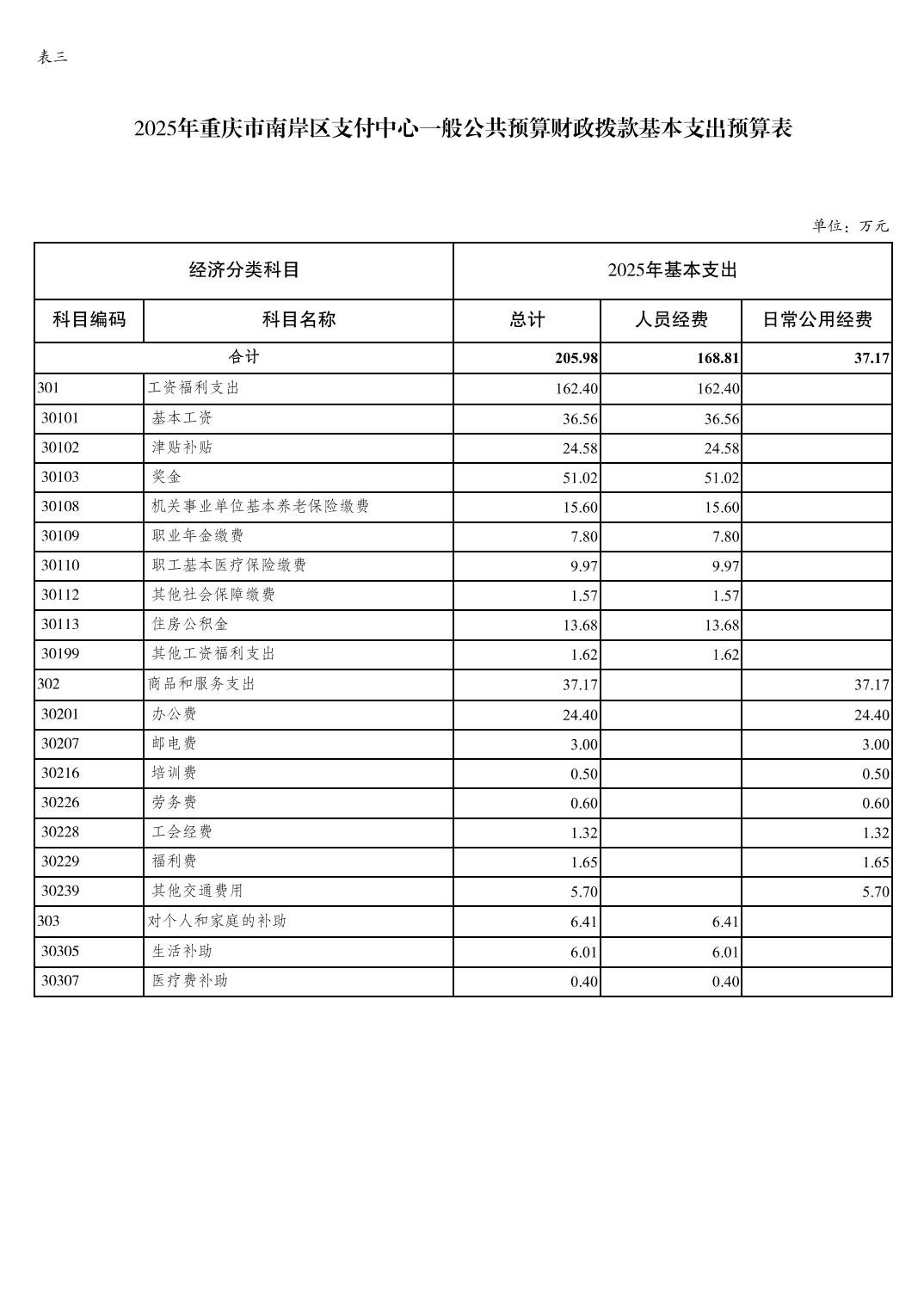 重庆市南岸区支付中心 2025 年单位预算情况说明