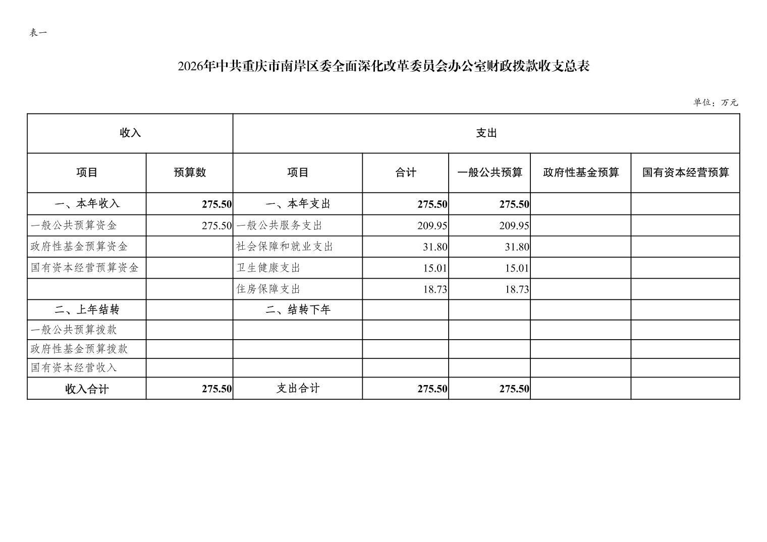 中共重庆市南岸区委全面深化改革委员会办公室2026年单位预算情况说明