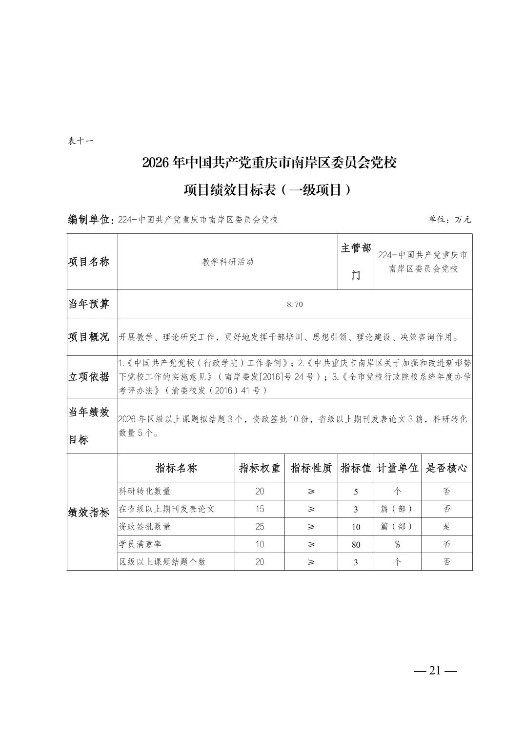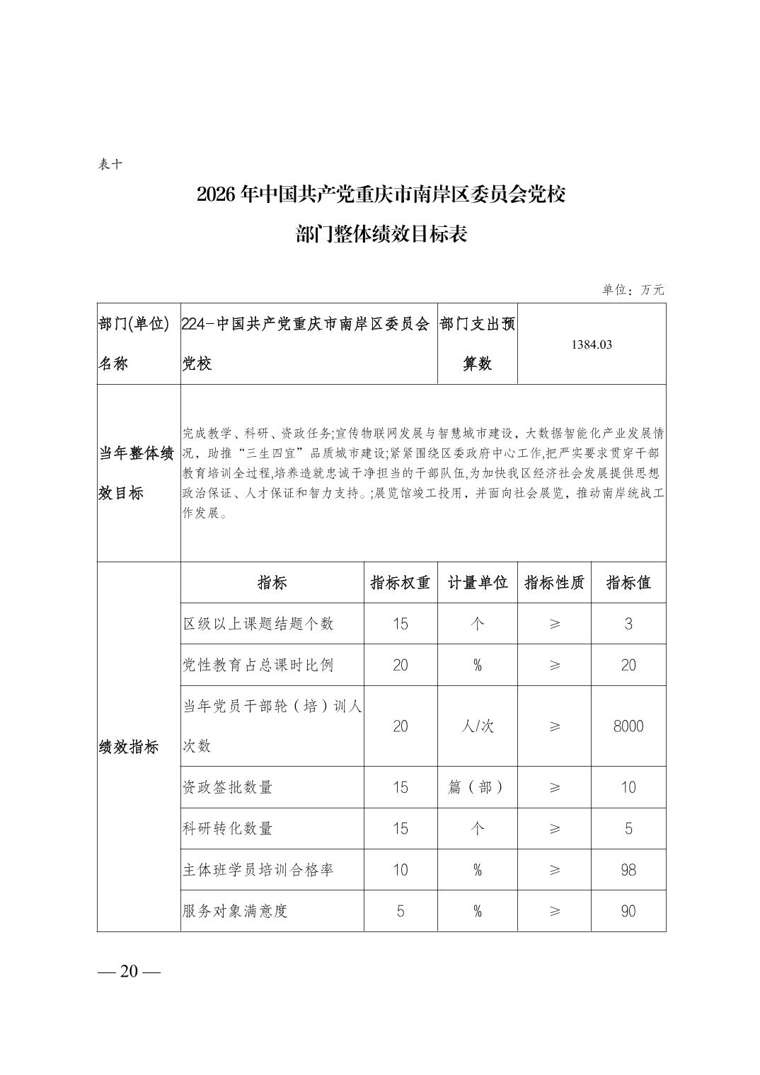 中国共产党重庆市南岸区委员会党校2026年部门预算情况说明