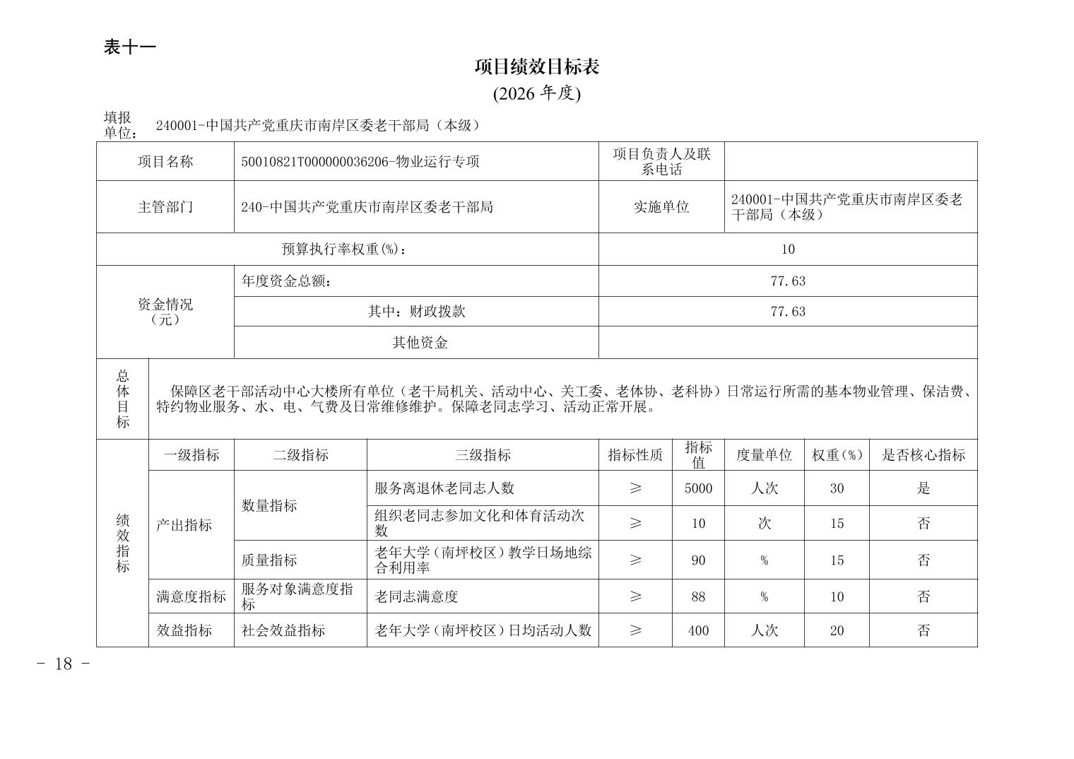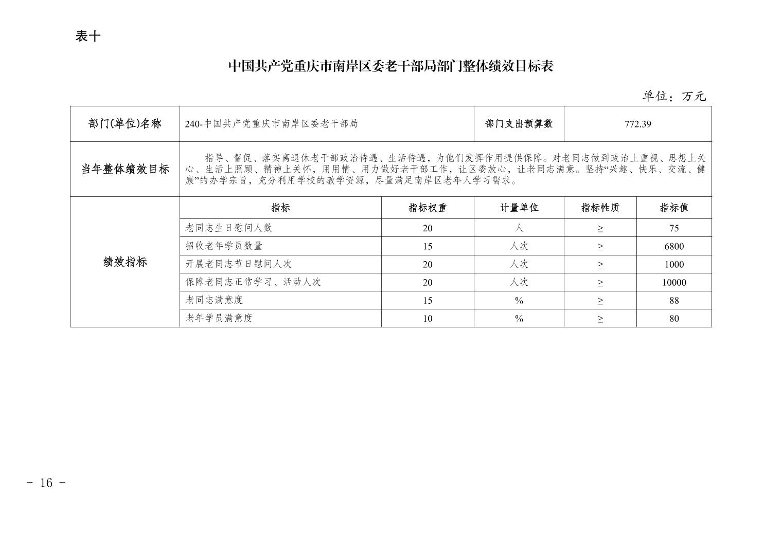 中国共产党重庆市南岸区委老干部局2026年部门预算情况说明