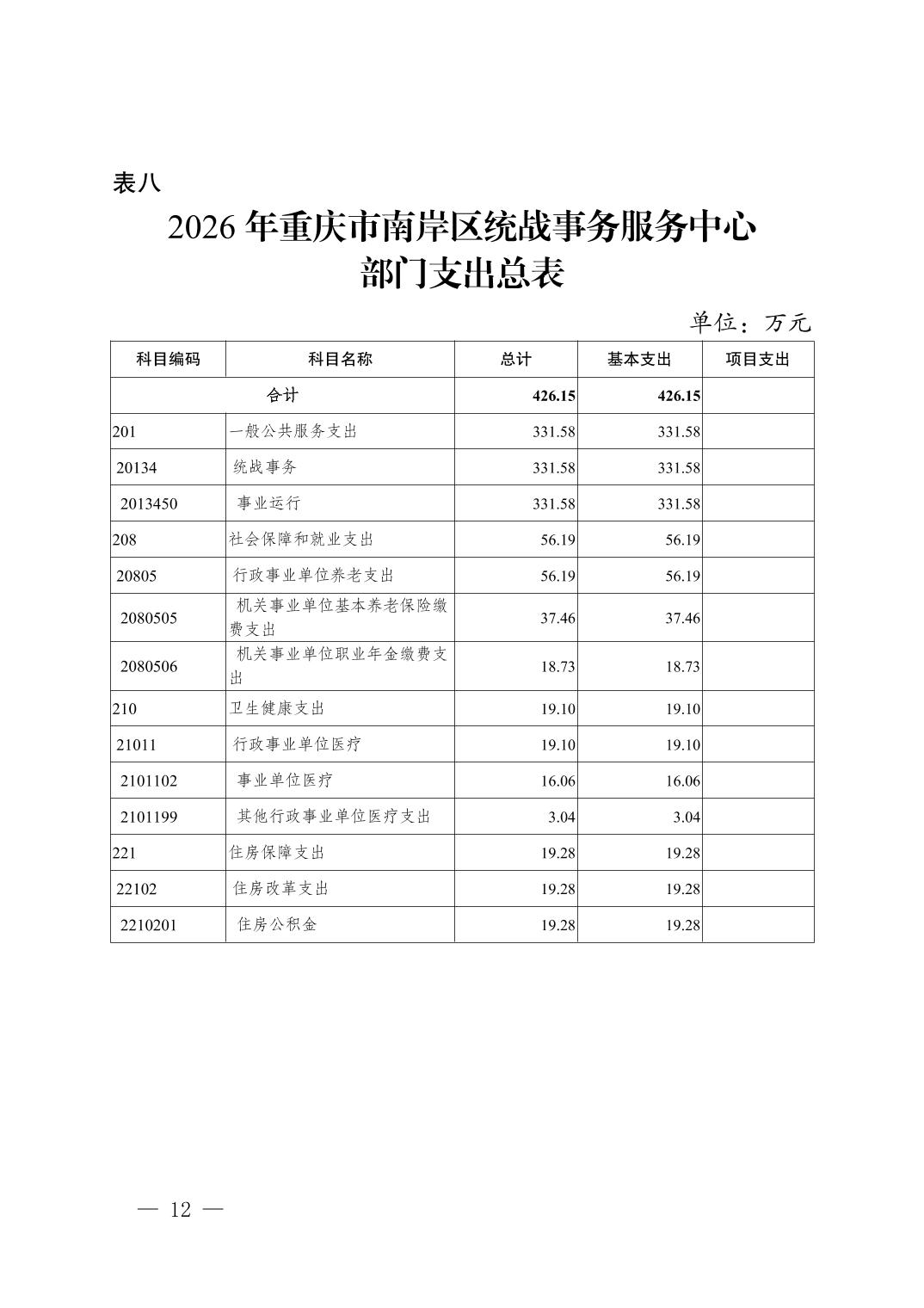 重庆市南岸区统战事务服务中心2026年单位预算情况说明