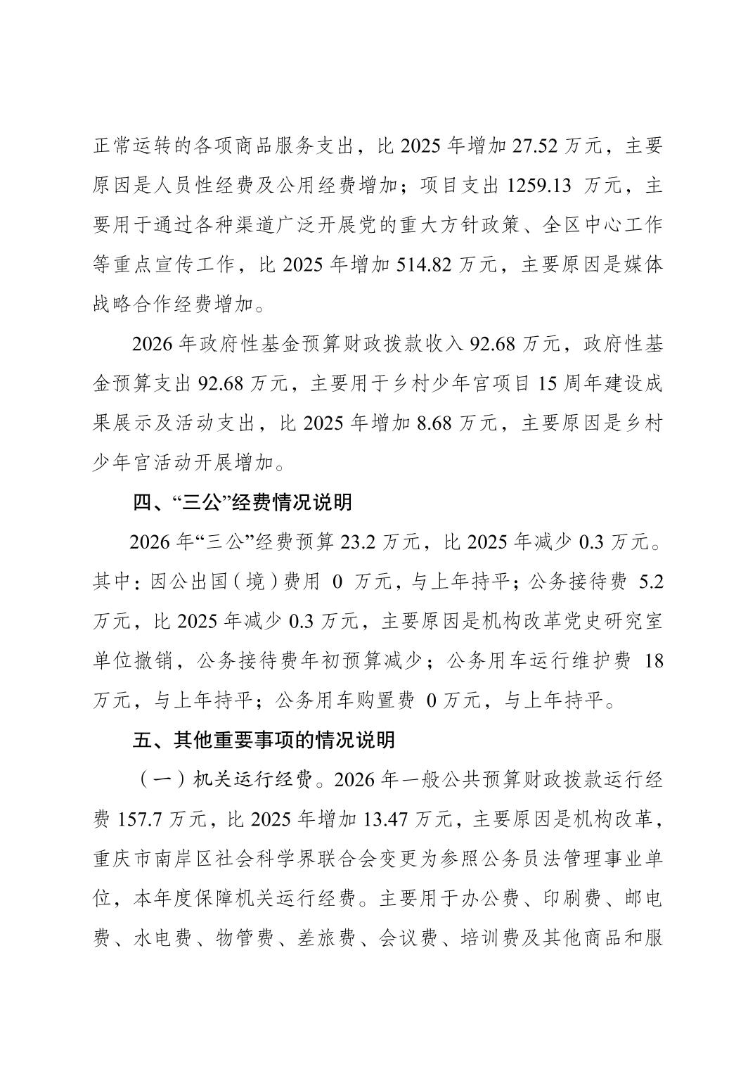 中国共产党重庆市南岸区委宣传部2026年部门预算情况说明