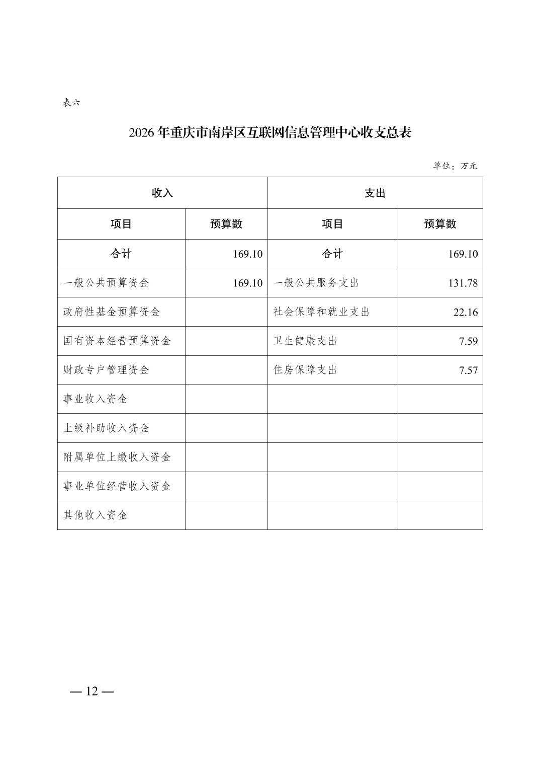 重庆市南岸区互联网信息管理中心2026年单位预算情况说明