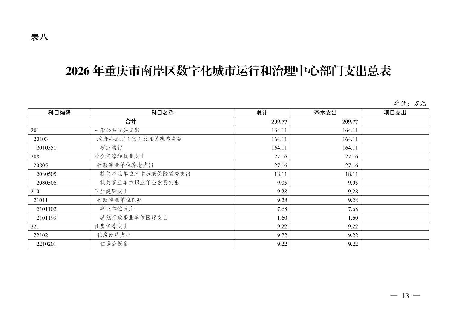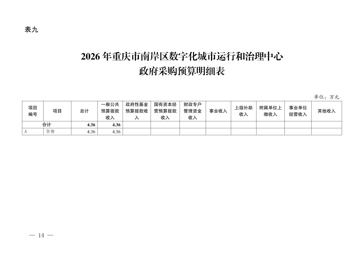 重庆市南岸区数字化城市运行和治理中心2026年单位预算情况说明