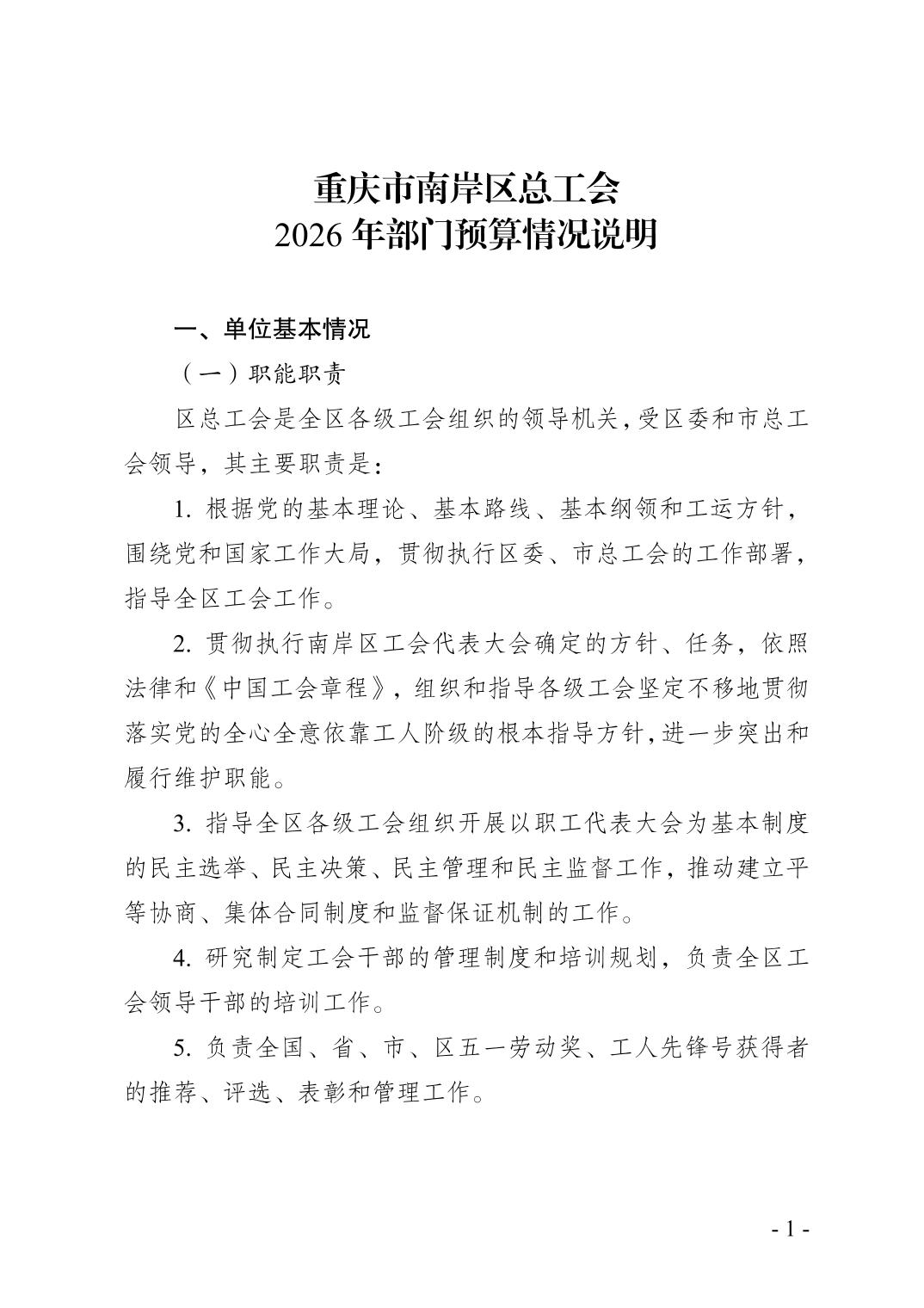 重庆市南岸区总工会2026年部门预算情况说明