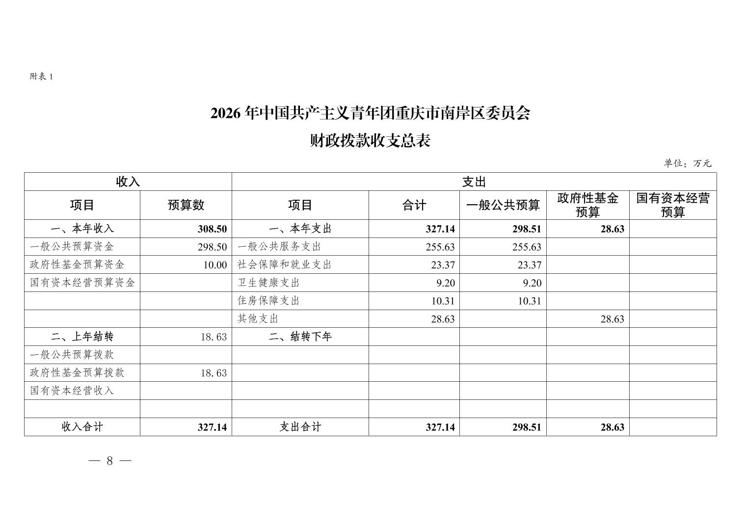 中国共产主义青年团重庆市南岸区委员会2026年部门预算情况说明