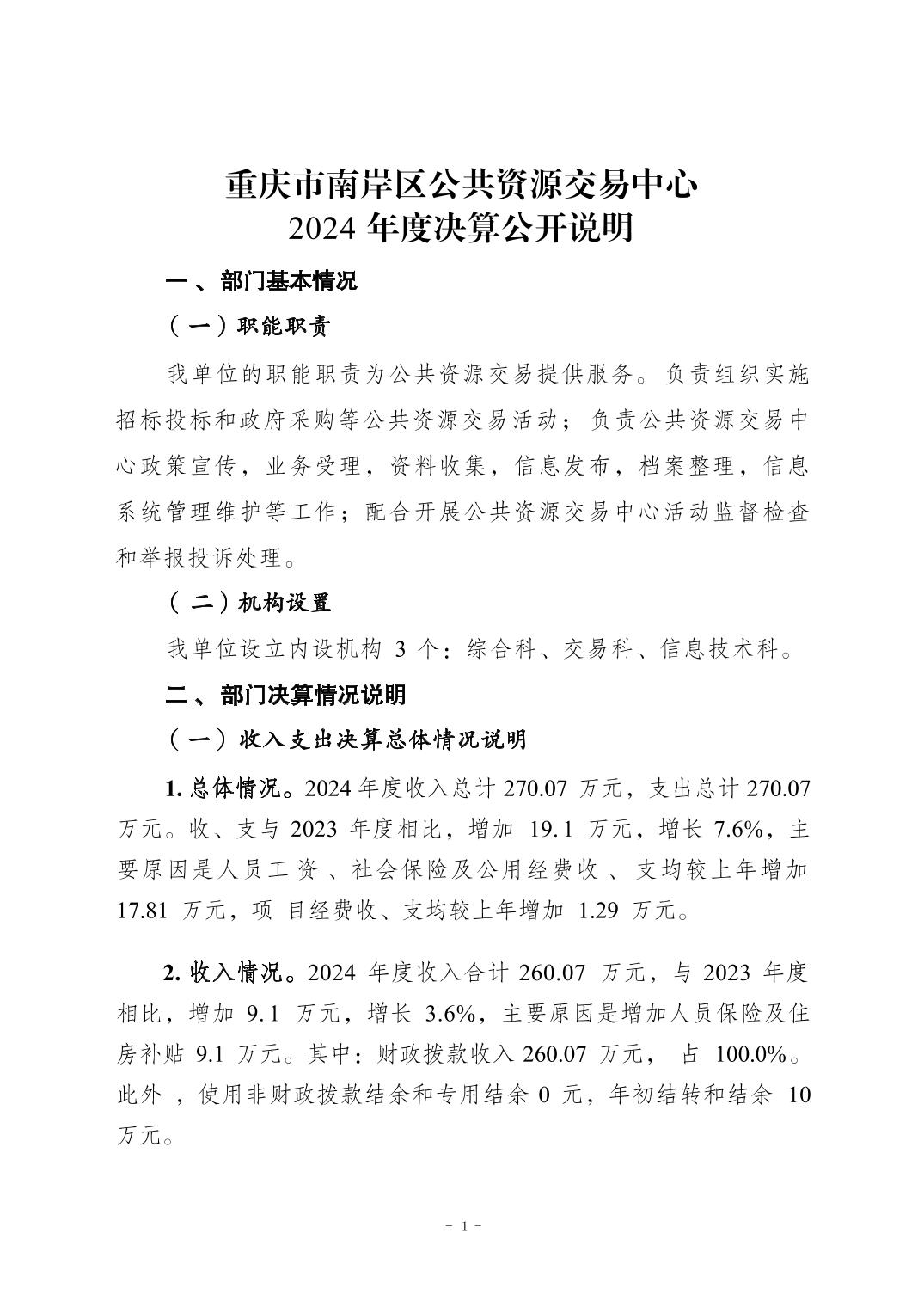 重庆市南岸区公共资源交易中心2024年决算公开报告及公开报表