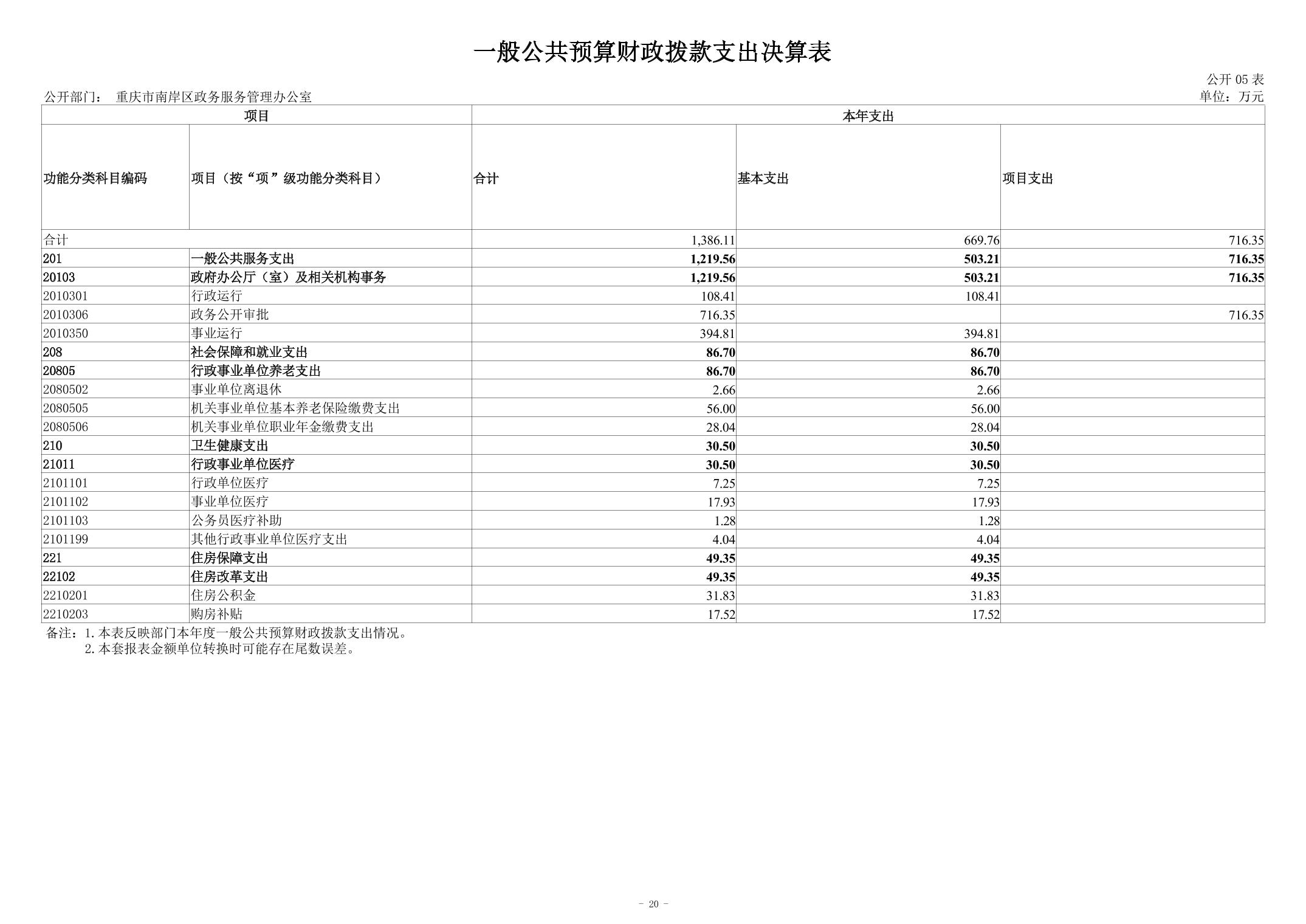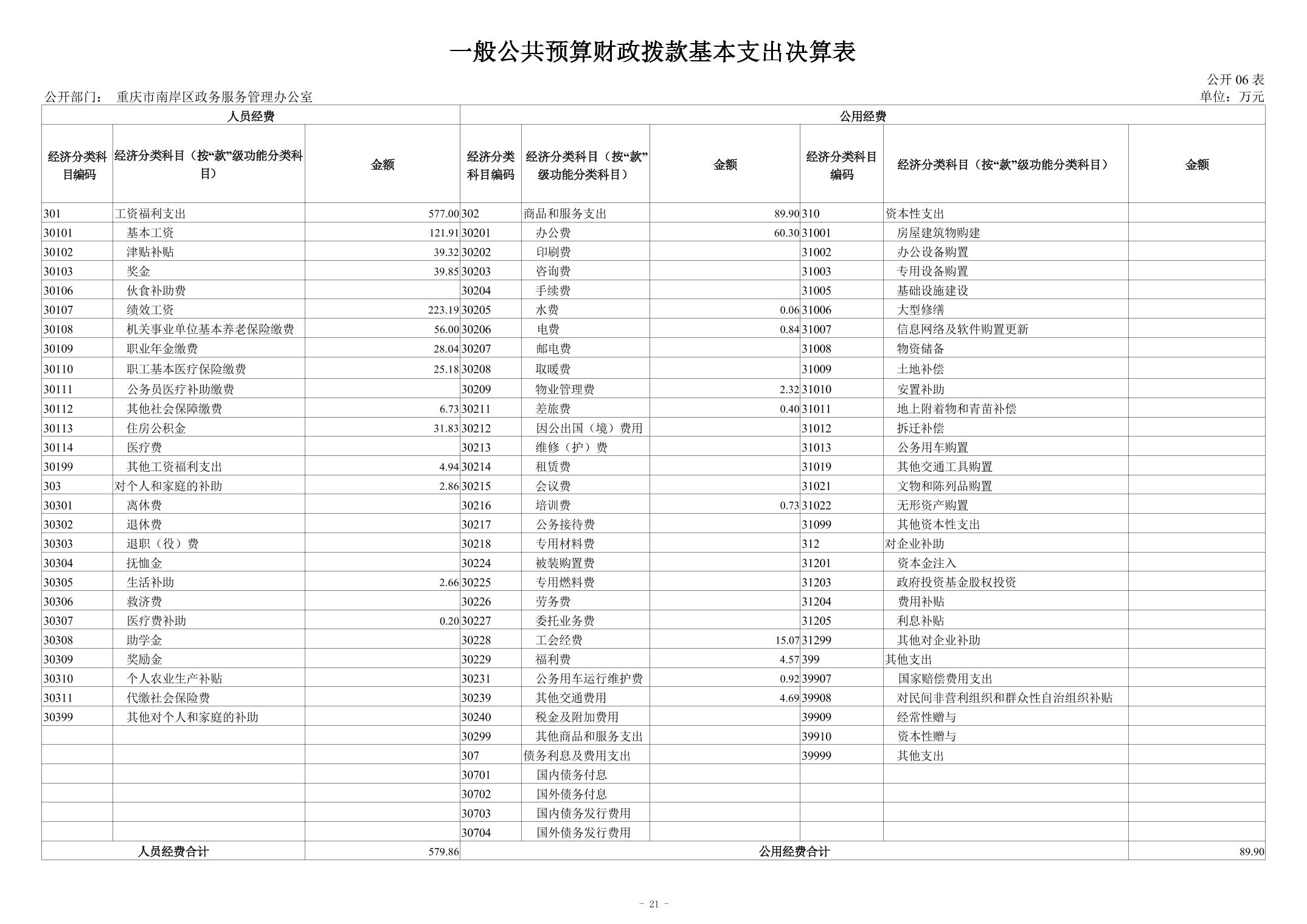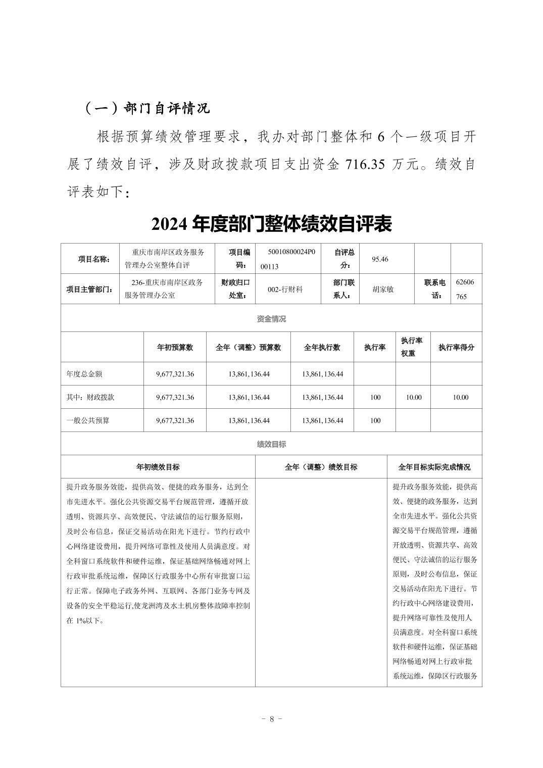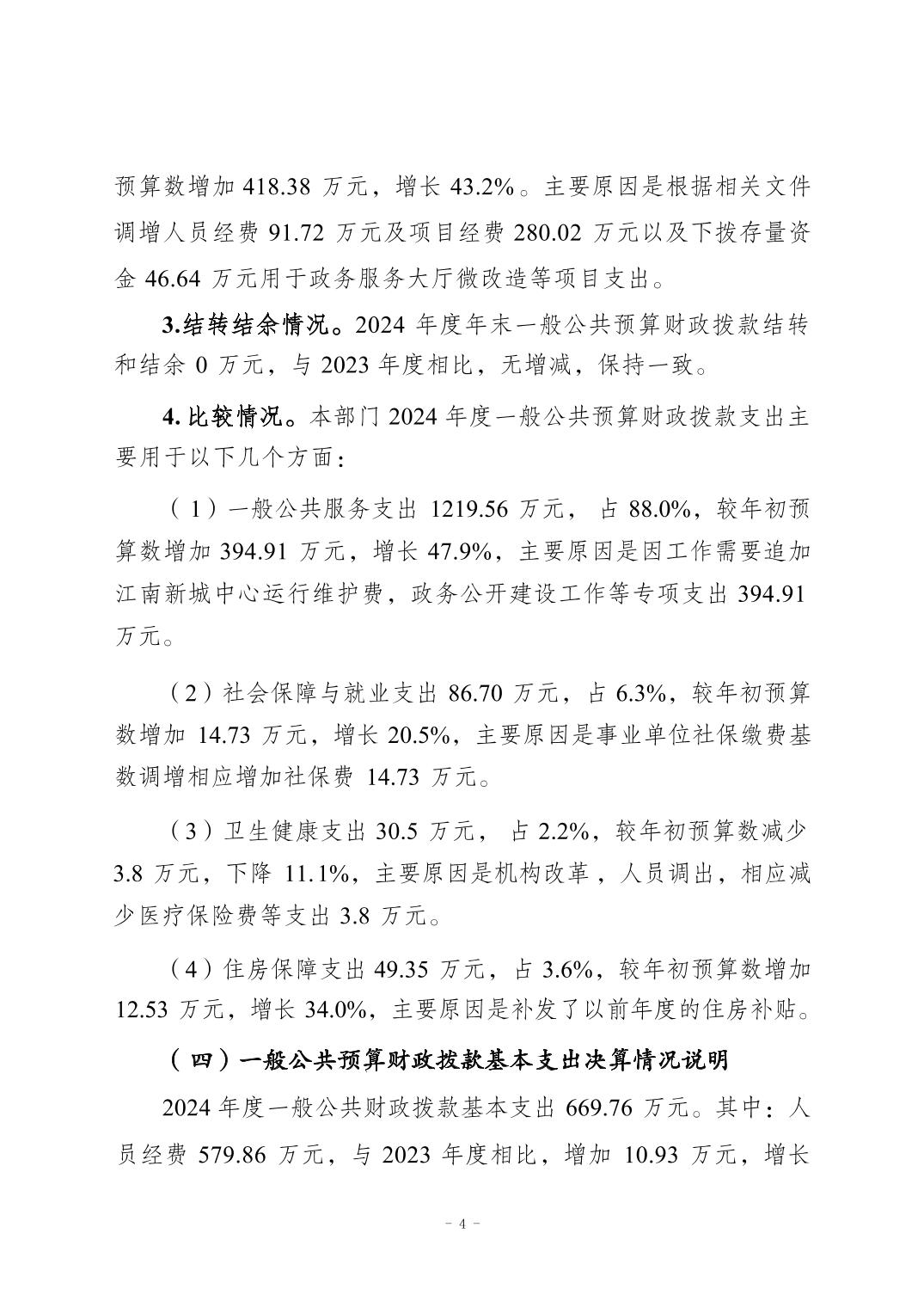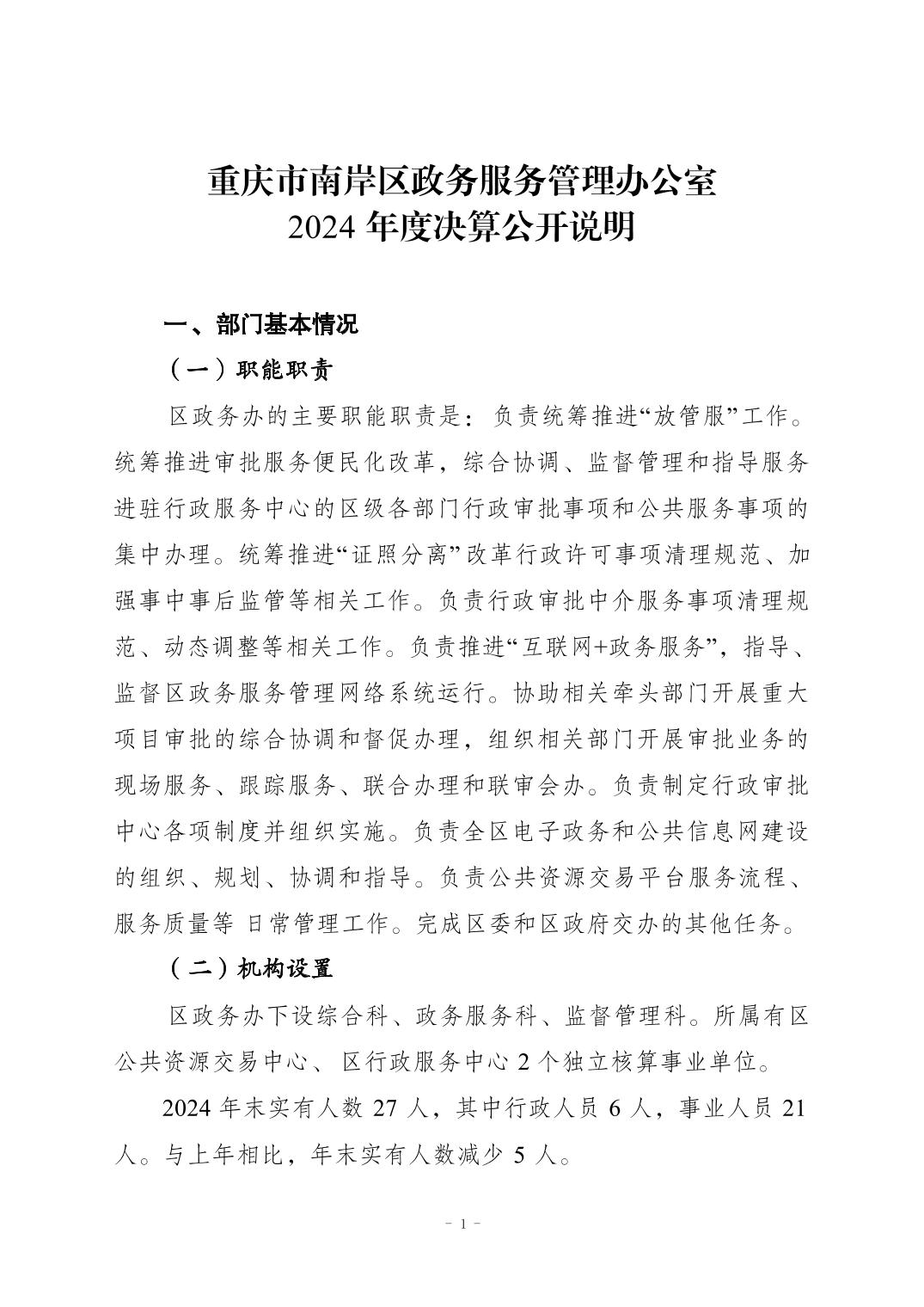重庆市南岸区政务服务管理办公室2024年决算公开报告及公开报表(部门)