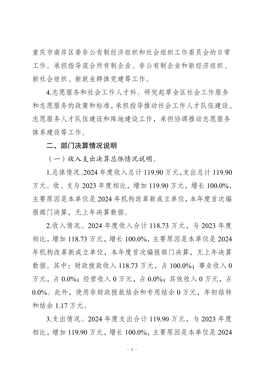 中共重庆市南岸区委社会工作部2024年度决算公开说明