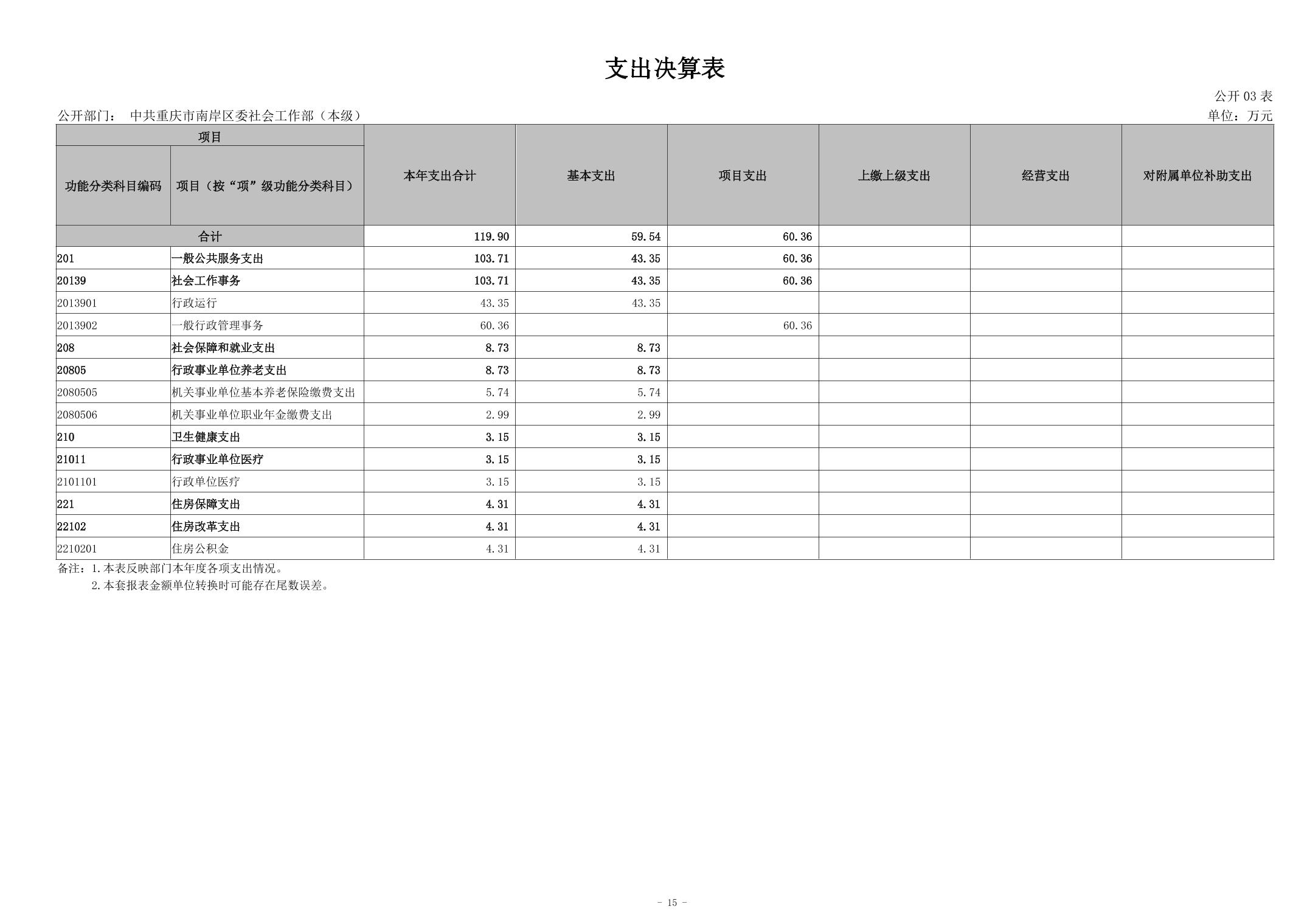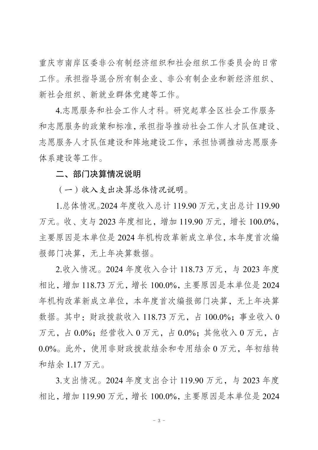 中共重庆市南岸区委社会工作部(本级)2024年度决算公开说明