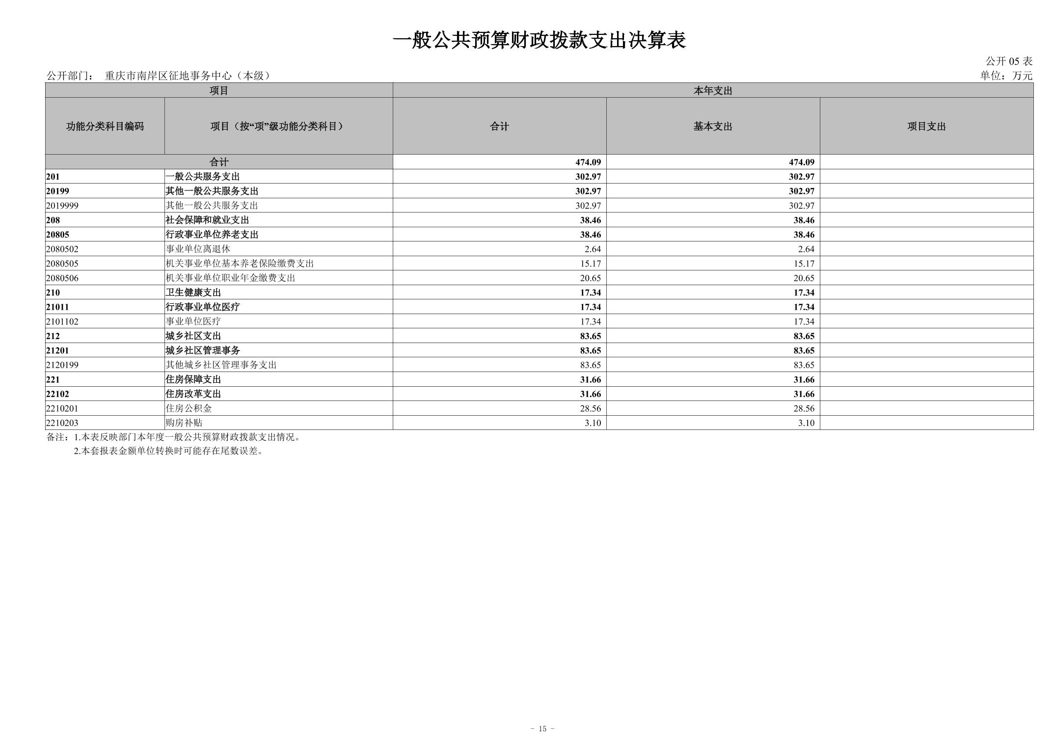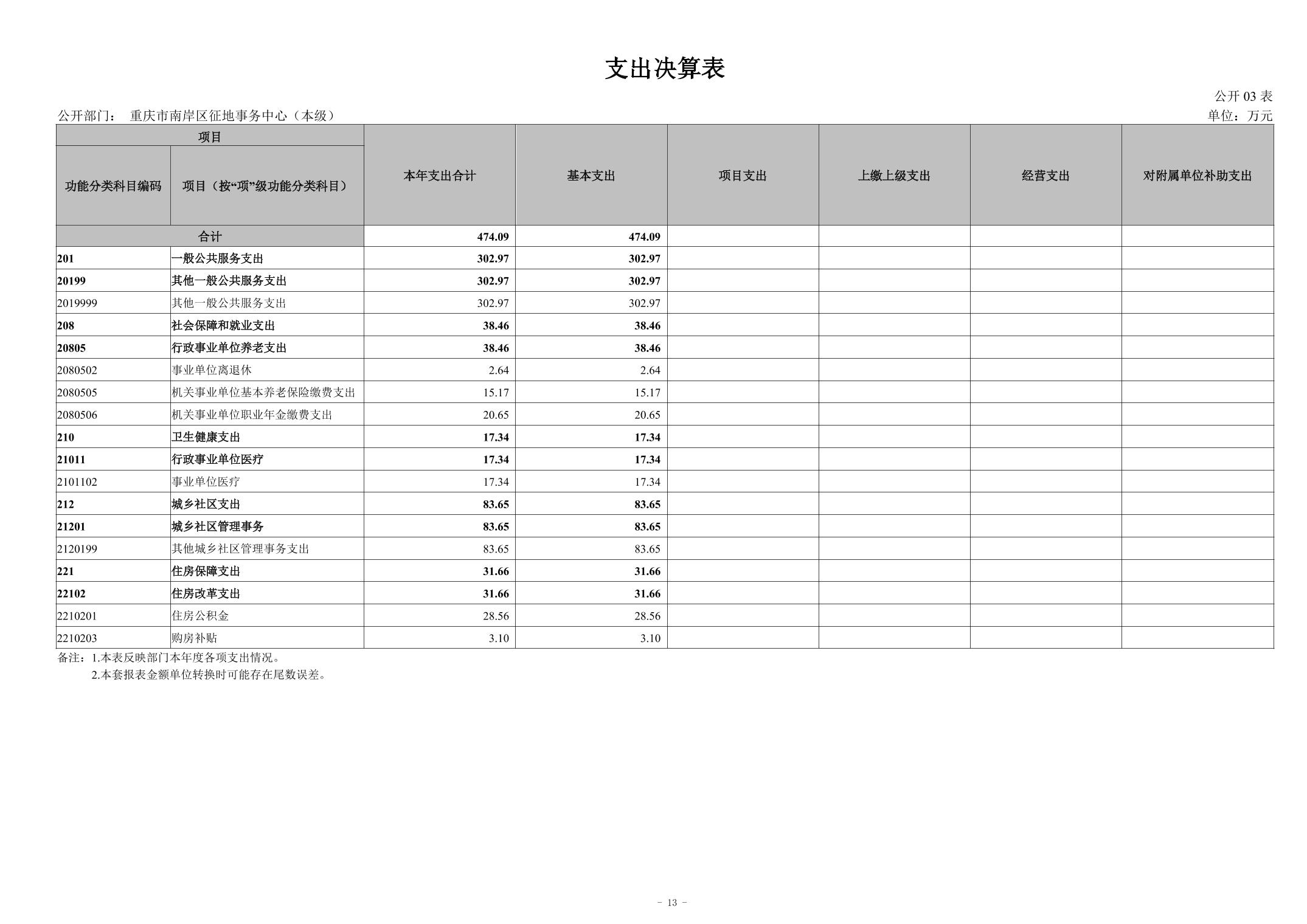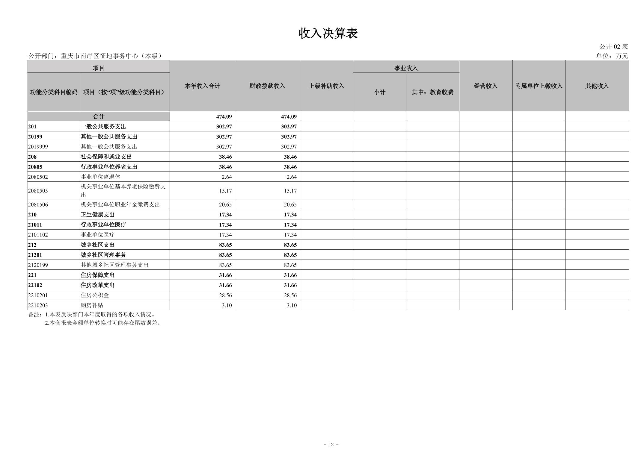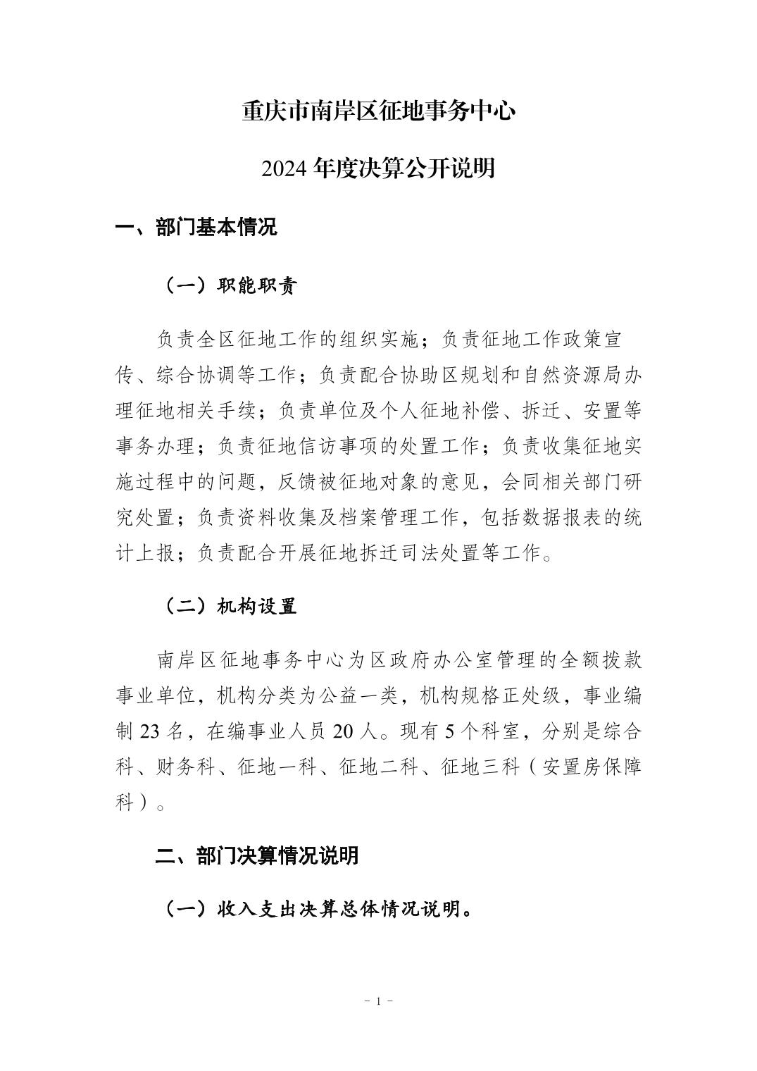 重庆市南岸区征地事务中心2024年度决算公开说明