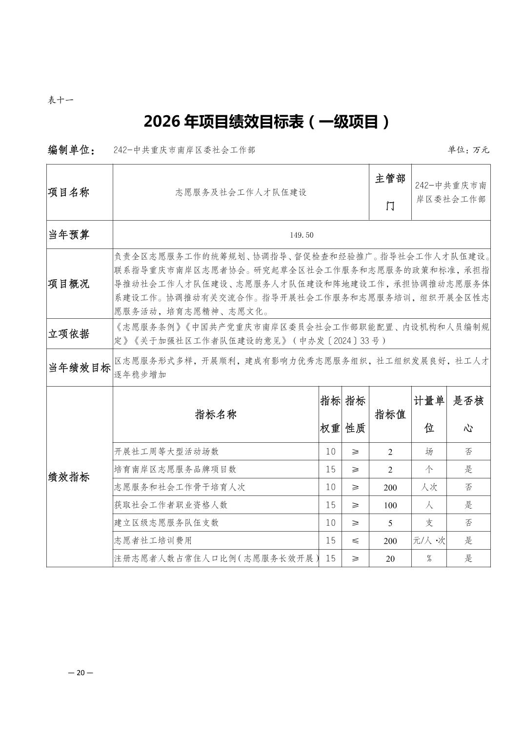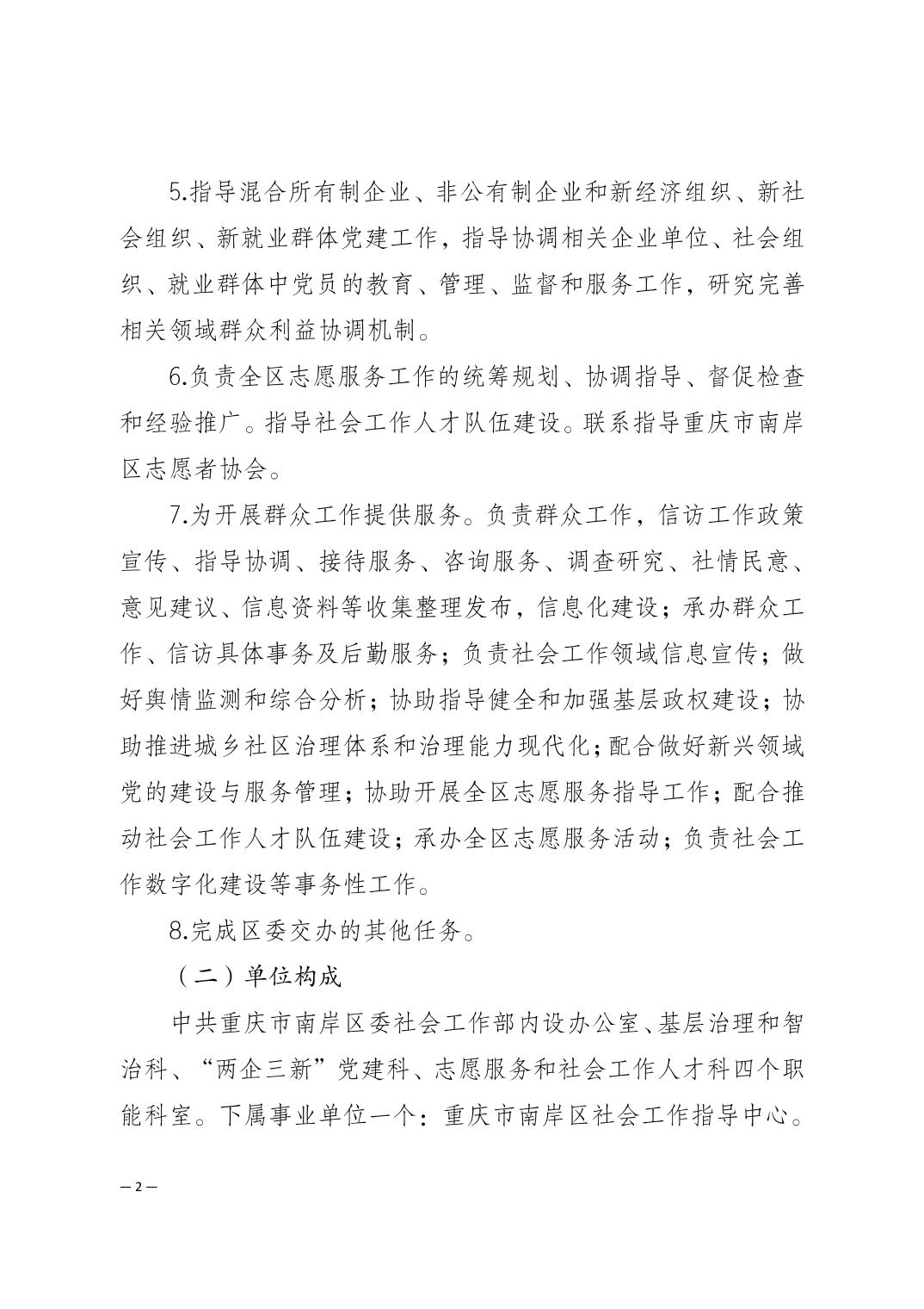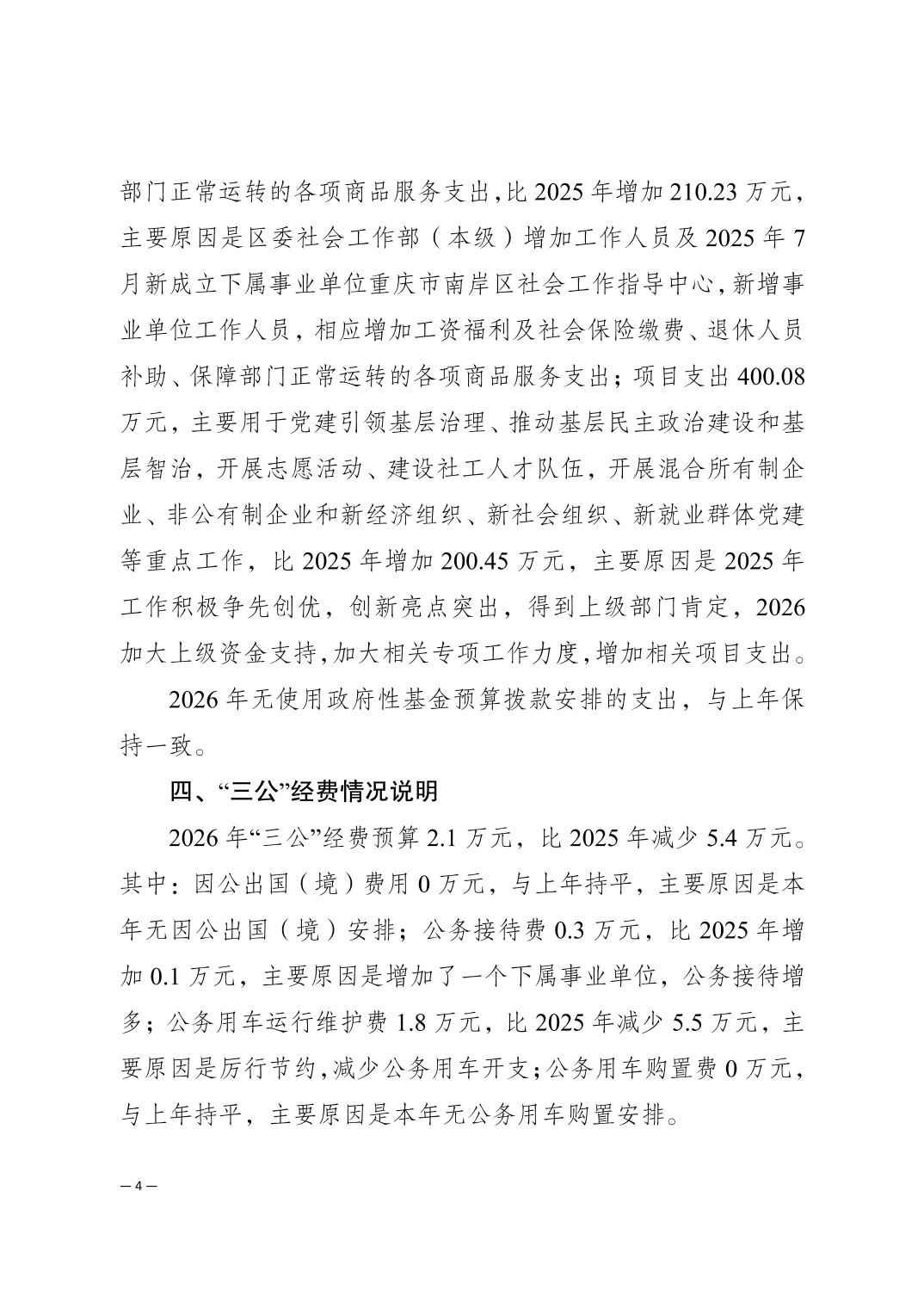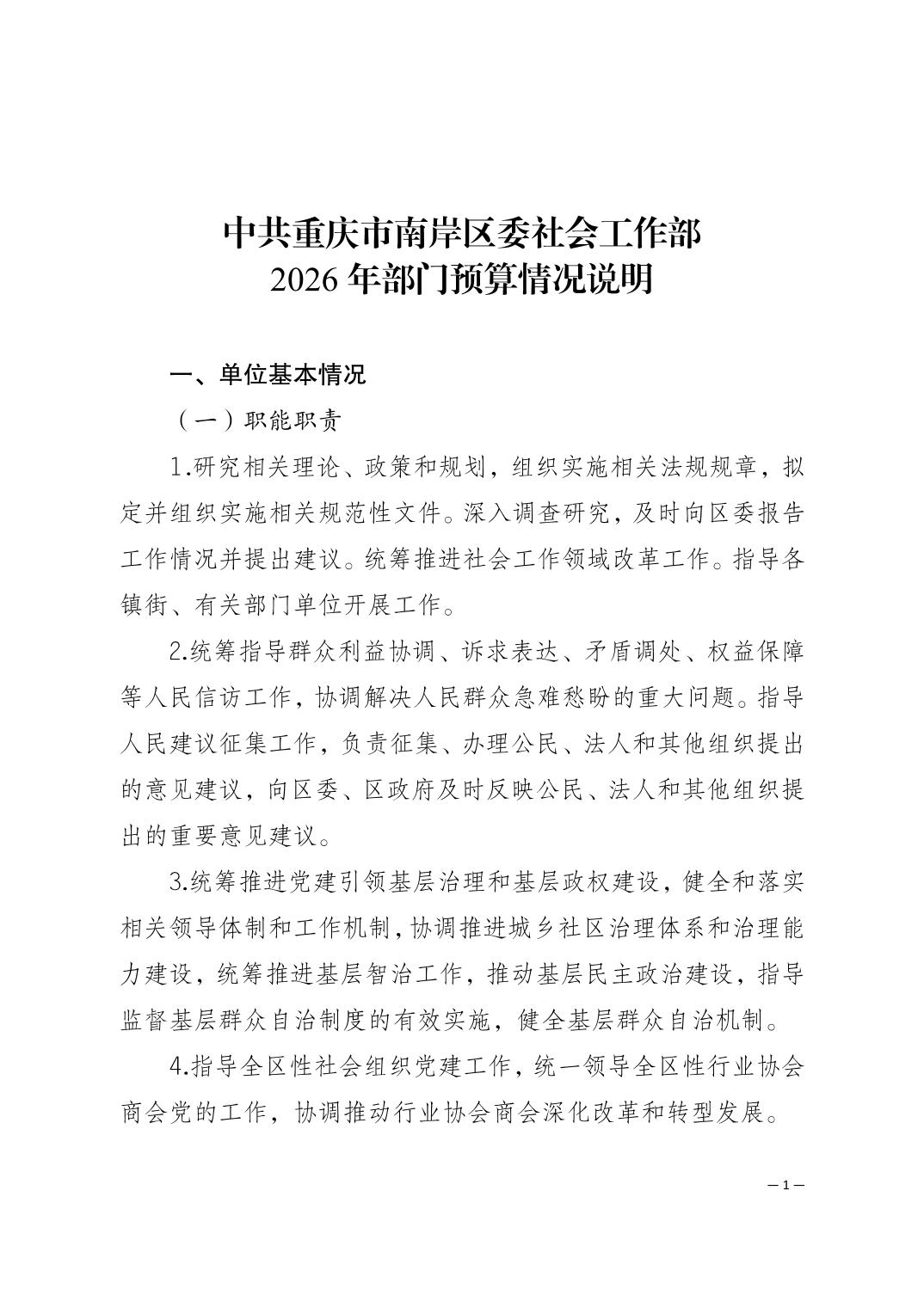 中共重庆市南岸区委社会工作部2026年部门预算情况说明