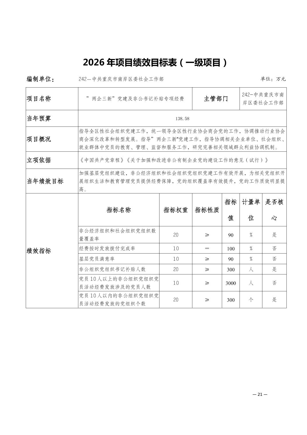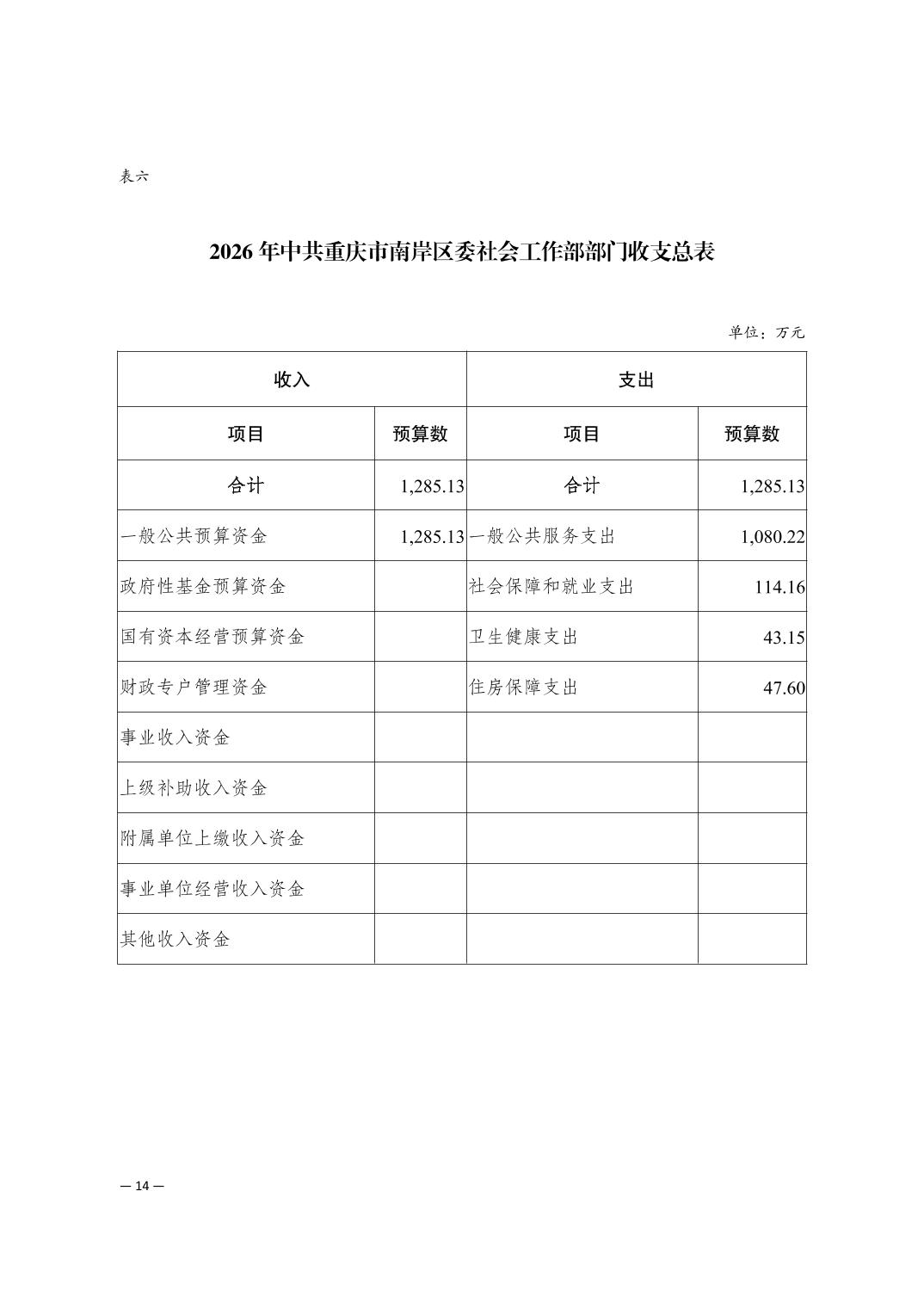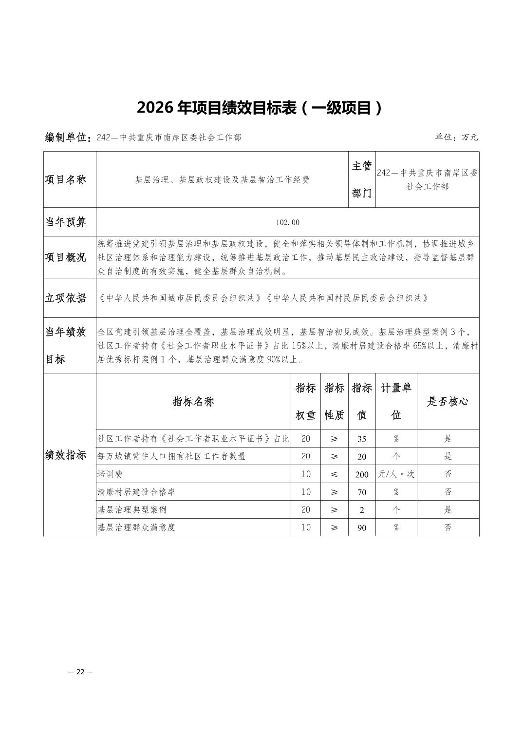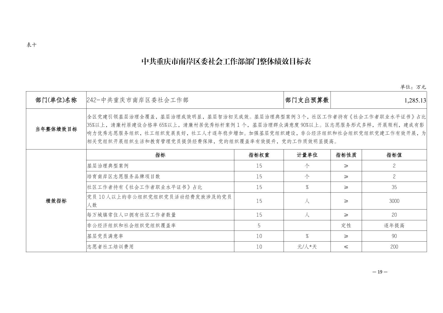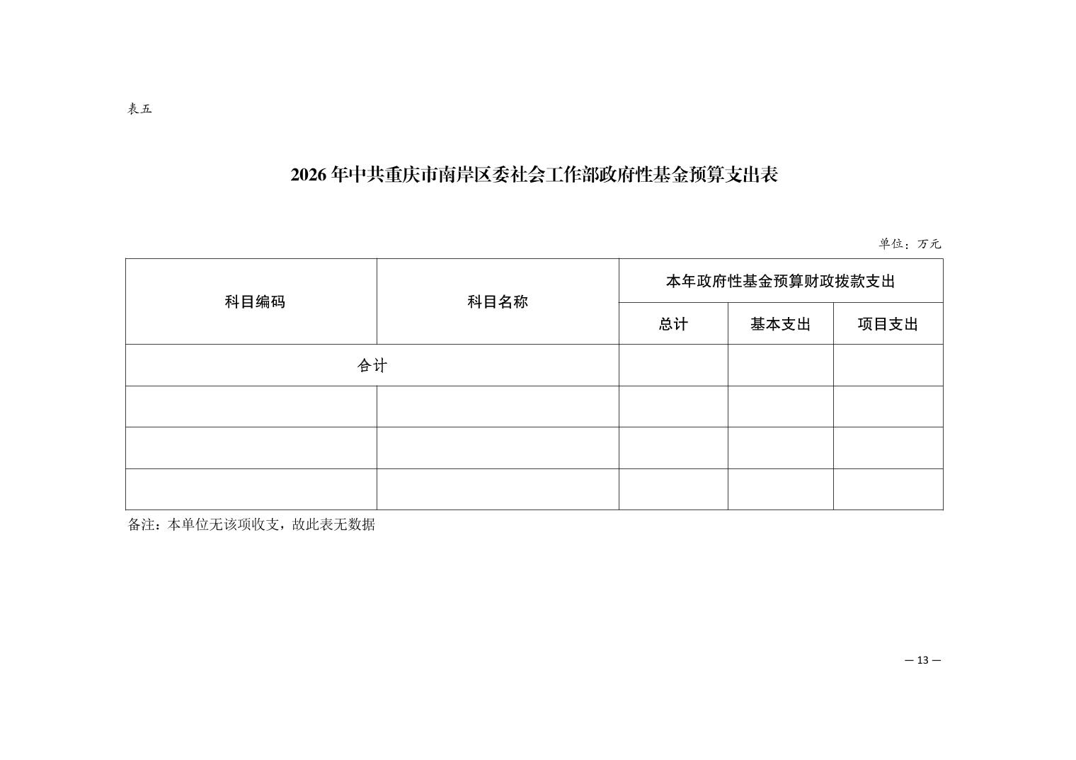 中共重庆市南岸区委社会工作部2026年部门预算情况说明