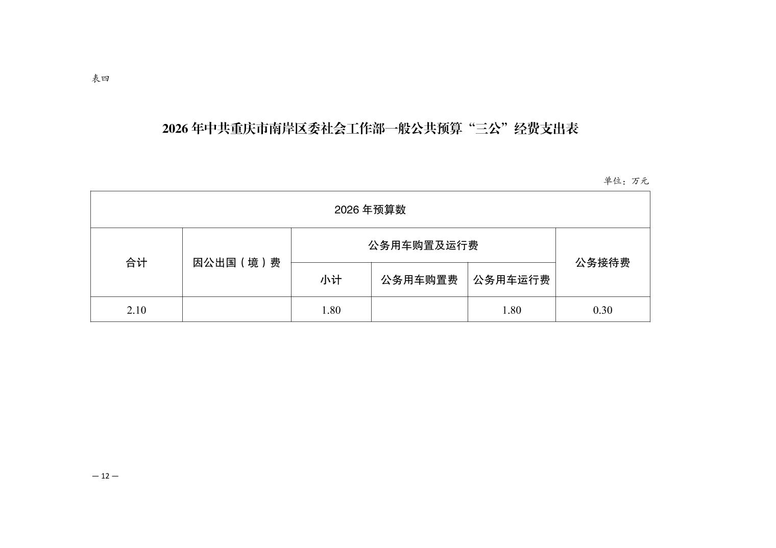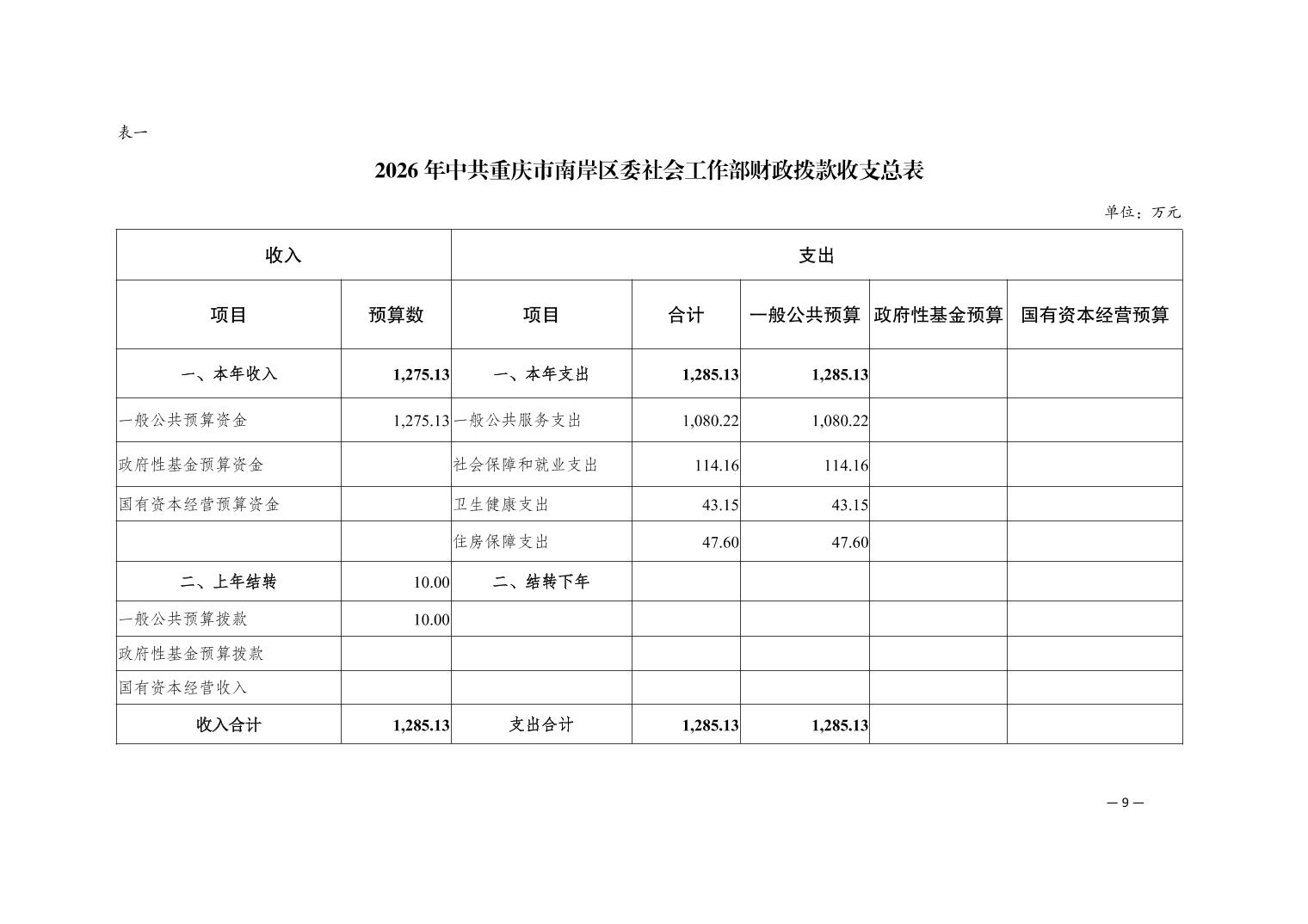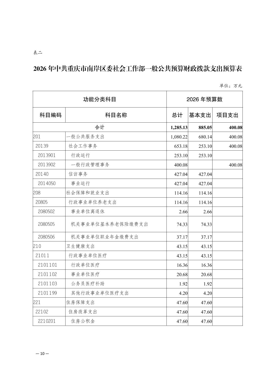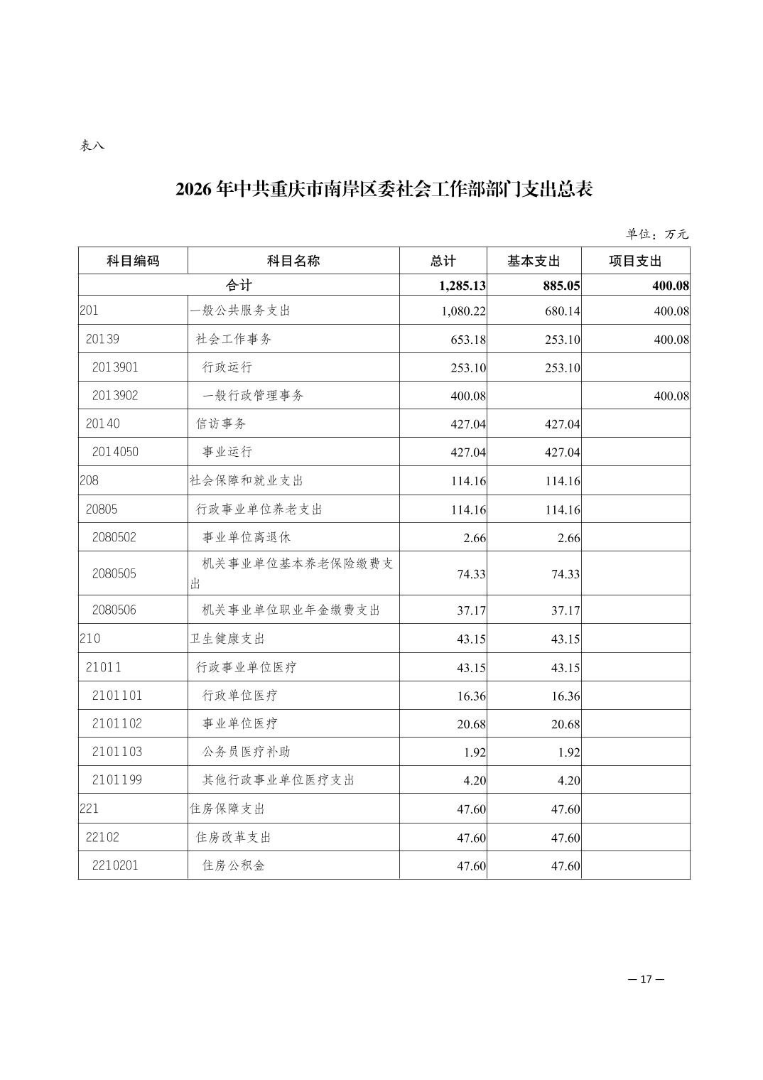 中共重庆市南岸区委社会工作部2026年部门预算情况说明