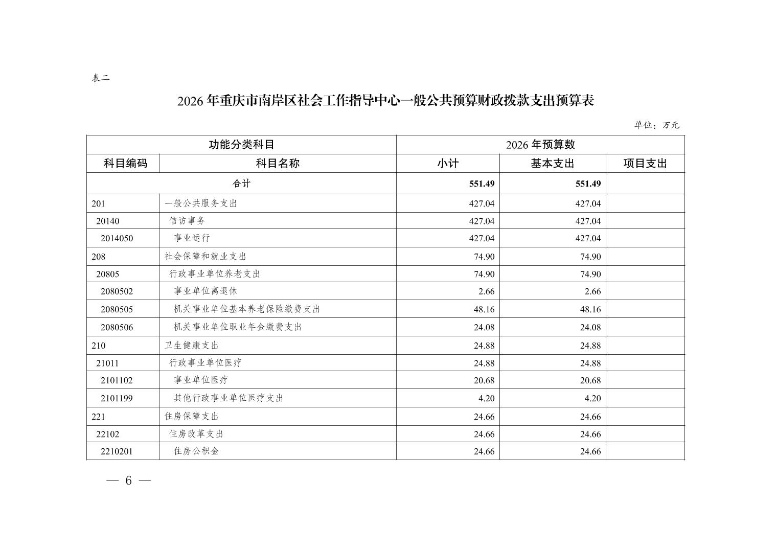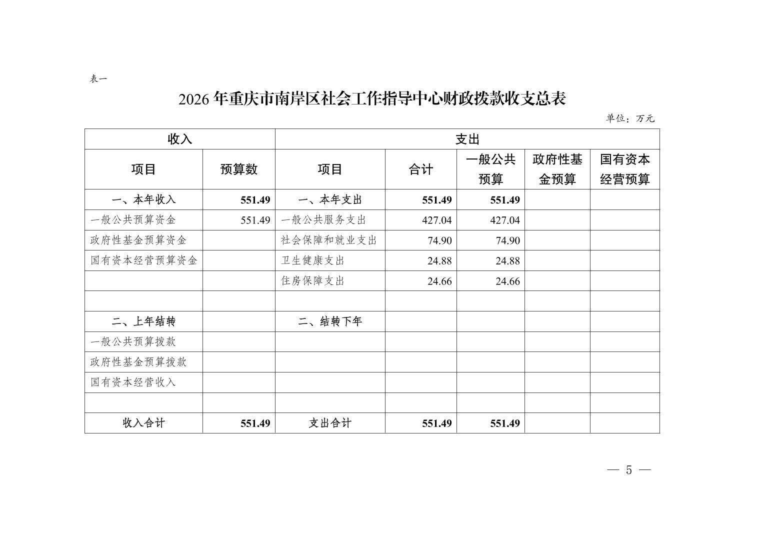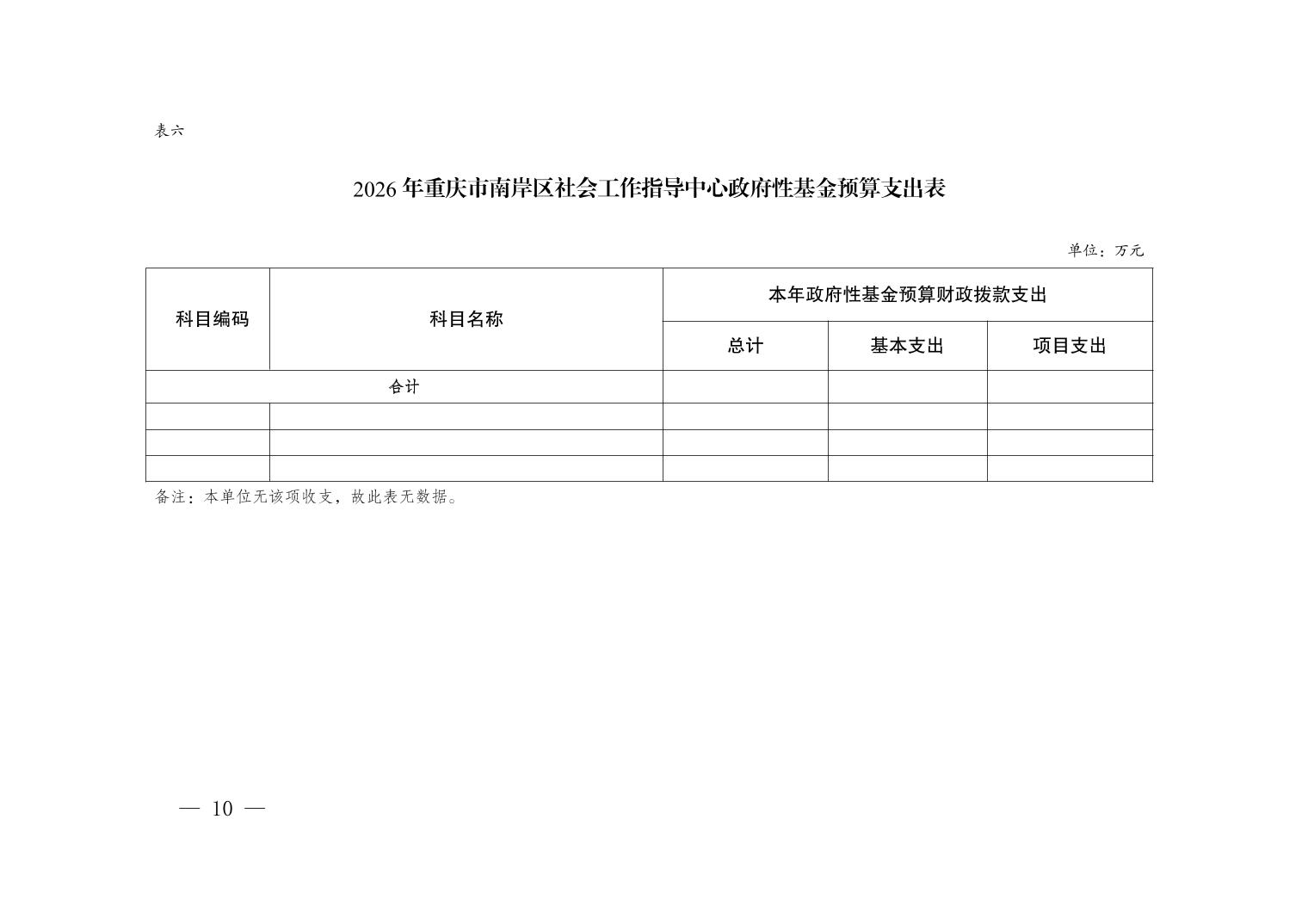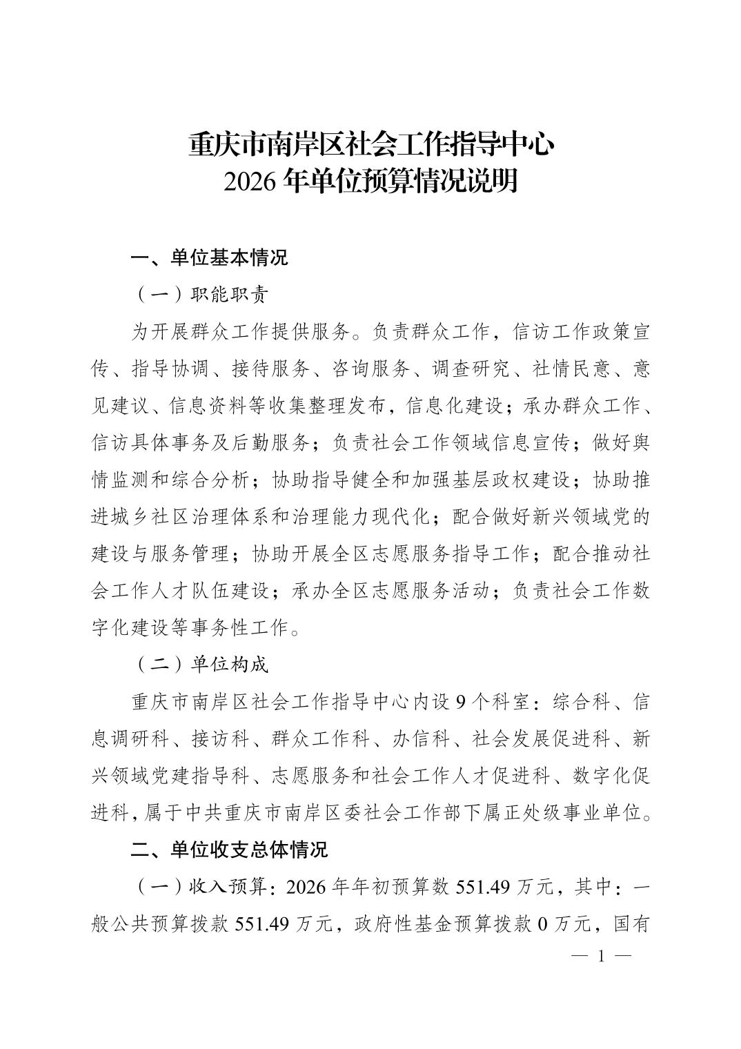重庆市南岸区社会工作指导中心2026年单位预算情况说明