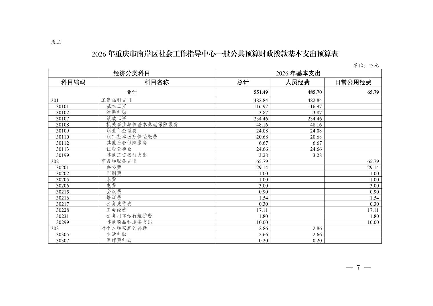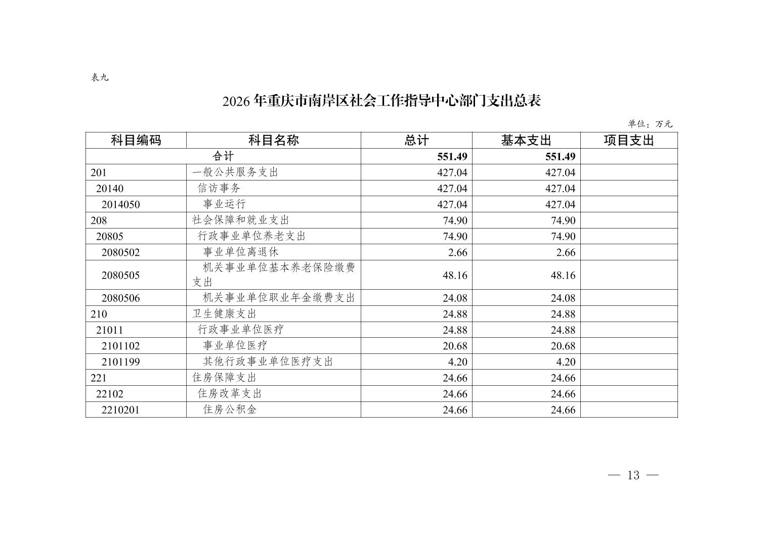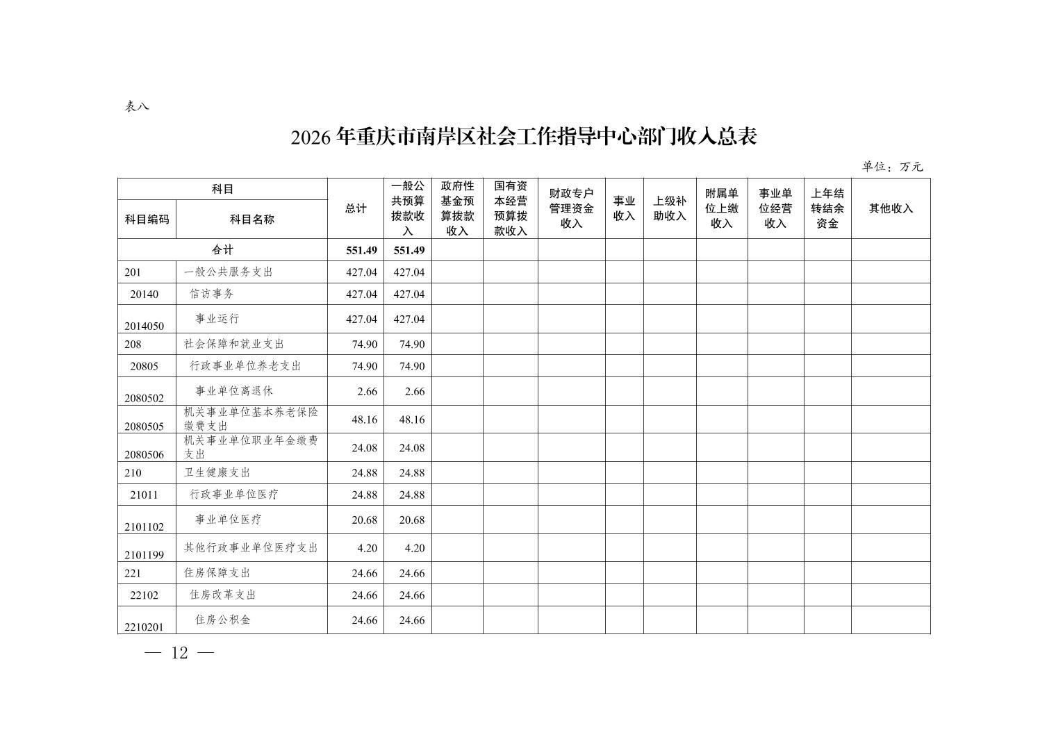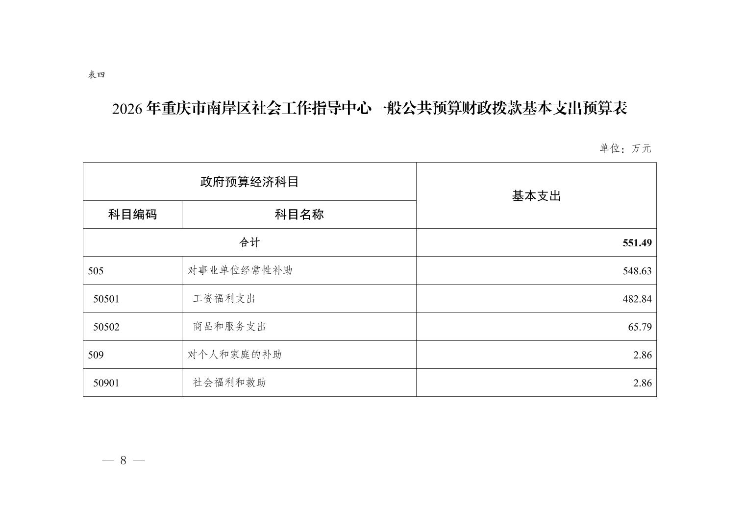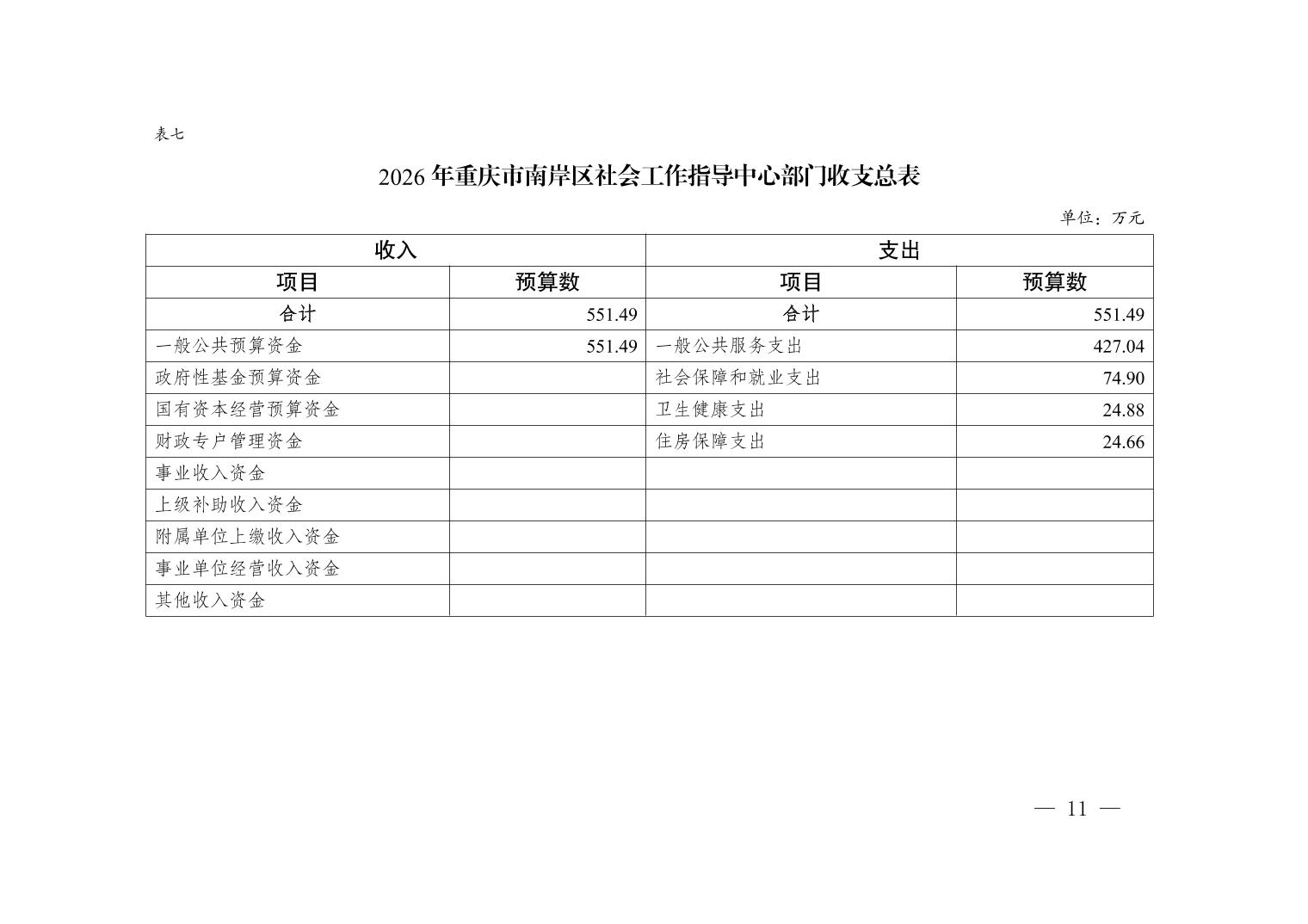 重庆市南岸区社会工作指导中心2026年单位预算情况说明