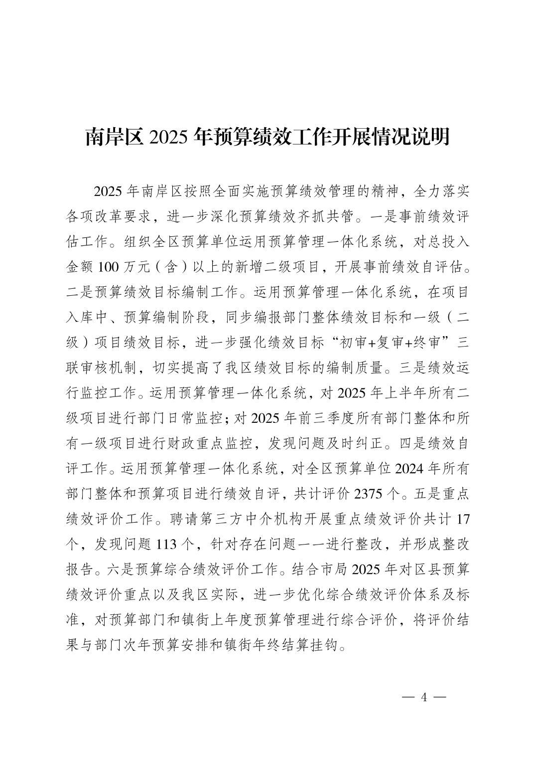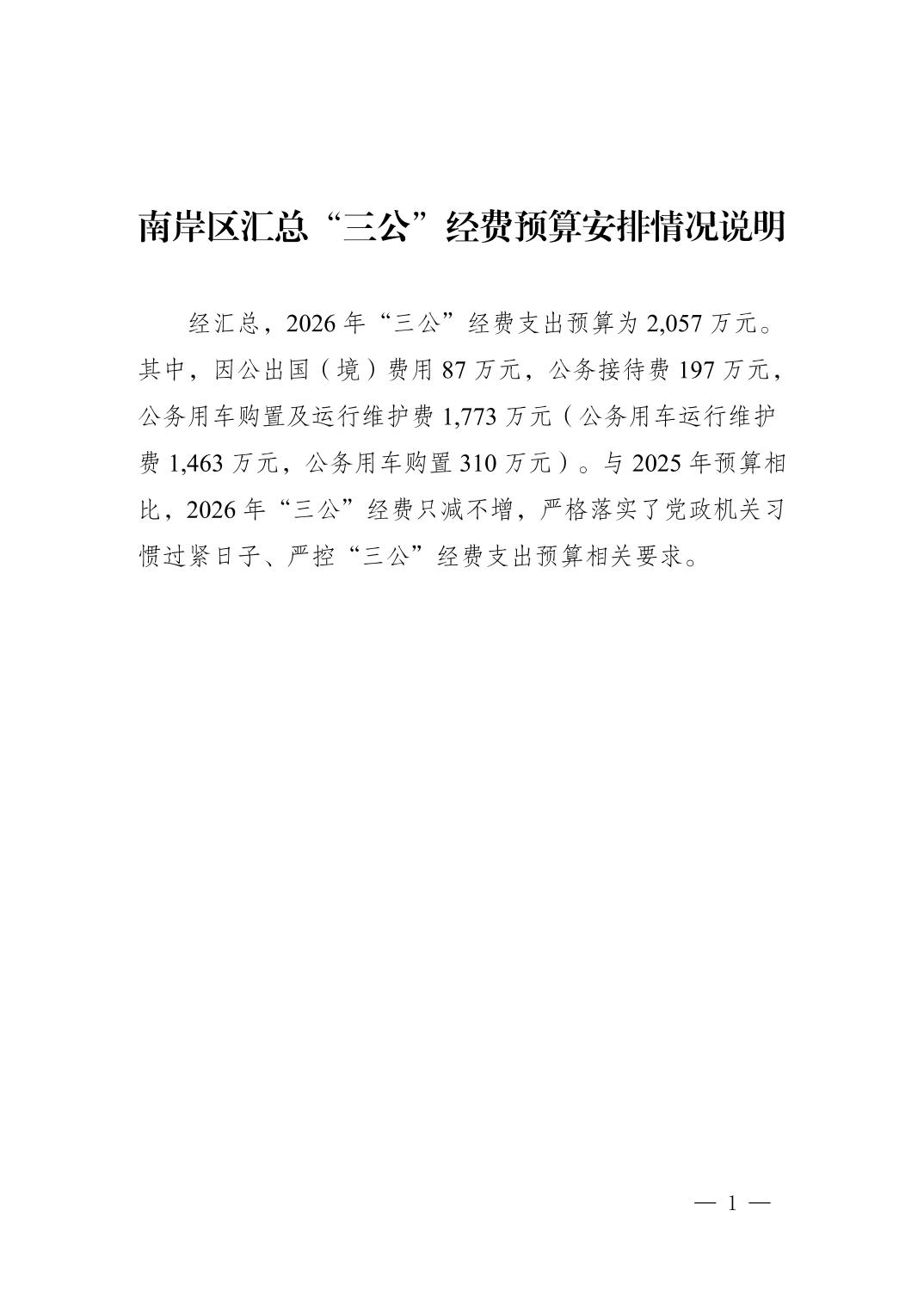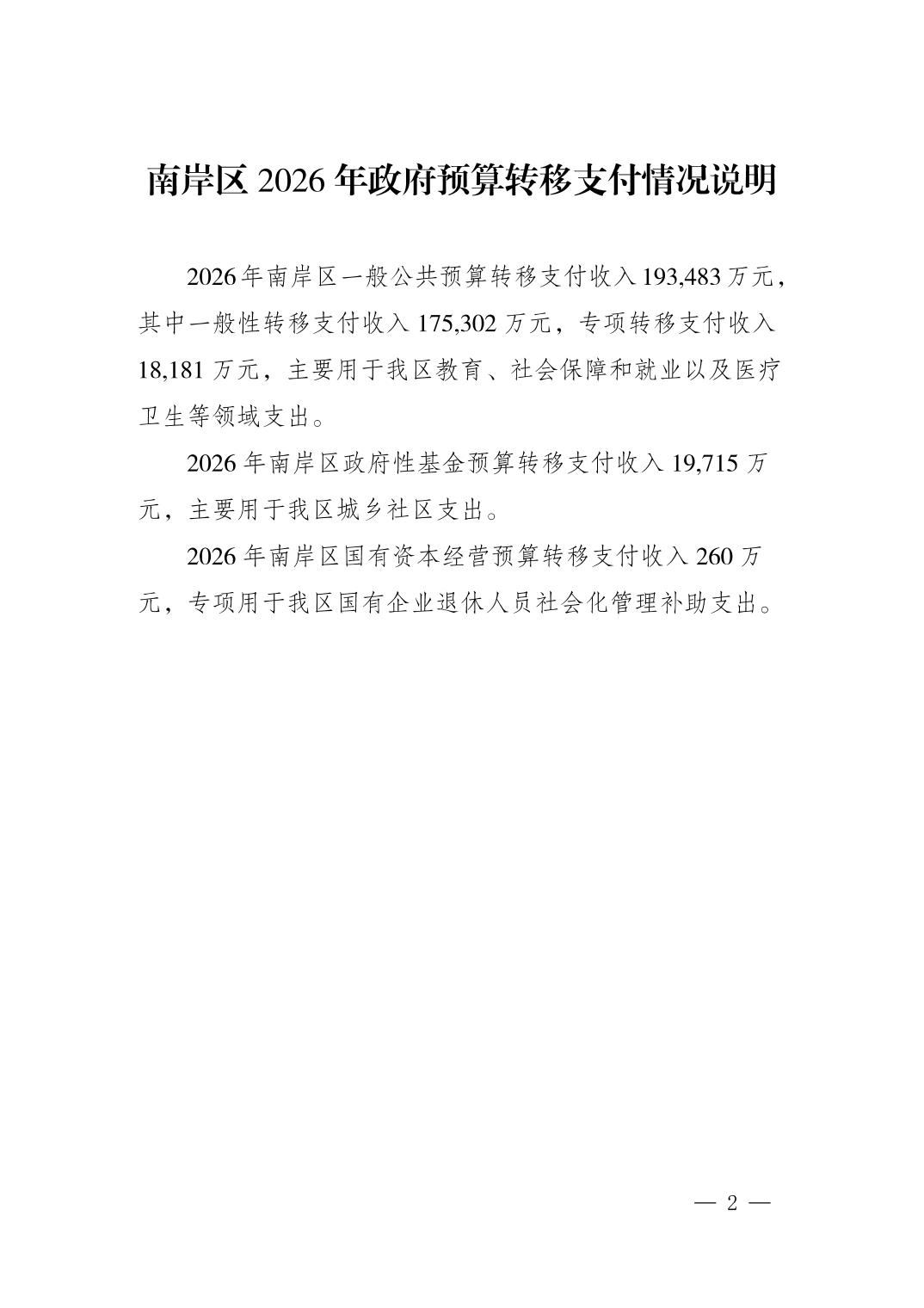 2026年南岸区政府预算相关说明