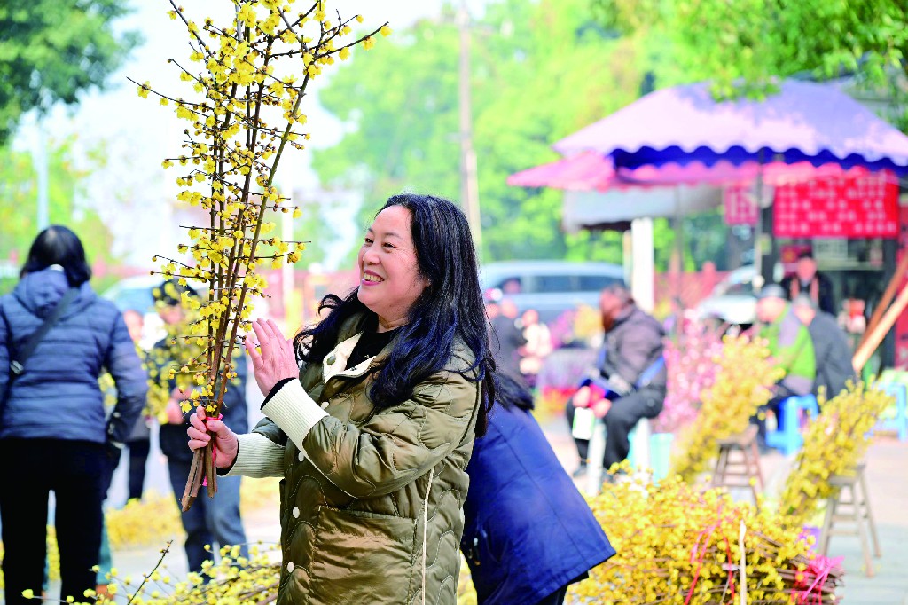 1月15日,南山蜡梅迎来盛放期,清冽香气浸满山道。在南山街道边,市民们穿梭在花摊前,俯身挑选缀满金黄花朵的梅枝。摊主熟练捆扎,笑语与花香交织,为岁末增添融融暖意。怀抱蜡梅的市民步履轻快,将一缕冬日幽香与新春期盼一同带回家中。