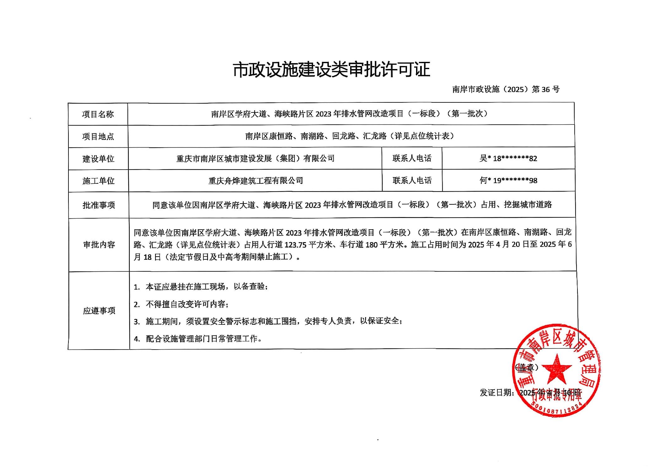 - 南岸市政设施(2025)第36号