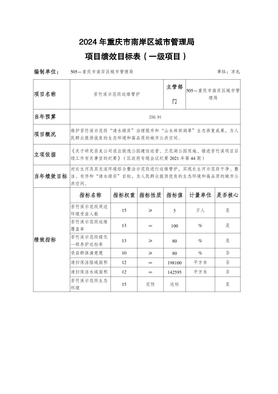 重庆市南岸区城市管理局2024年部门预算情况说明