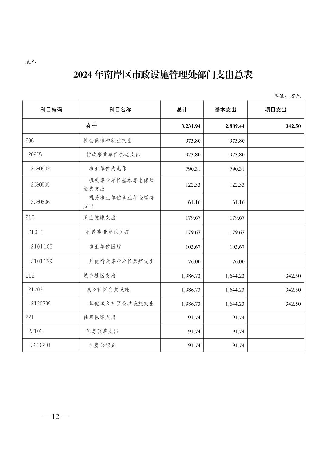 重庆市南岸区市政设施管理处2024年单位预算情况说明