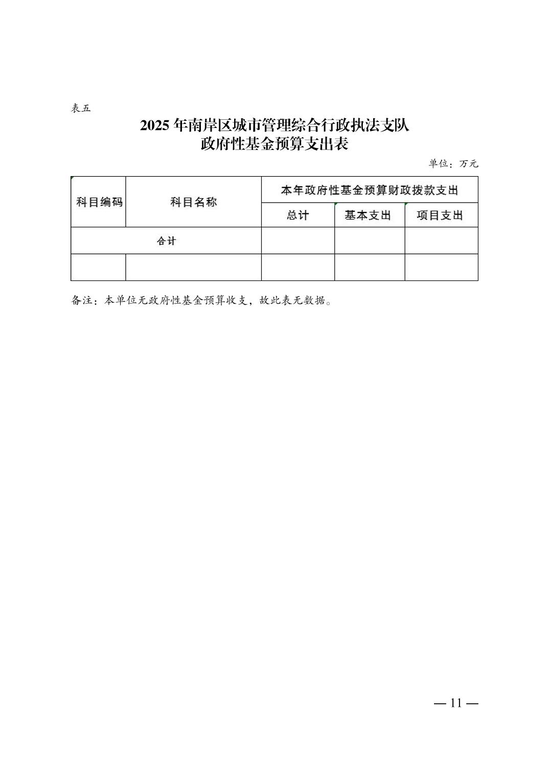 重庆市南岸区城市管理综合行政执法支队2025年单位预算情况说明