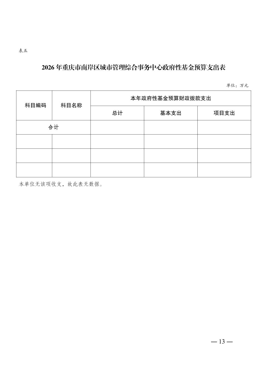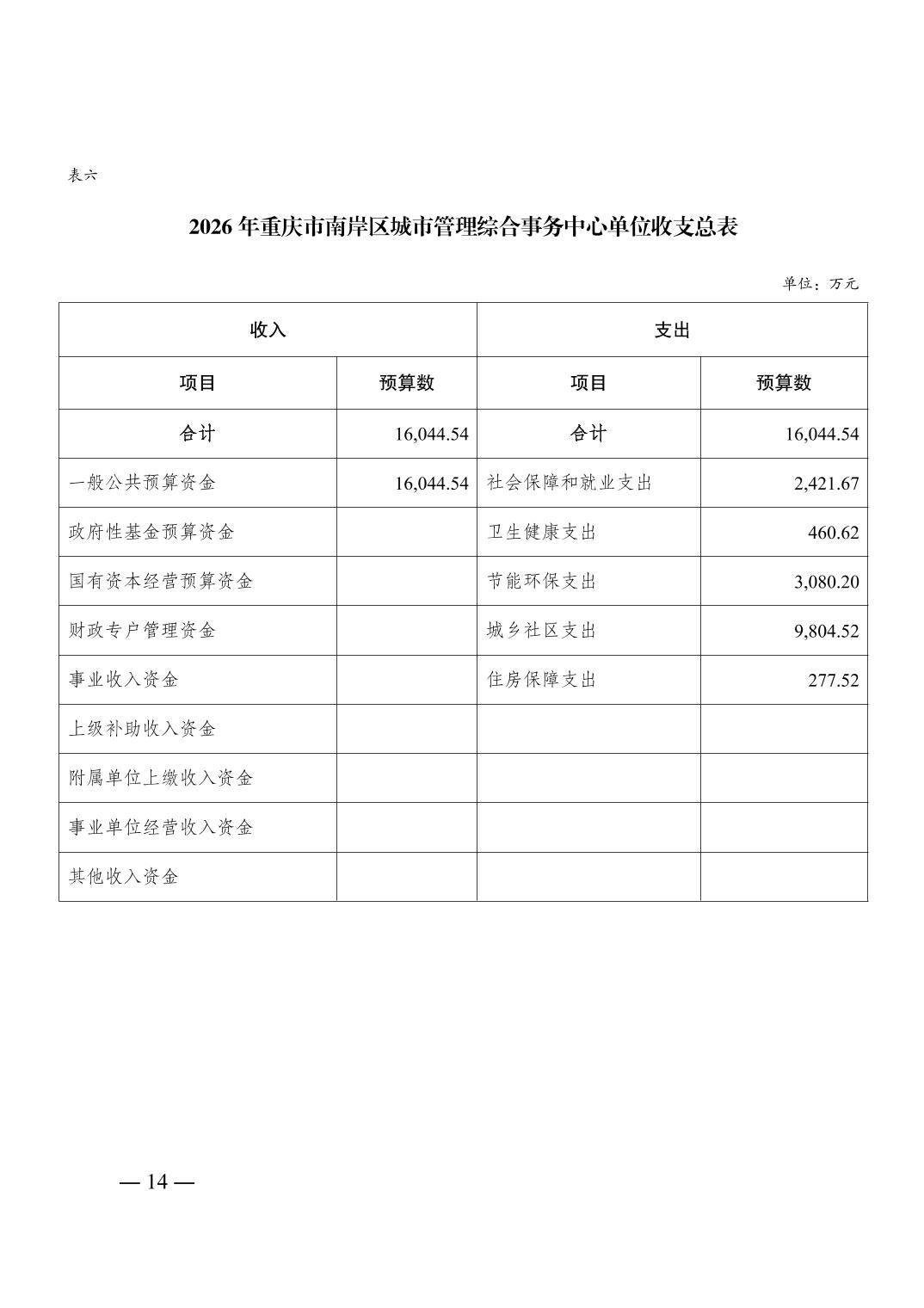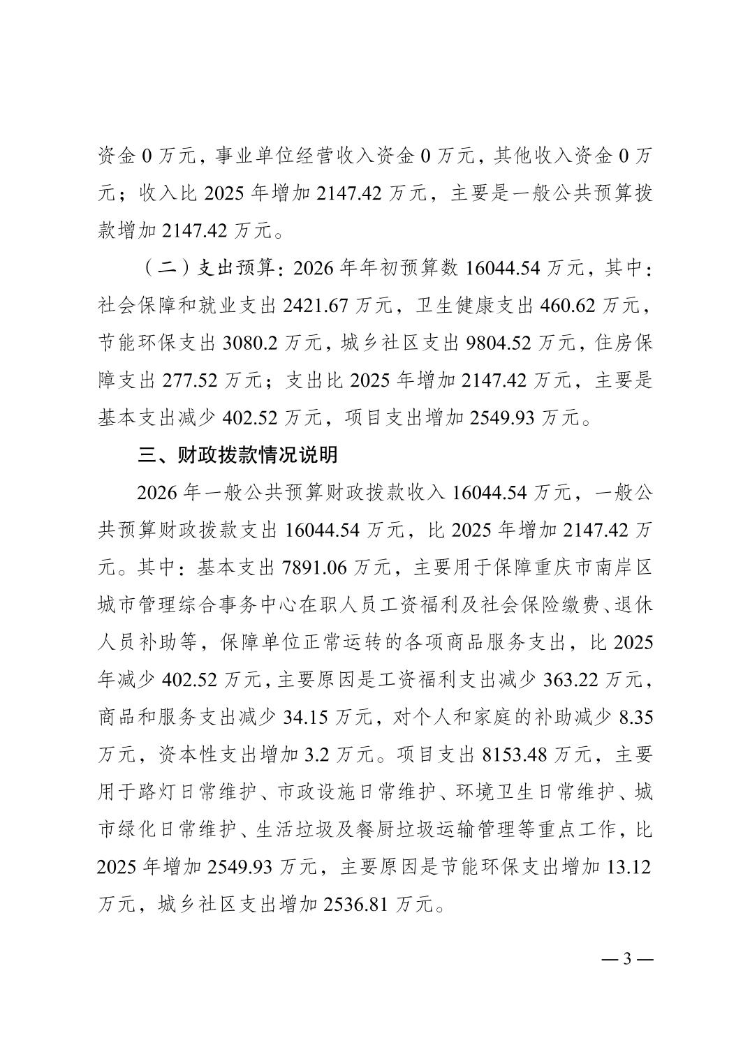 重庆市南岸区城市管理综合事务中心2026年单位预算情况说明