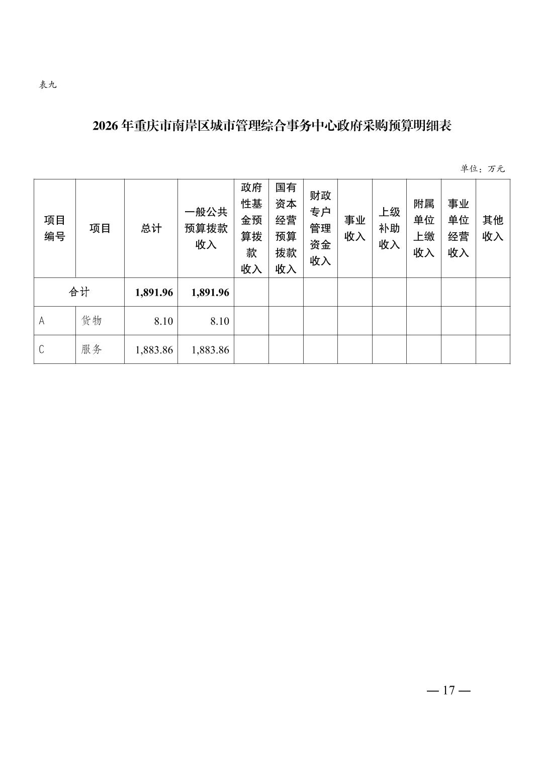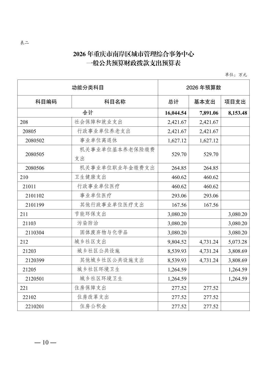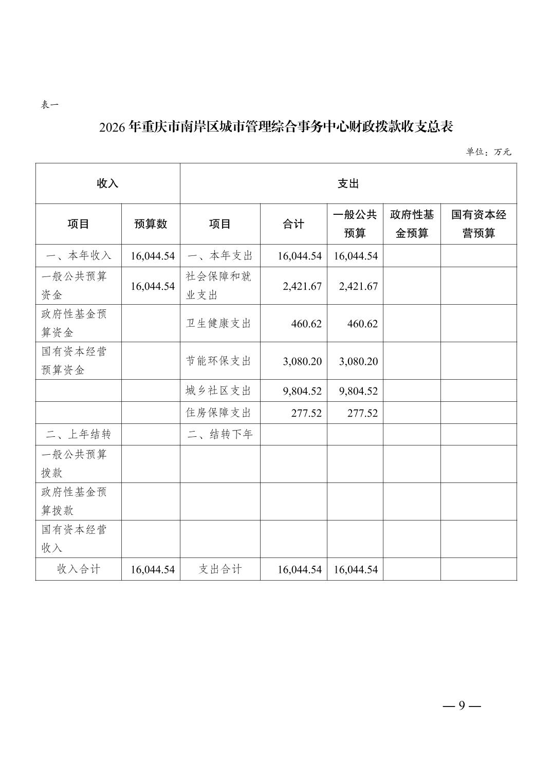 重庆市南岸区城市管理综合事务中心2026年单位预算情况说明