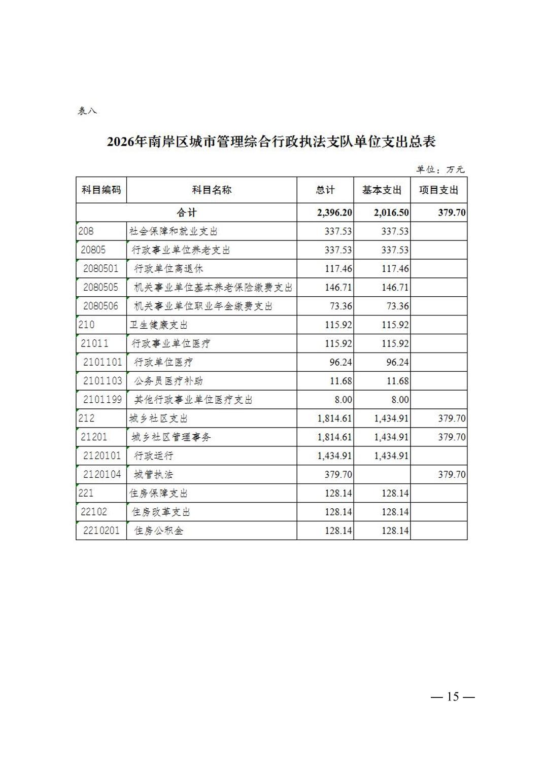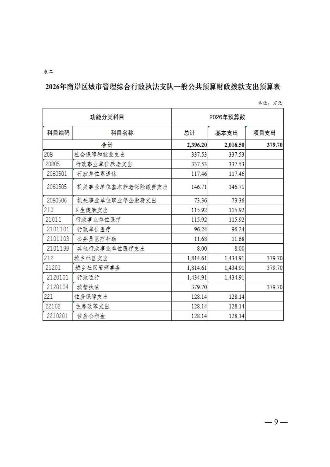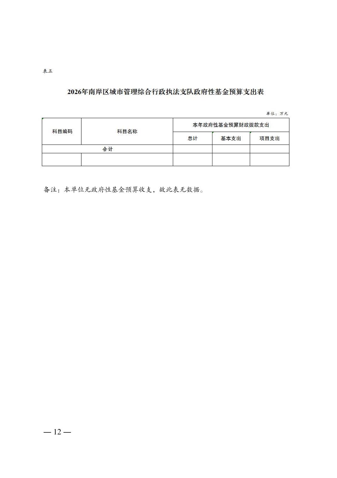重庆市南岸区城市管理综合行政执法支队2026年单位预算情况说明