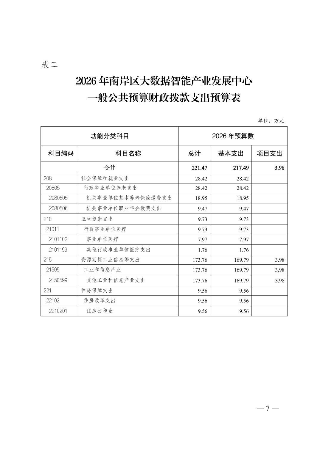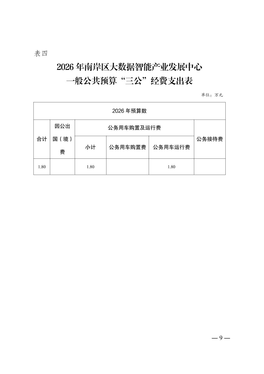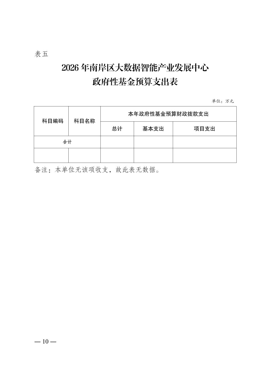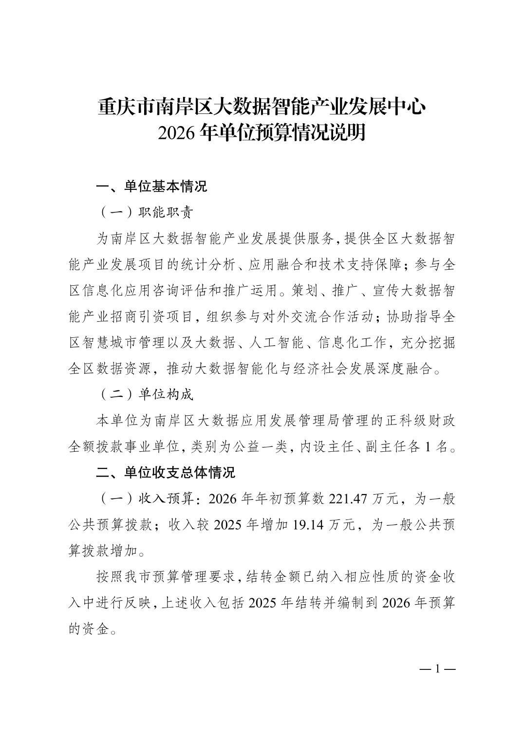 重庆市南岸区大数据智能产业发展中心2026年单位预算情况说明