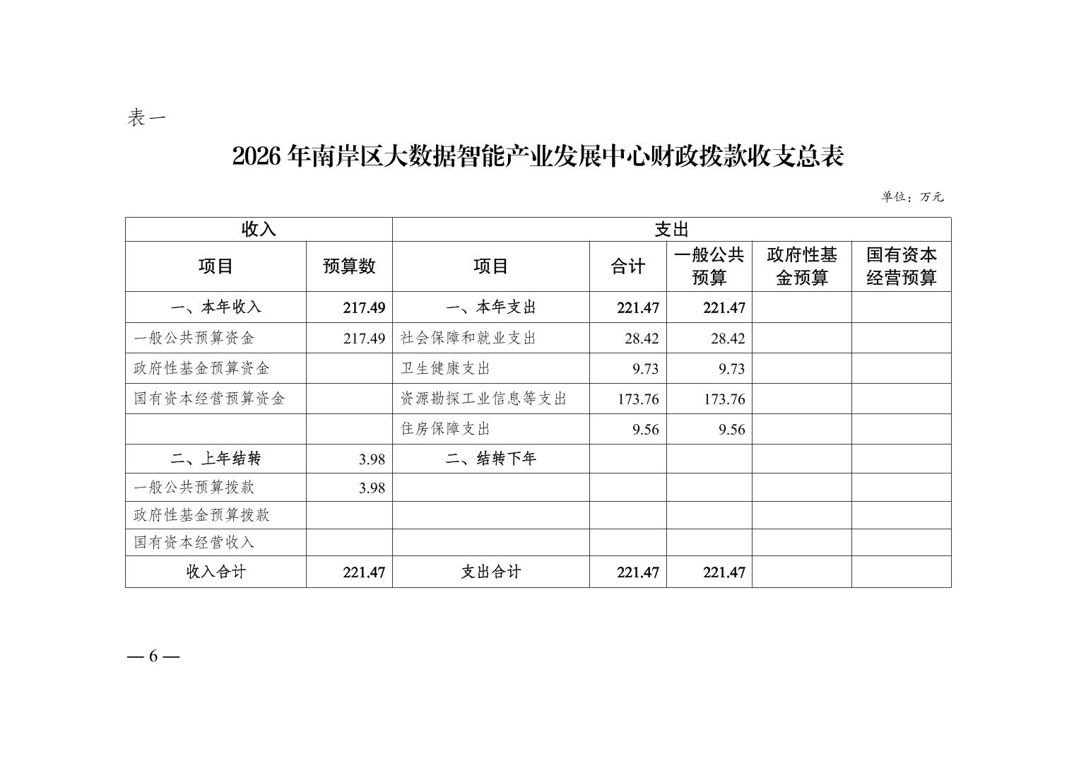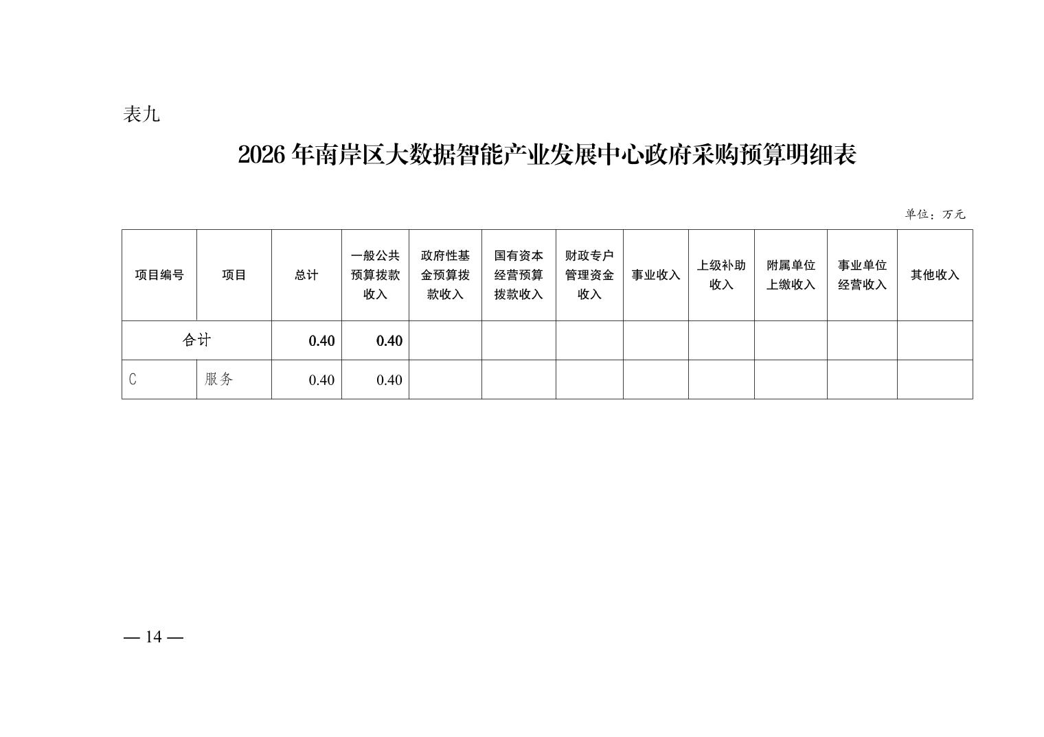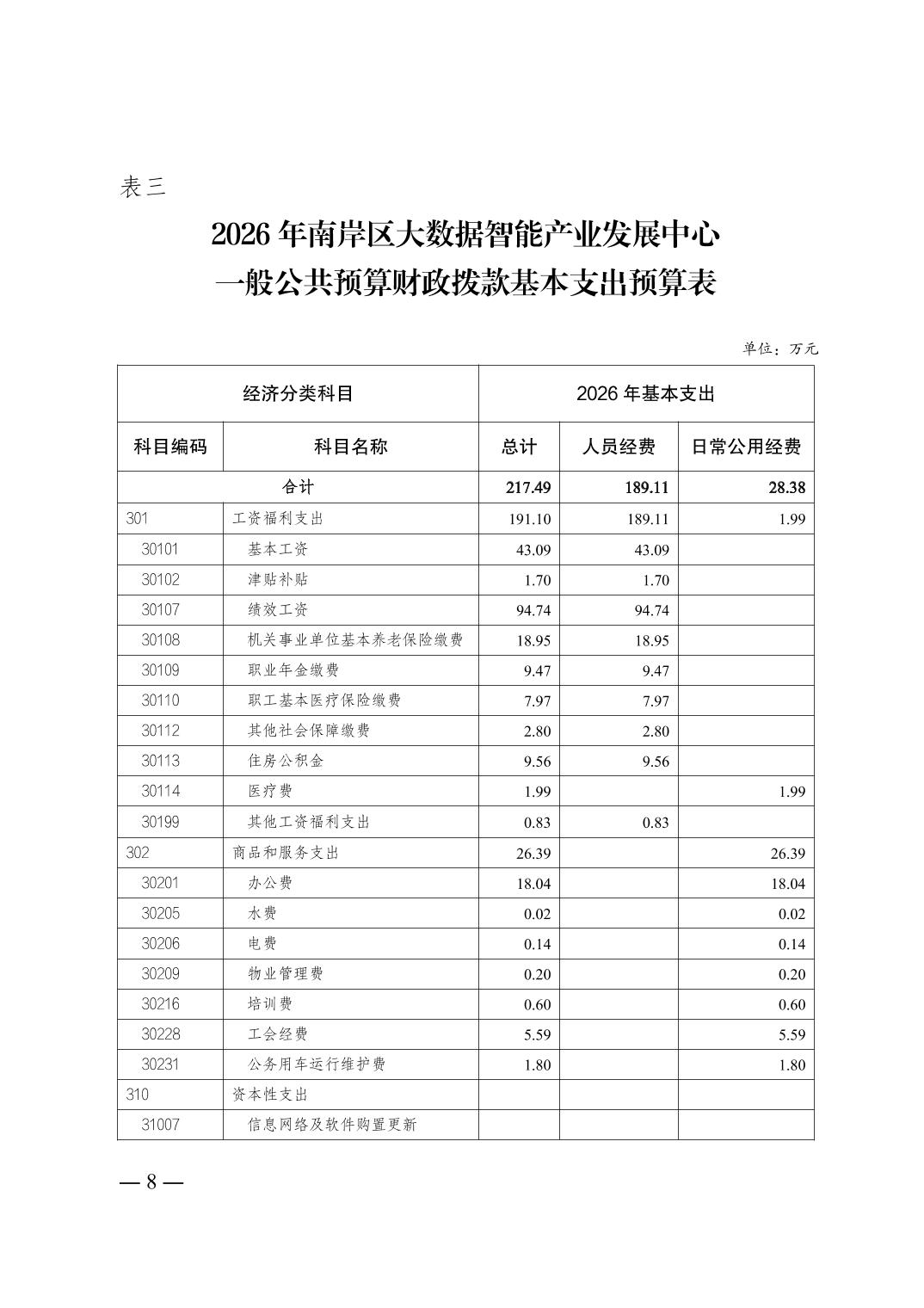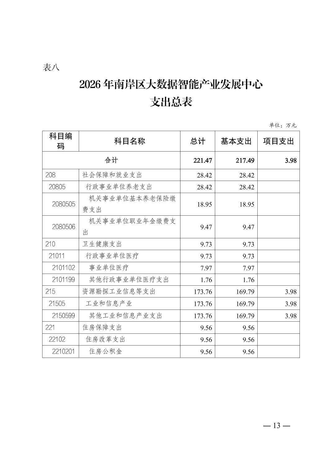 重庆市南岸区大数据智能产业发展中心2026年单位预算情况说明