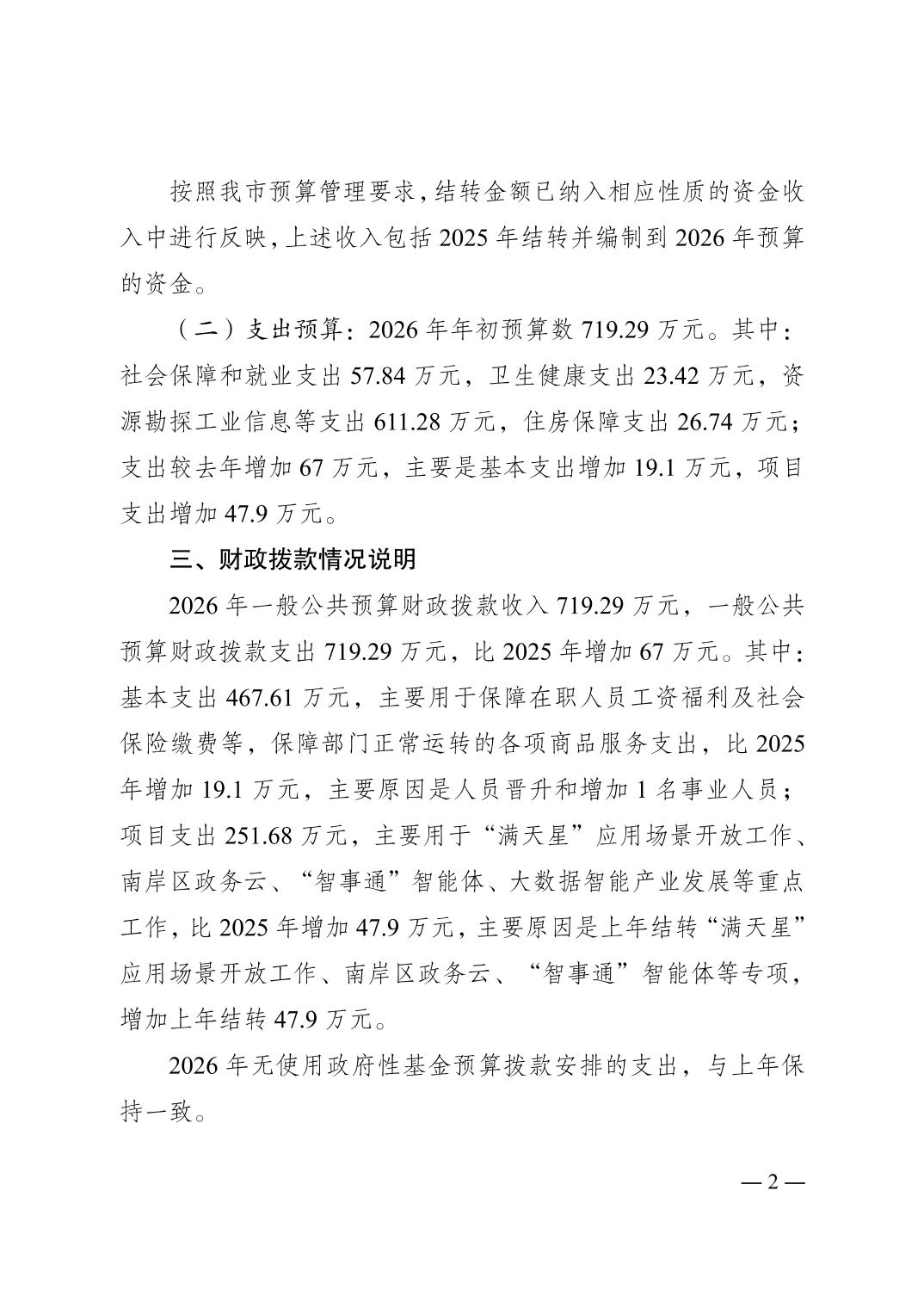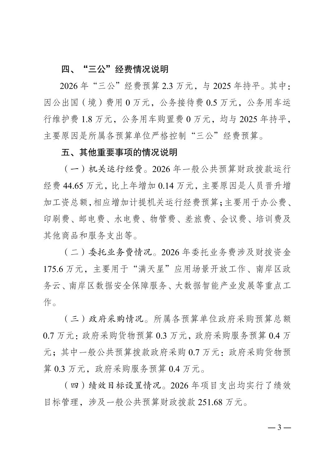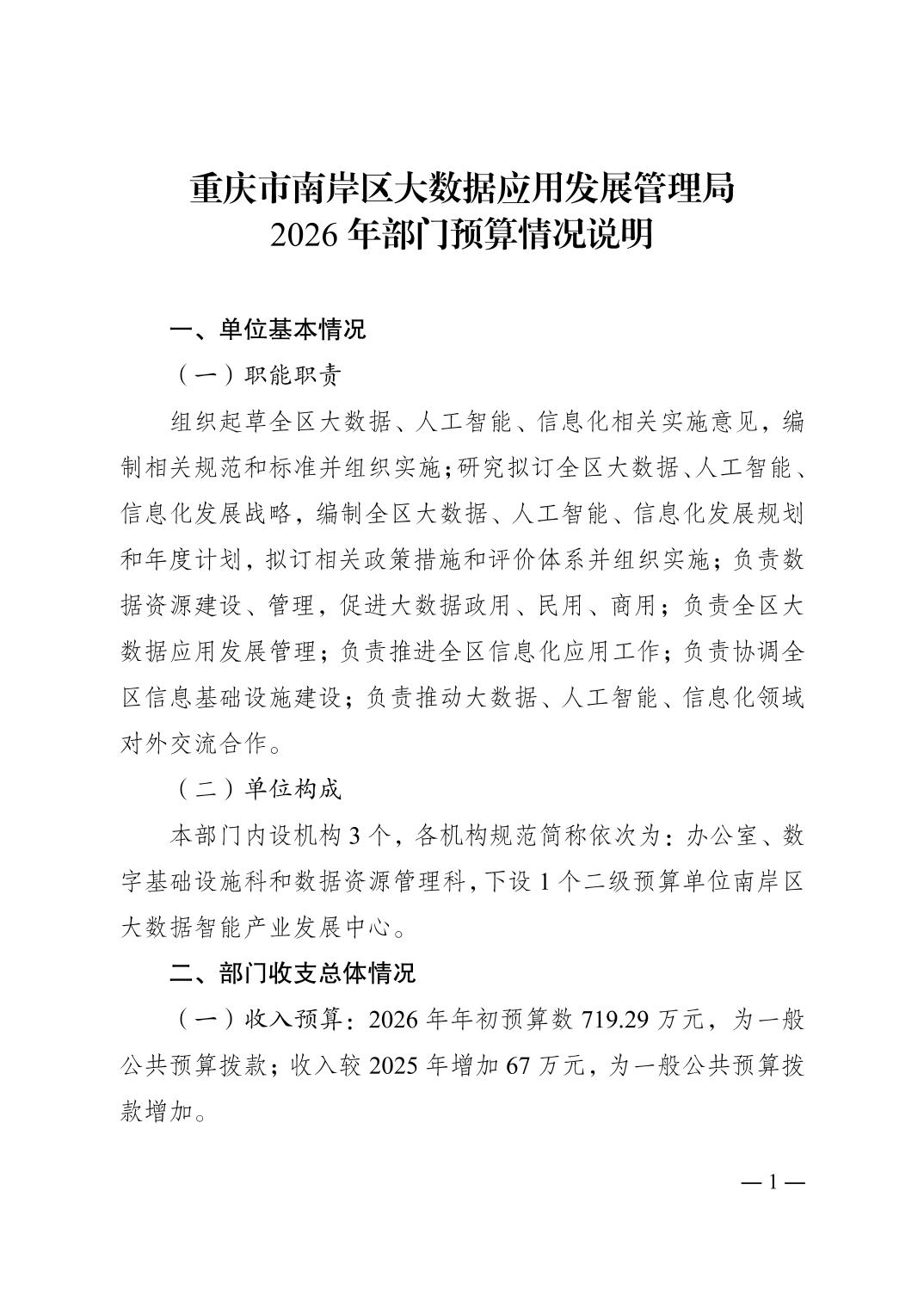 重庆市南岸区大数据应用发展管理局2026年部门预算情况说明