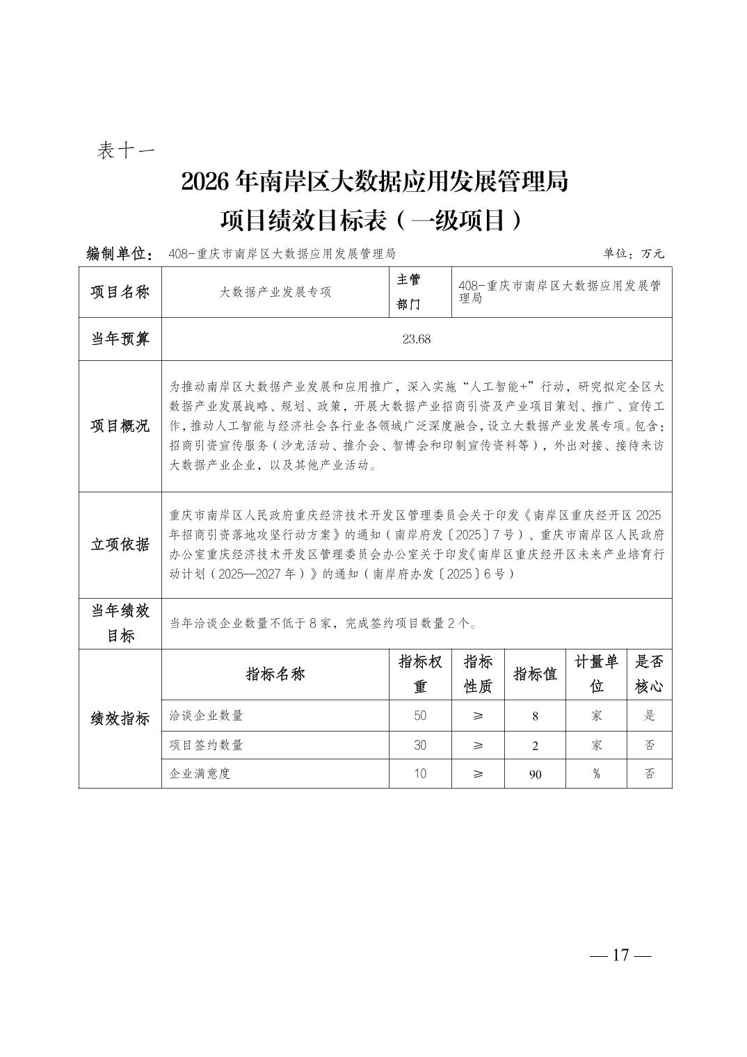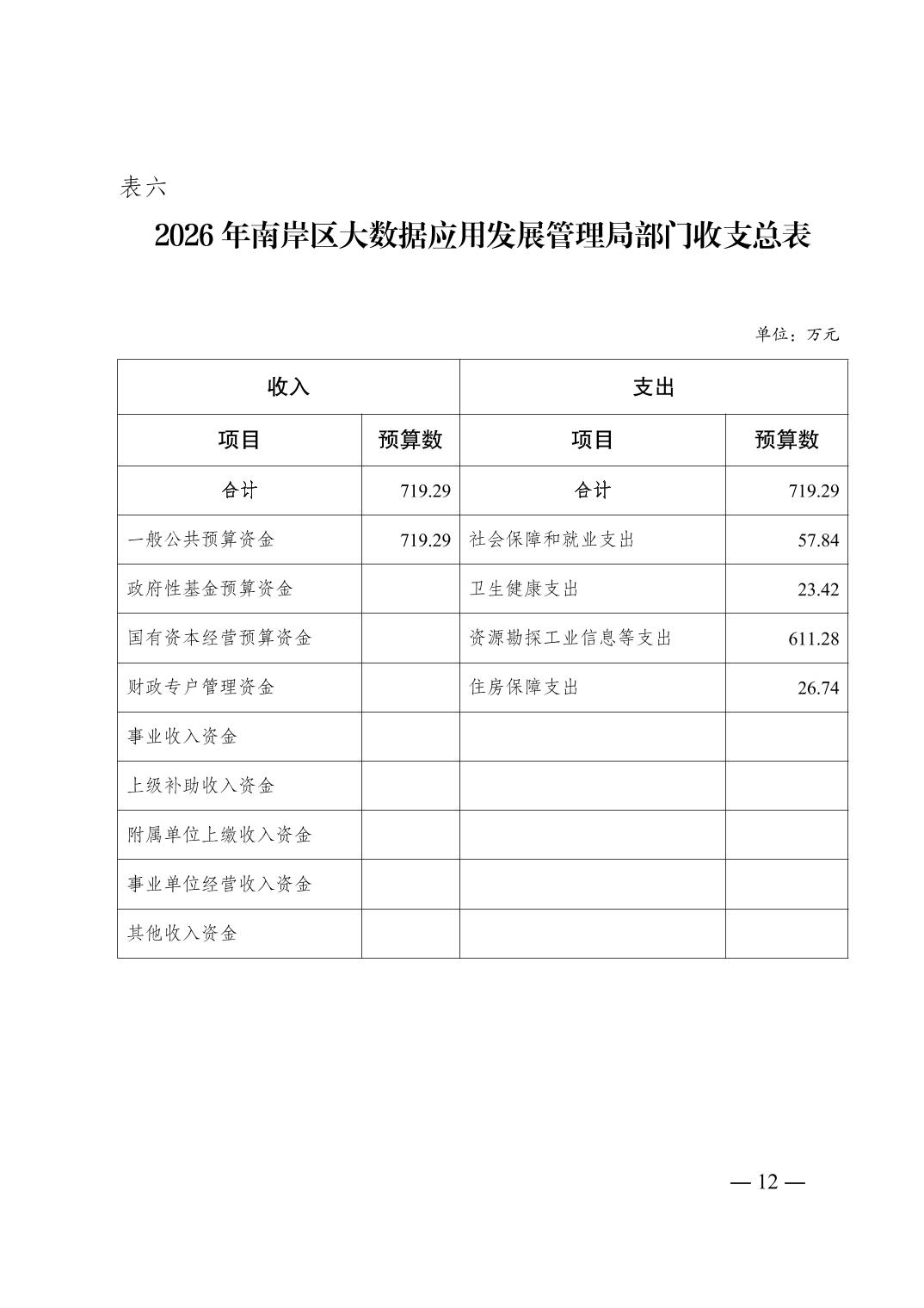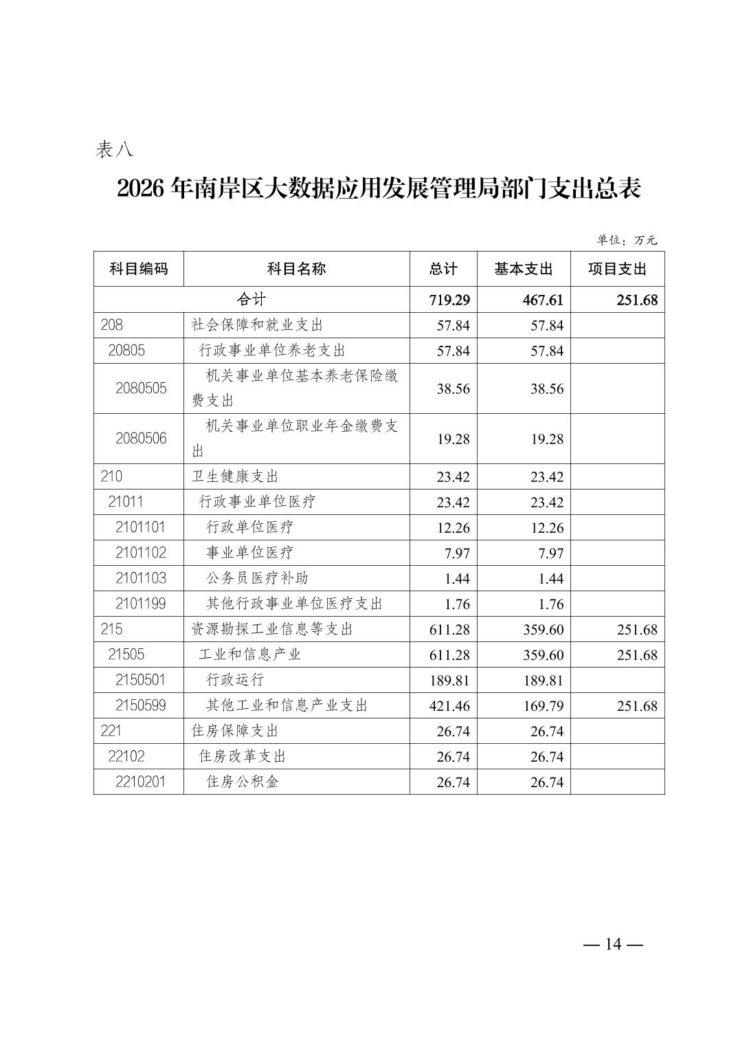 重庆市南岸区大数据应用发展管理局2026年部门预算情况说明