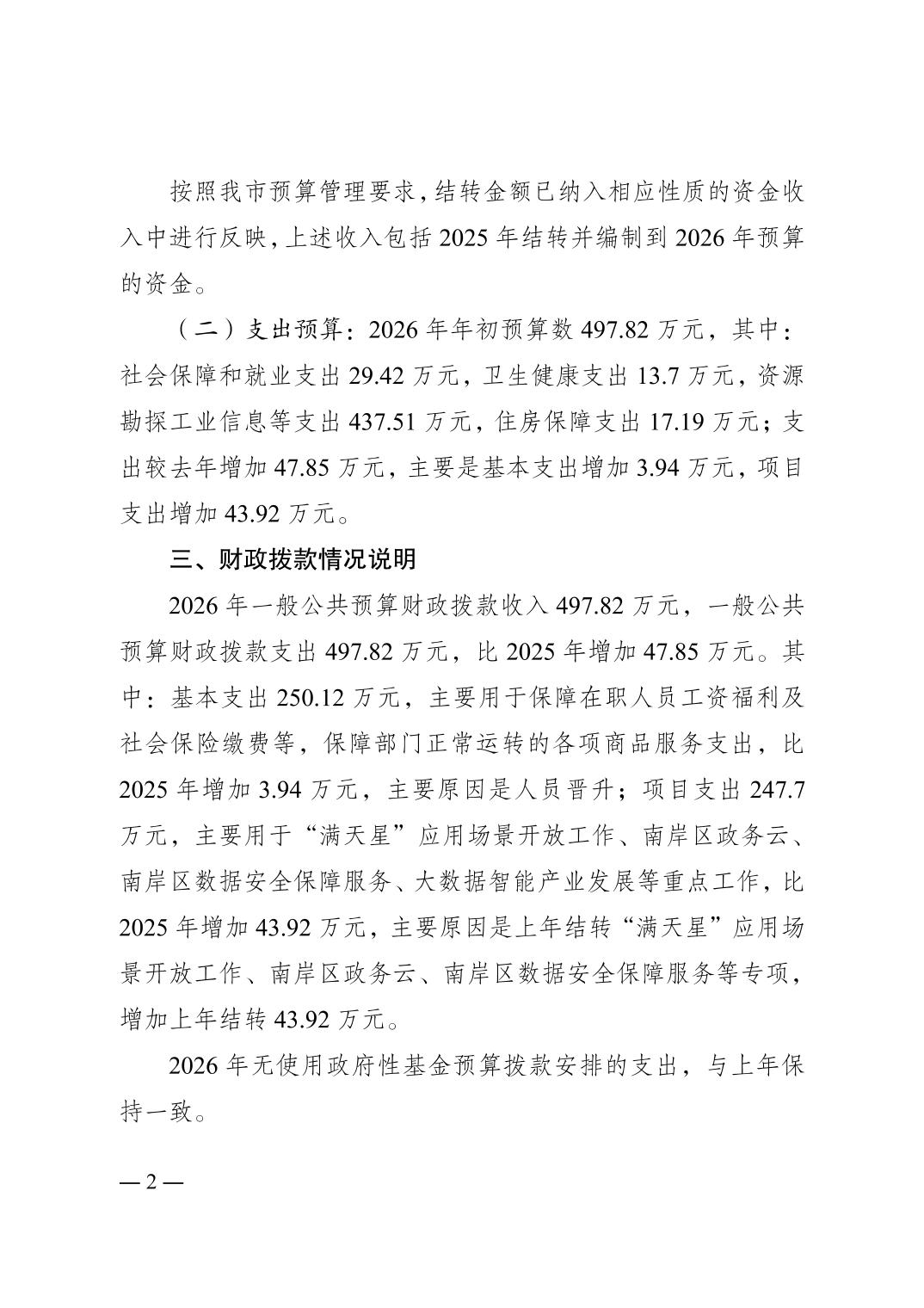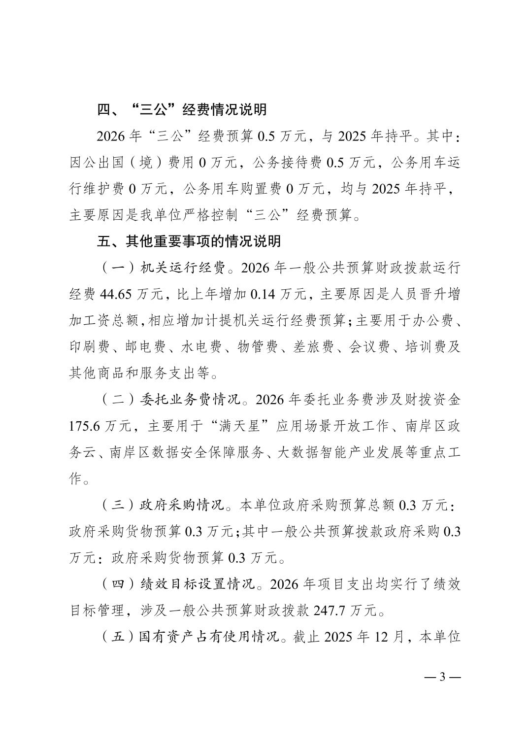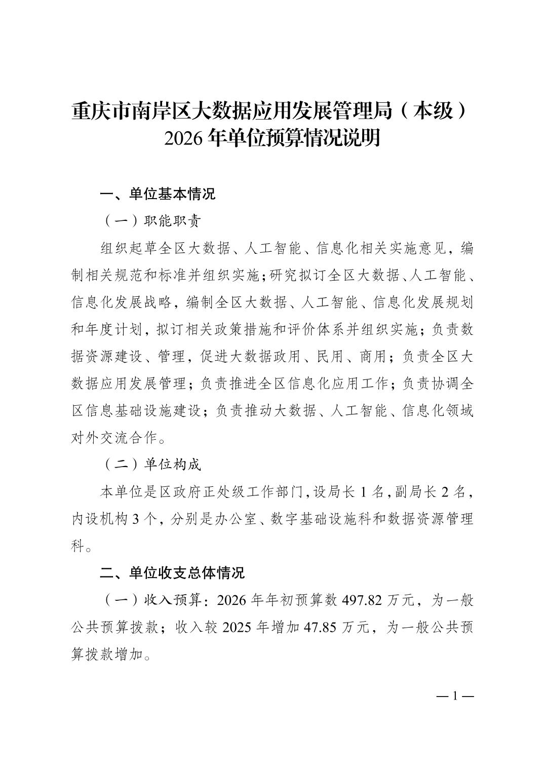 重庆市南岸区大数据应用发展管理局(本级)2026年单位预算情况说明