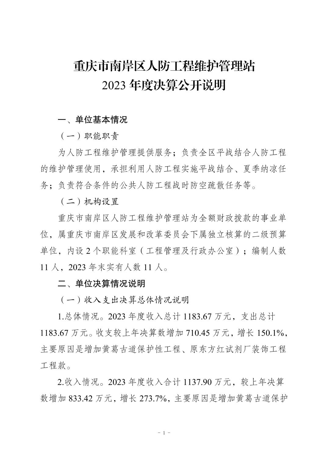 重庆市南岸区人防工程维护管理站2023年度决算公开说明