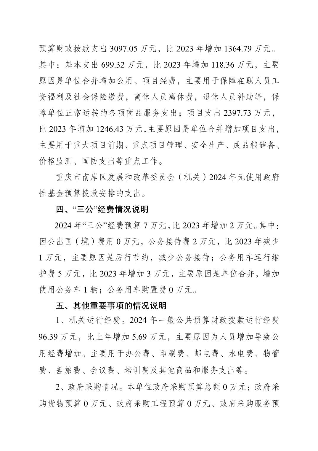 重庆市南岸区发展和改革委员会(机关)2024 年单位预算情况说明