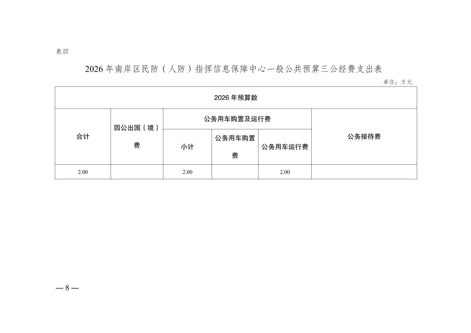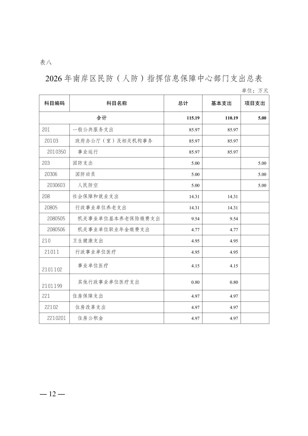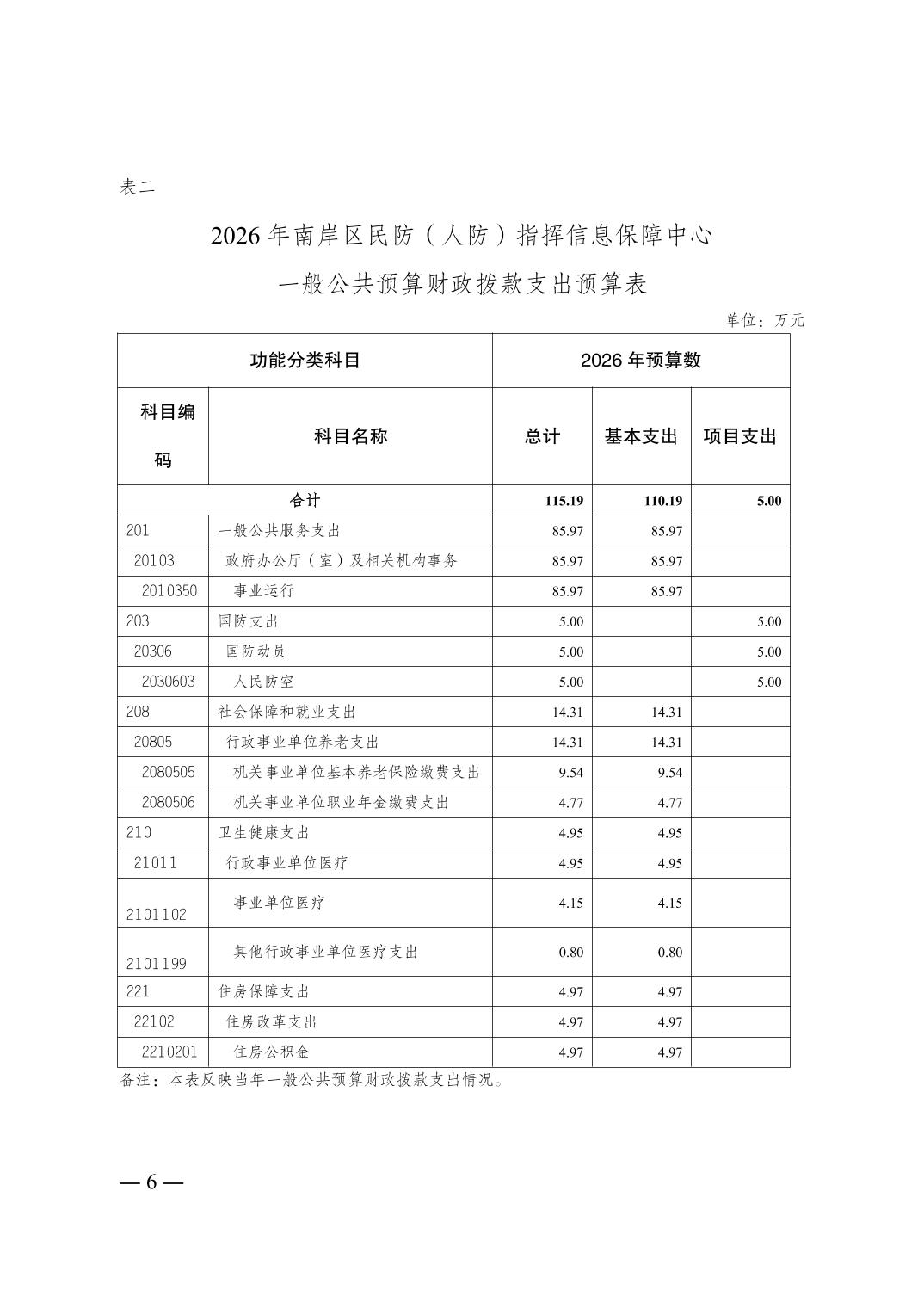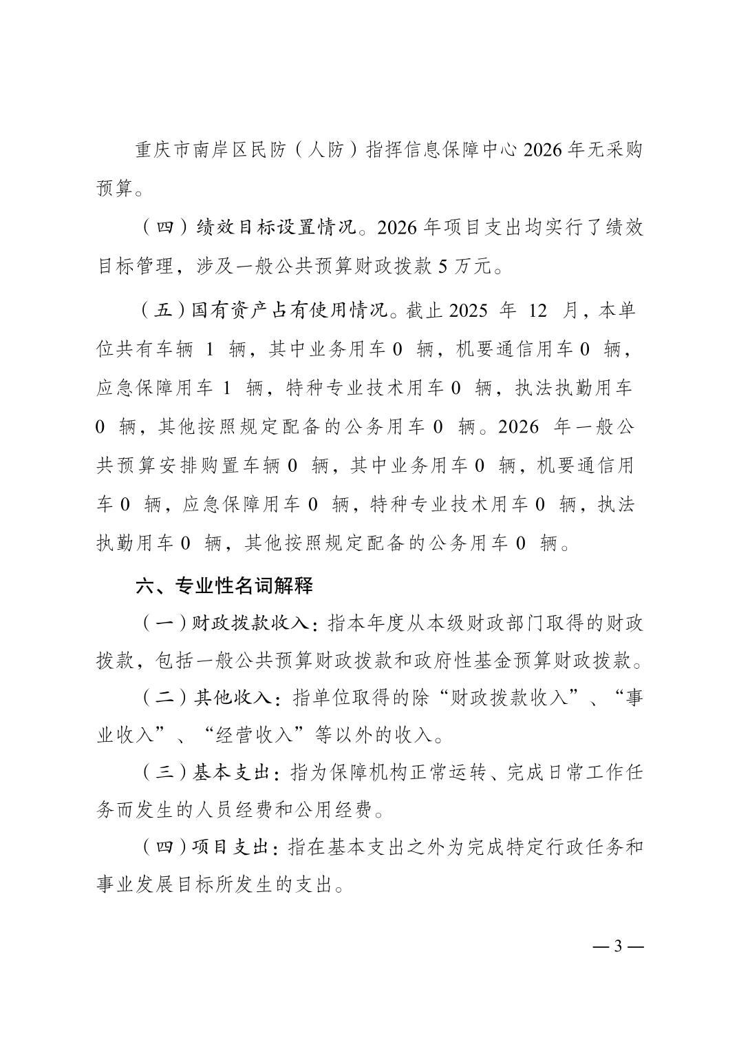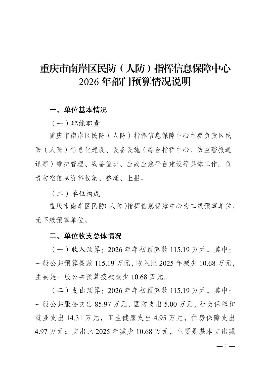 重庆市南岸区民防(人防)指挥信息保障中心 2026 年部门预算情