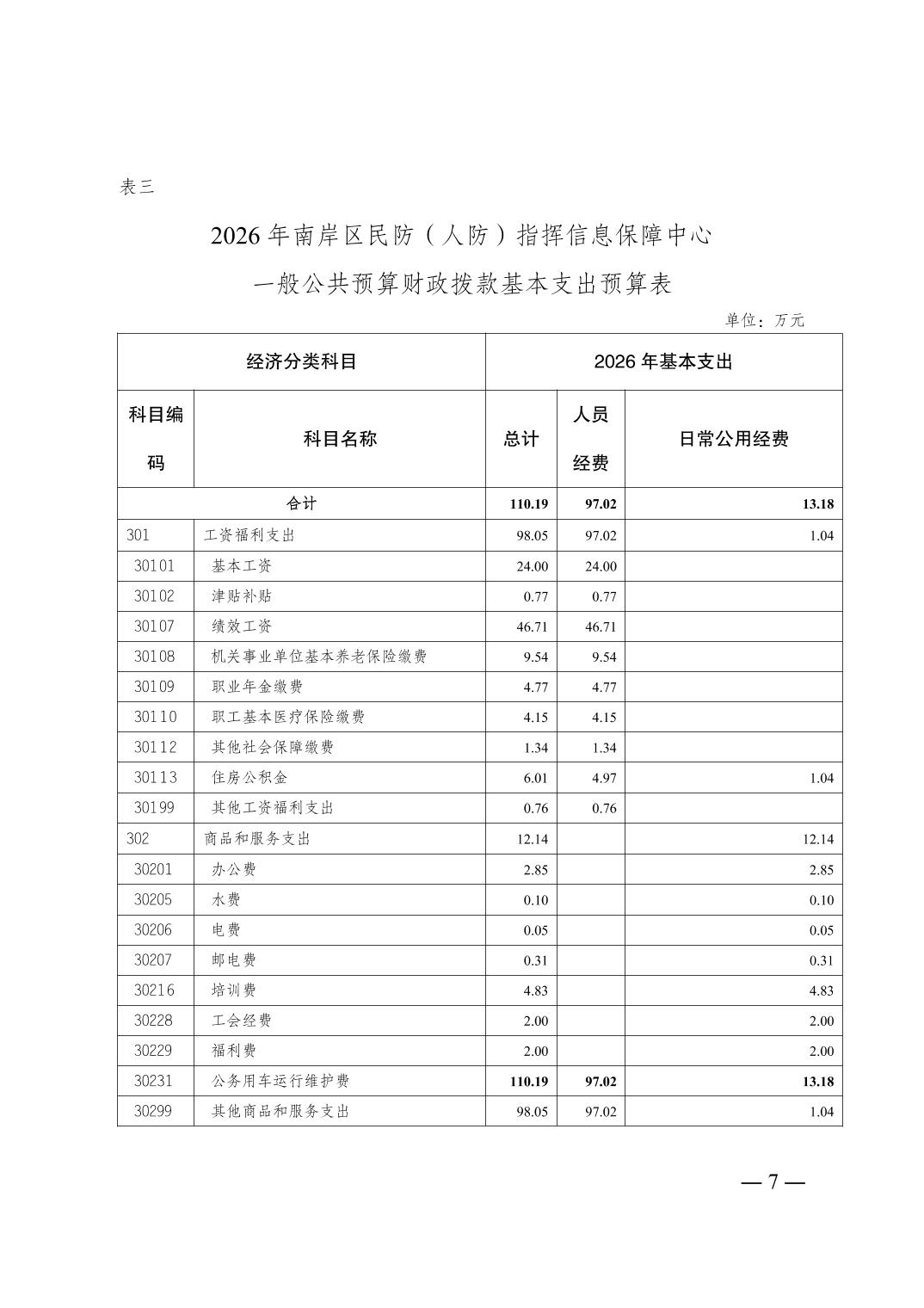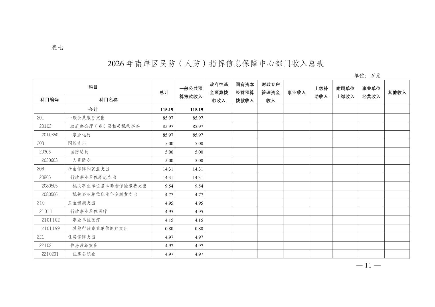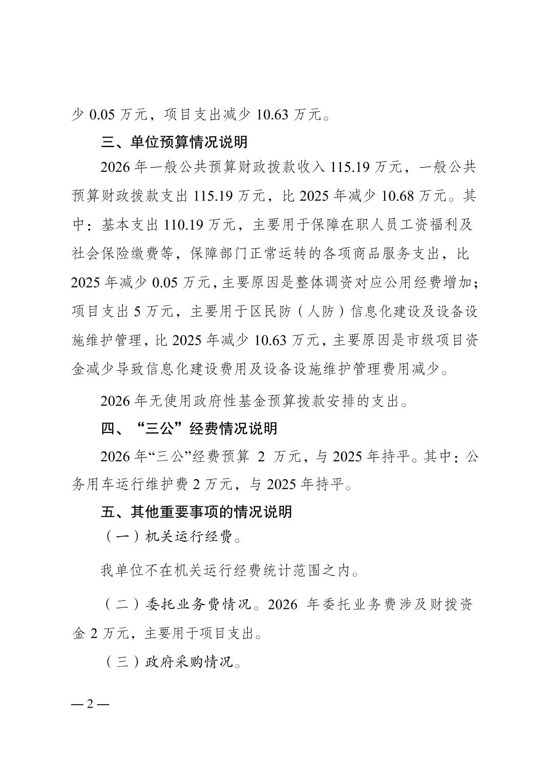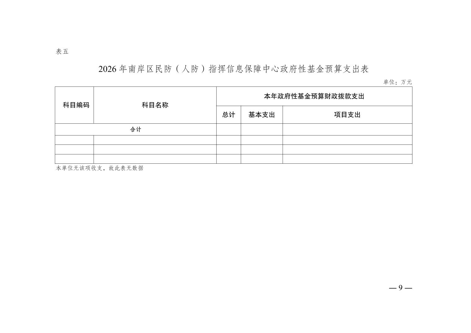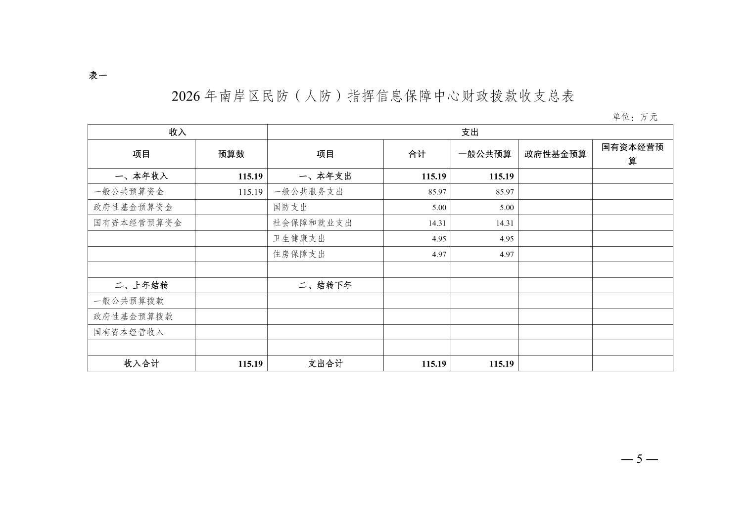 重庆市南岸区民防(人防)指挥信息保障中心 2026 年部门预算情