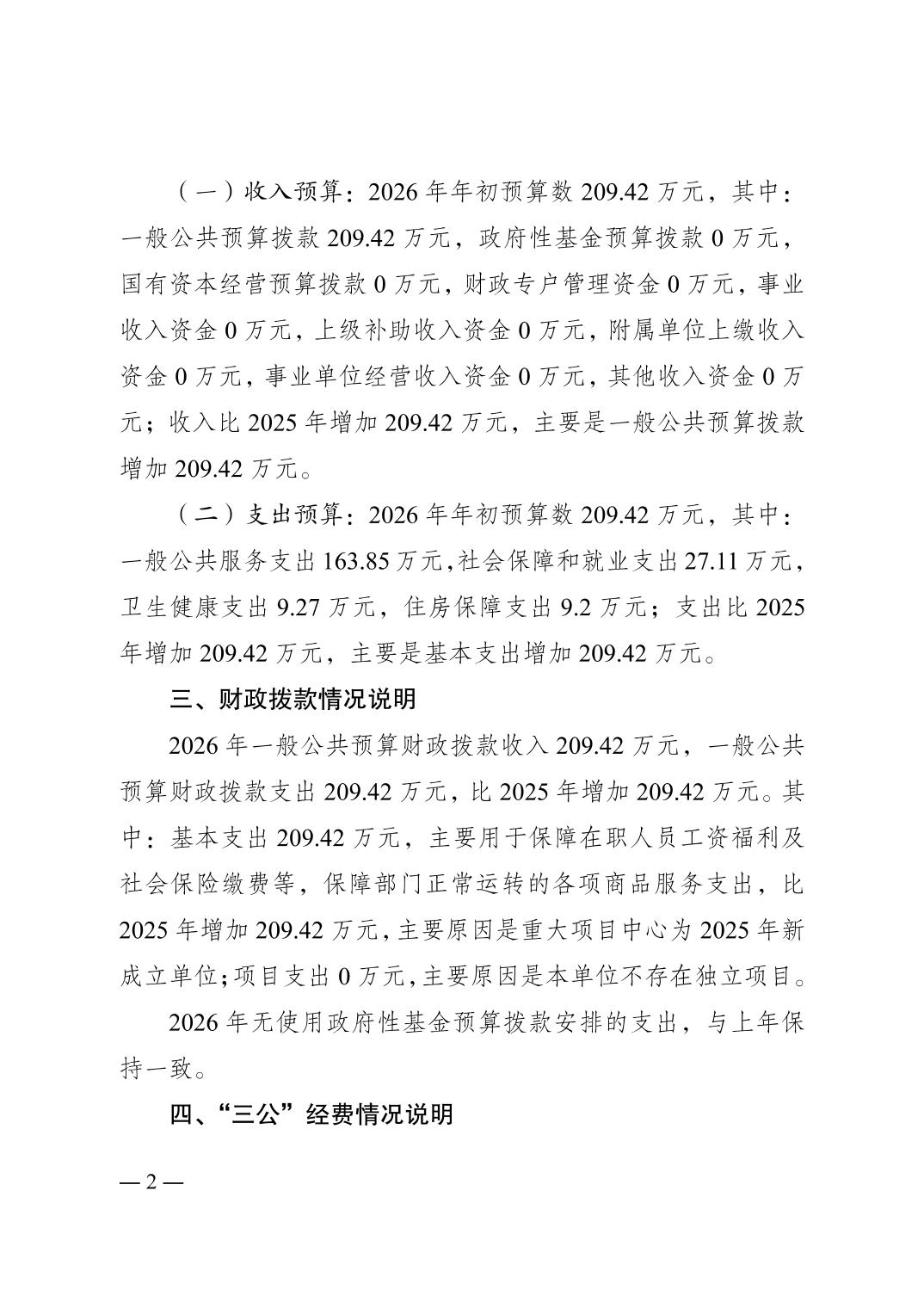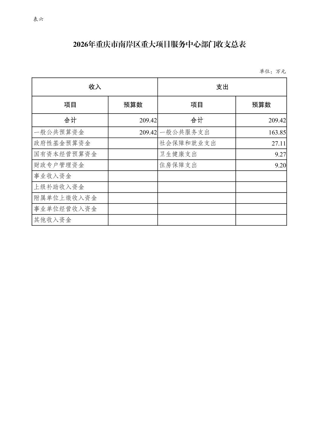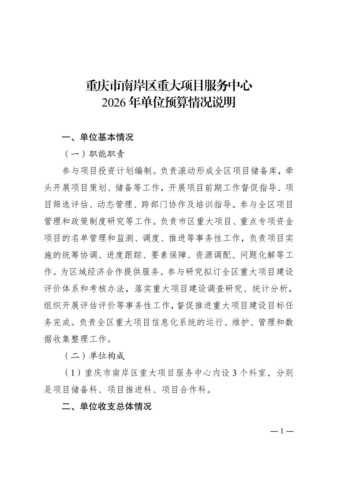 重庆市南岸区重大项目服务中心 2026 年单位预算情况说明