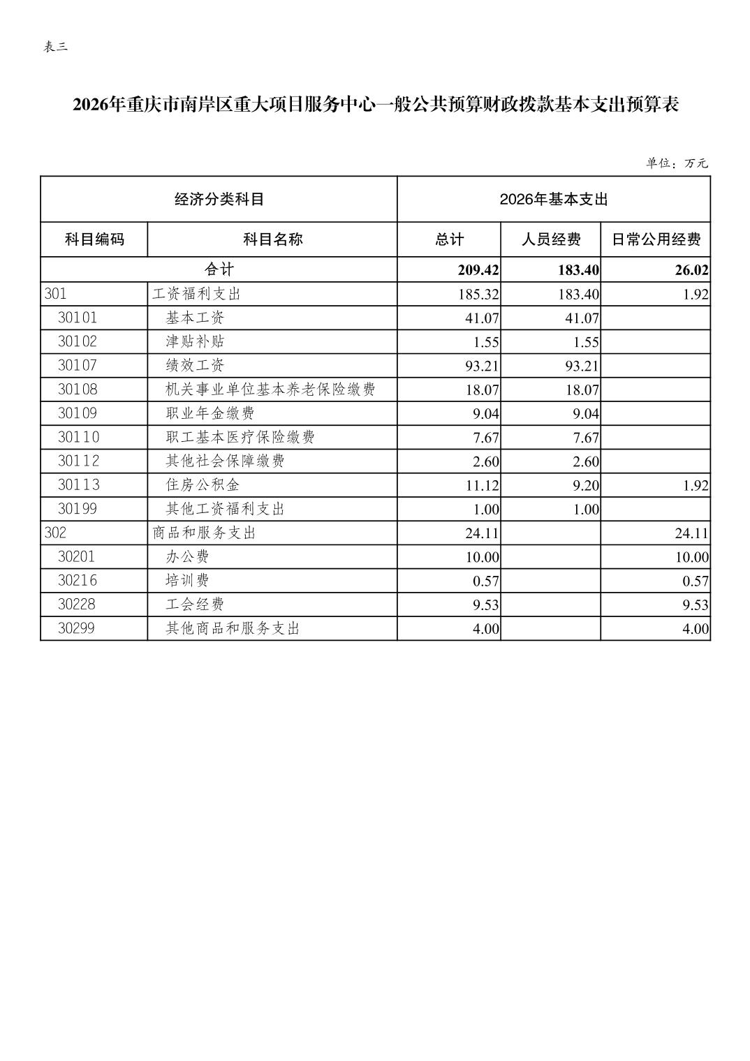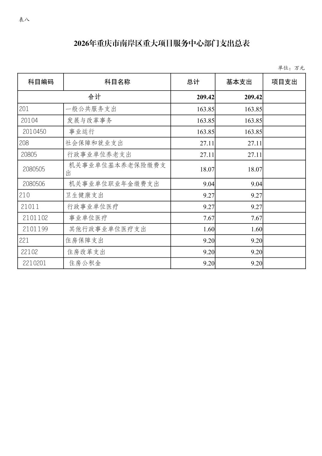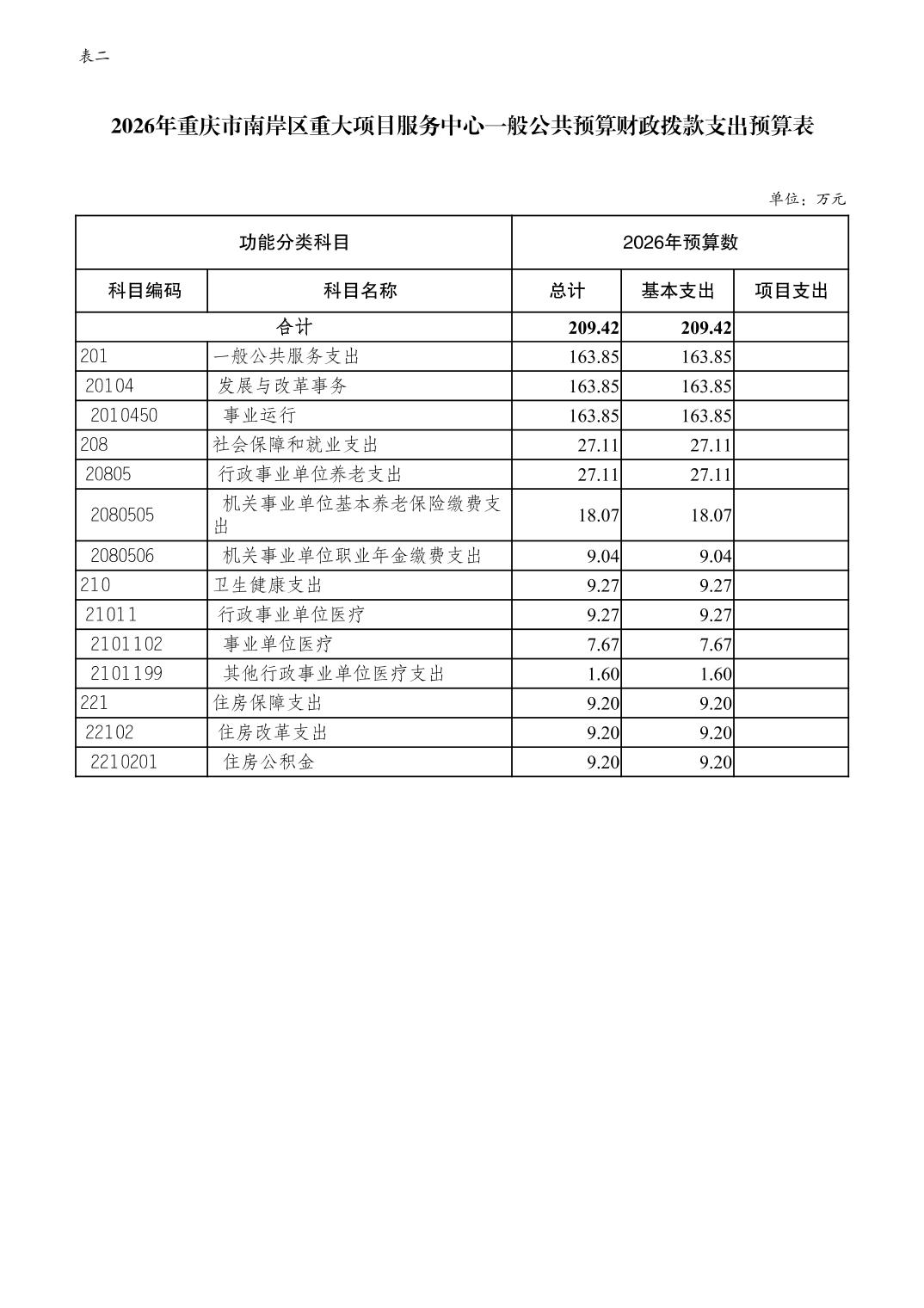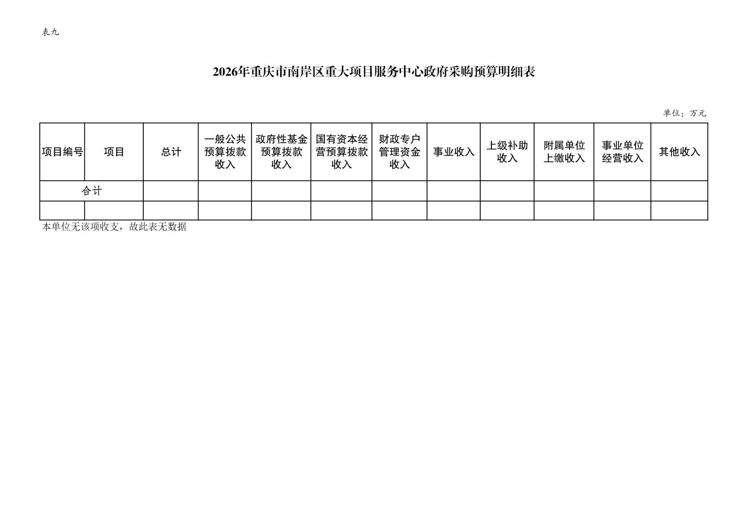 重庆市南岸区重大项目服务中心 2026 年单位预算情况说明